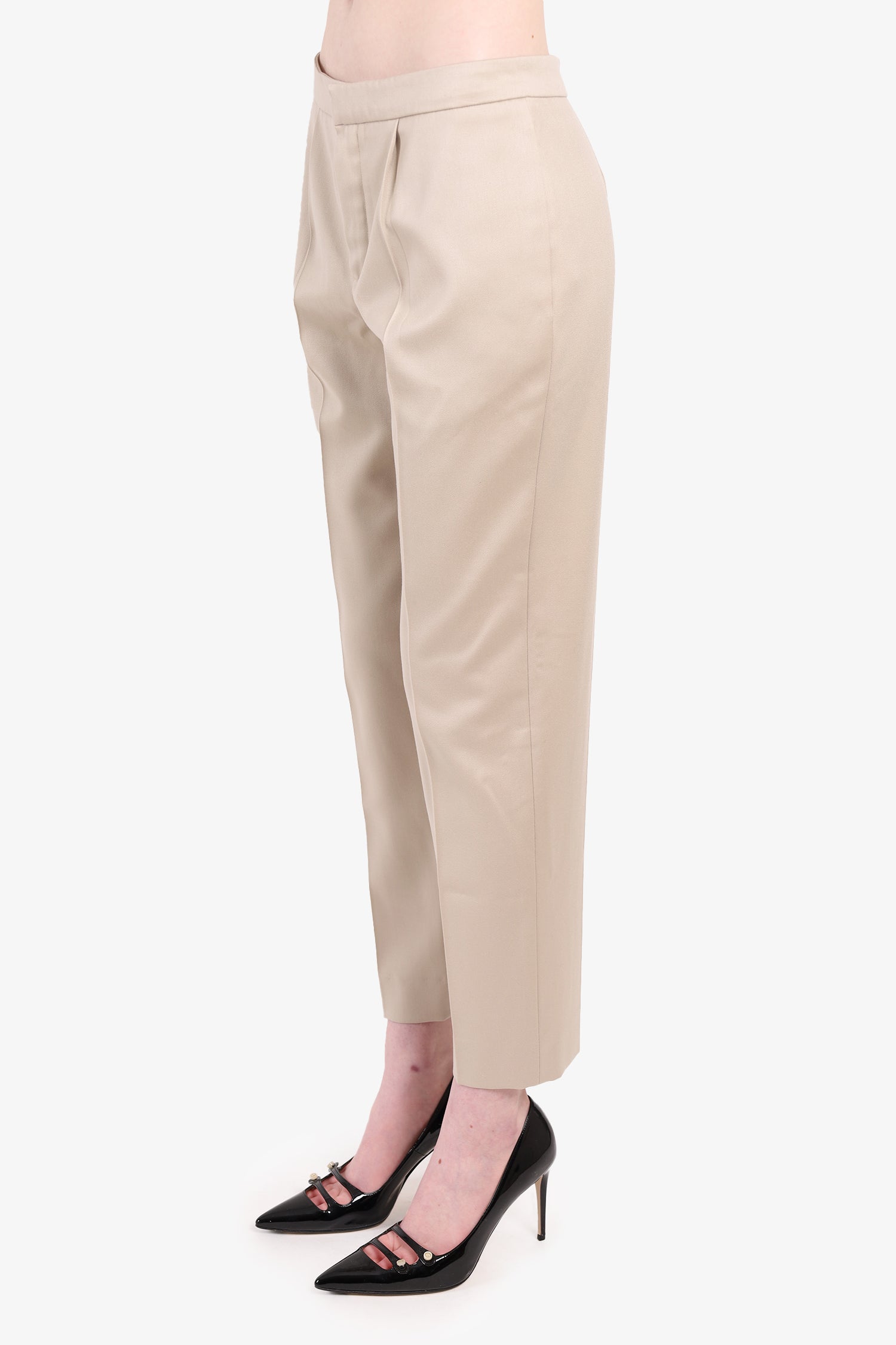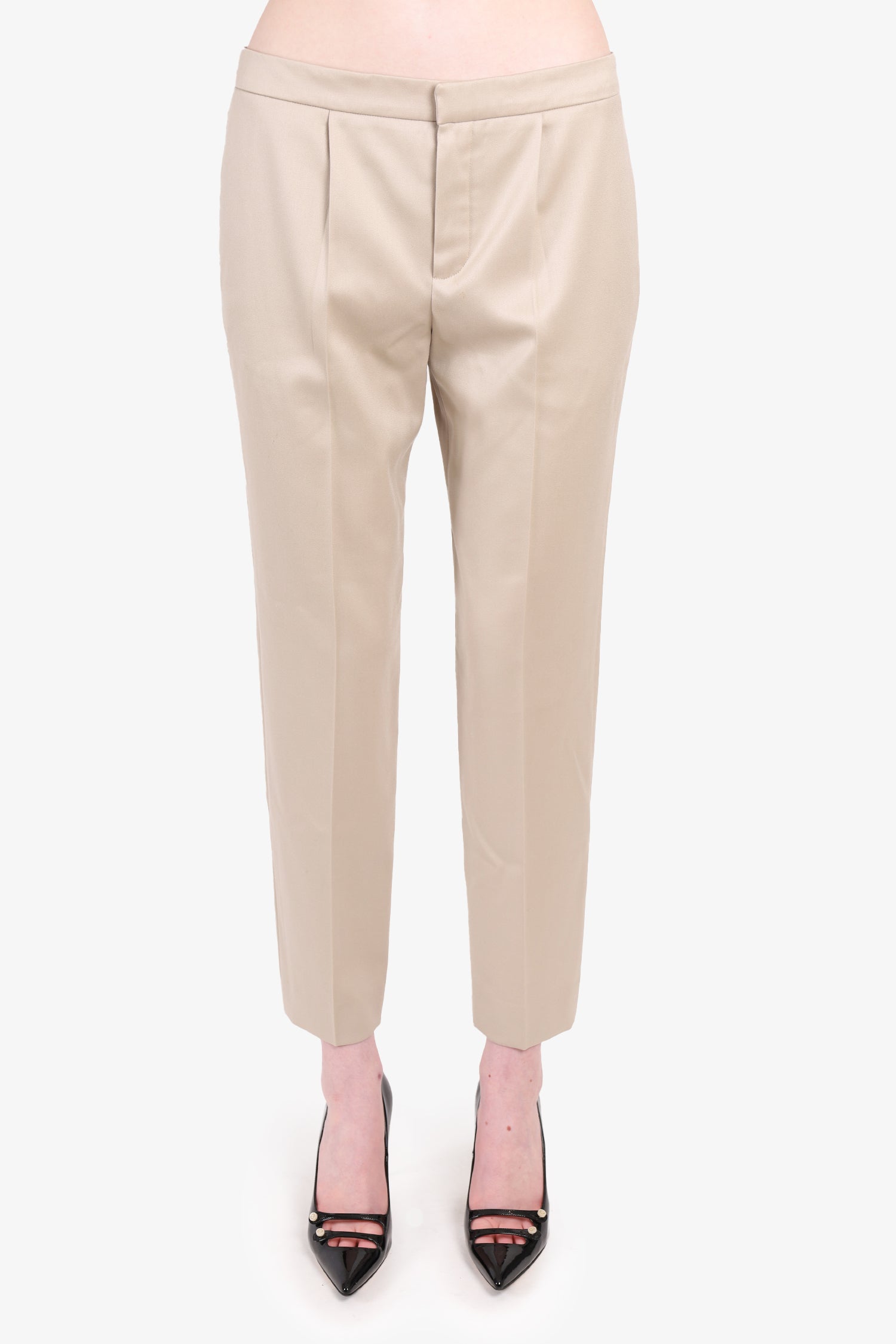 Refresh availabilityChloe Beige Wool Long Pants. Front zipper closure. Single pleated. Dual side open pockets. Tonal stitching.