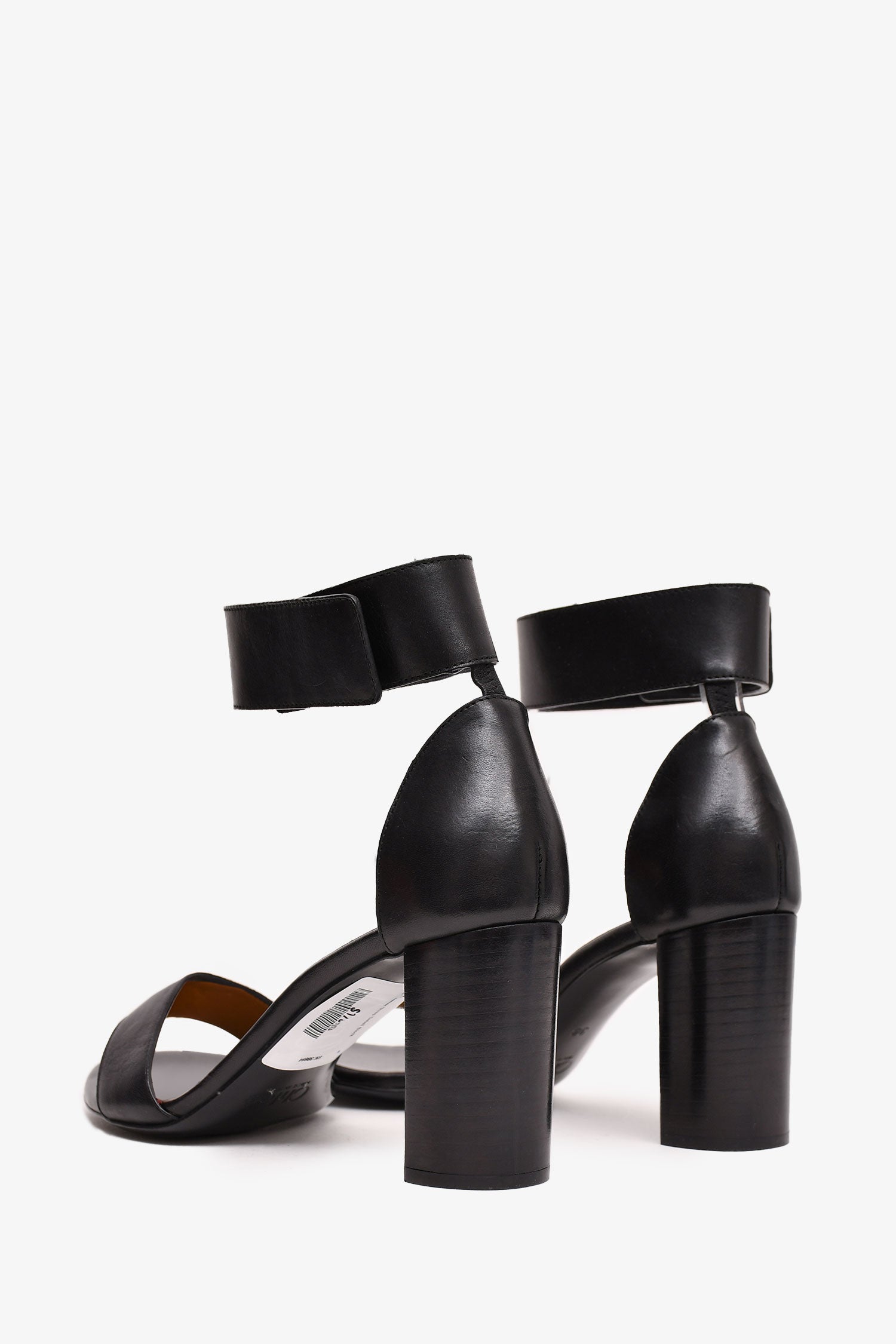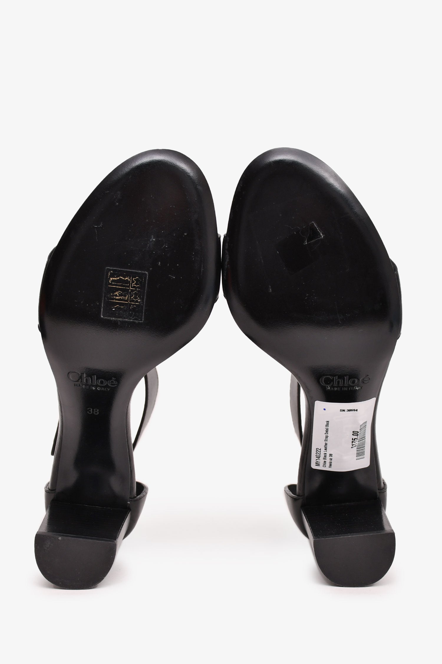 Chloe Black Leather Strap Detail Block Heels Size 38
