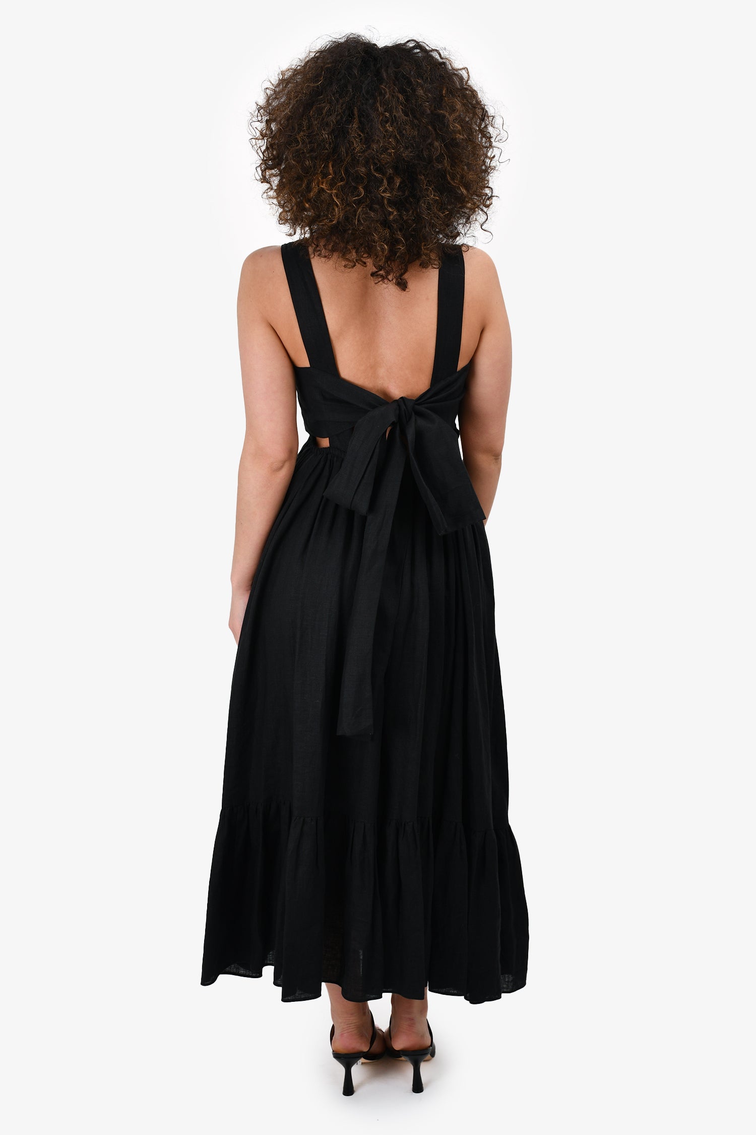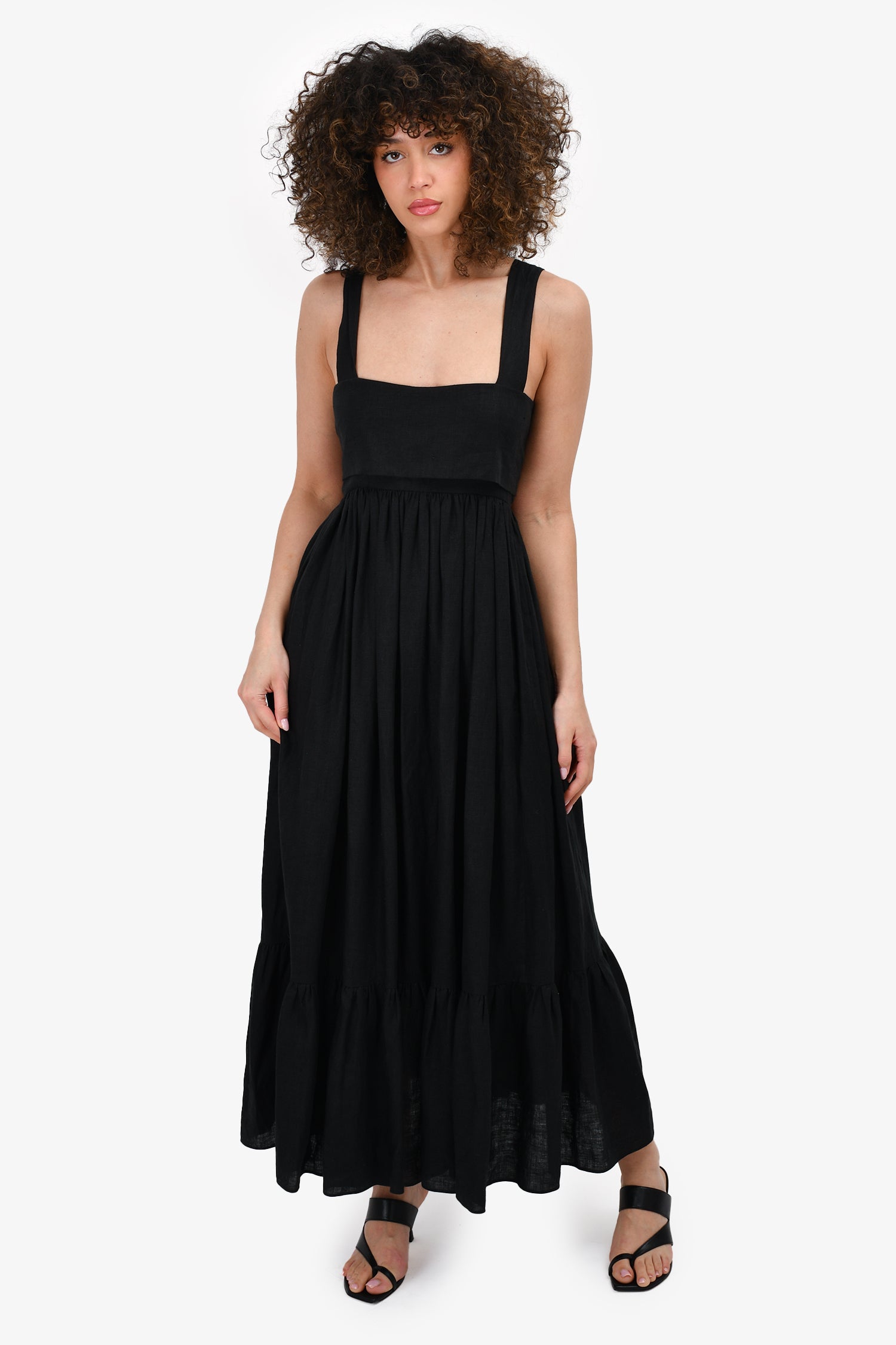 Chloe Black Linen Sleeveless Maxi Dress Size 34