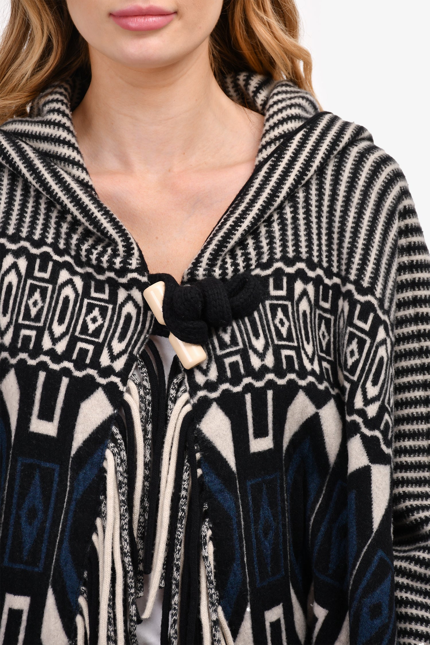 Chloe Black/White Wool/Cashmere Hooded Poncho Size XS