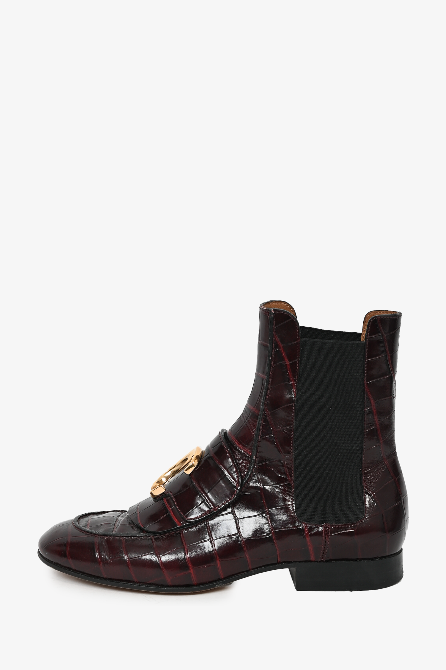 Refresh availabilityChloe Brown Croc Embossed 'C' Chelsea Boots. Slip on. Gold-tone hardware. Round toe.