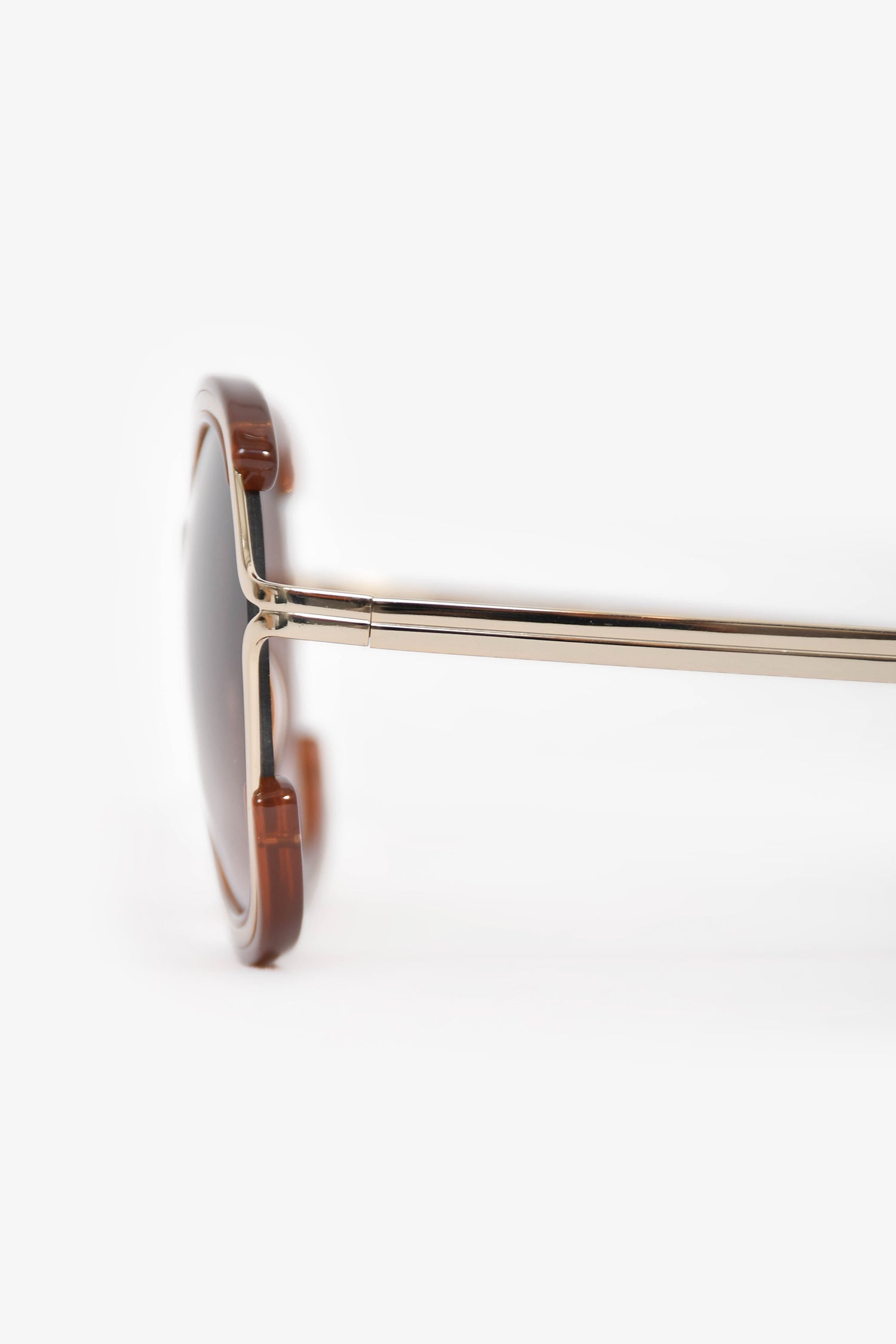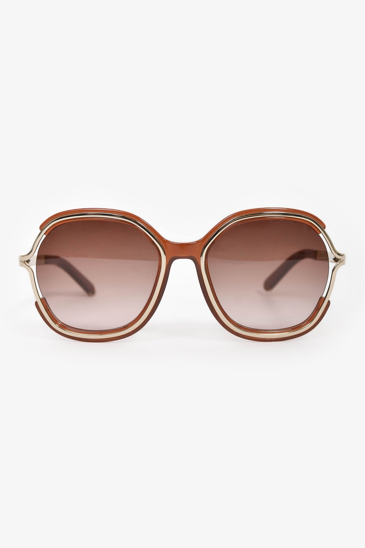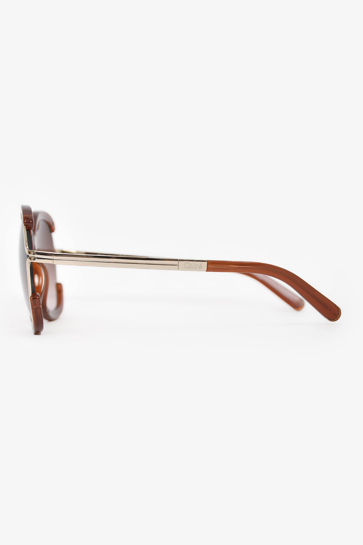 Refresh availabilityChloe Brown/Gold Tone Sunglasses. Built-in nose pads. Gradient lens.