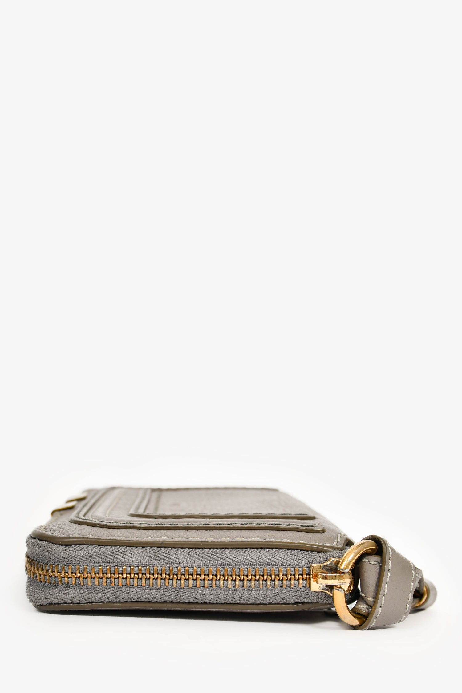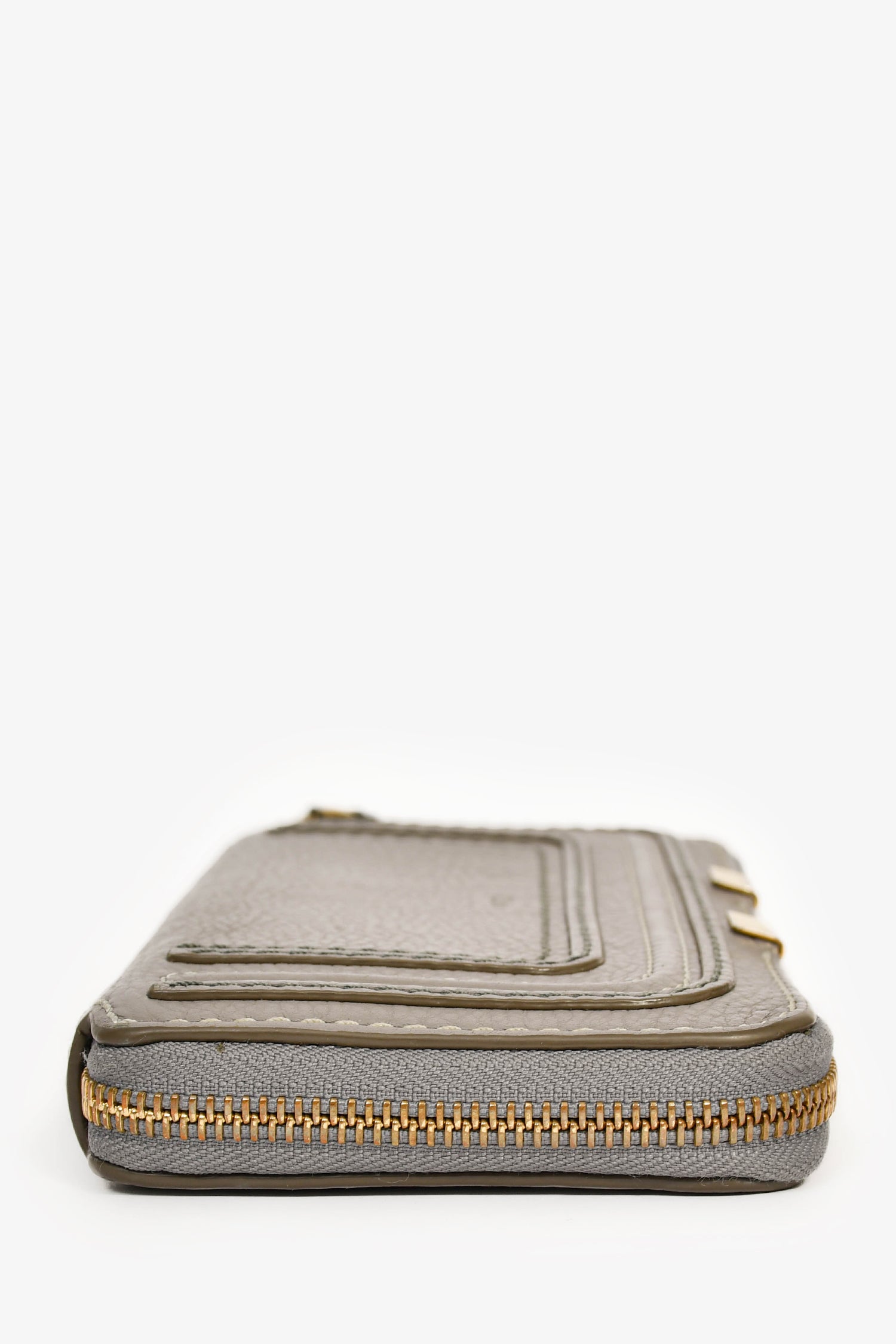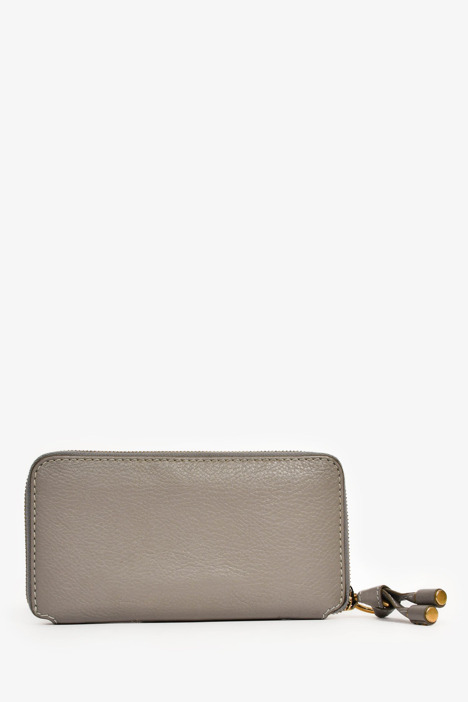 Refresh availabilityChloe Grey Long Zip Wallet. Top zip closure. Beige interior. Top zip closure. 12 interior card slots. 2 billfold compartments. Gold-tone hardware. Tonal stitching.