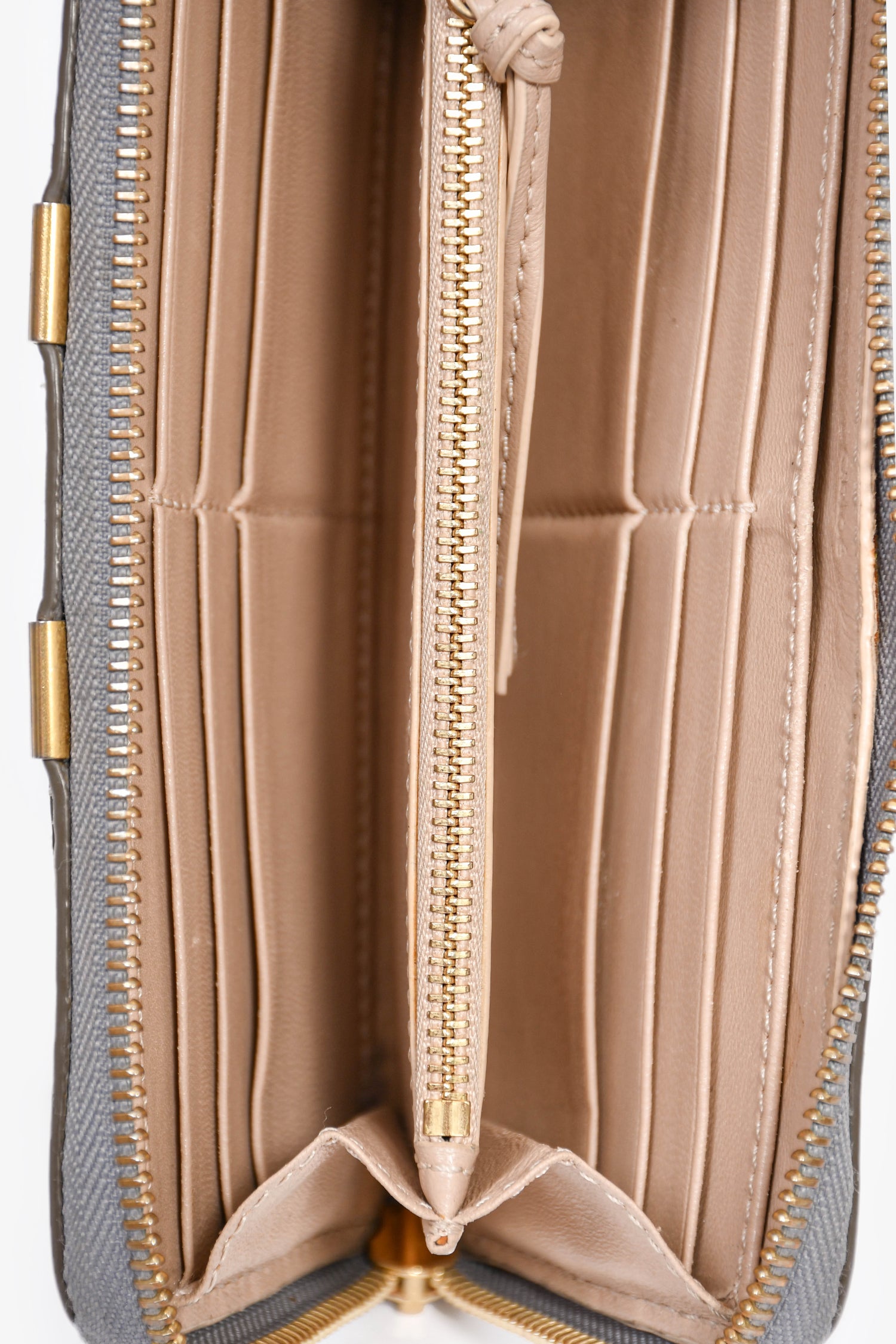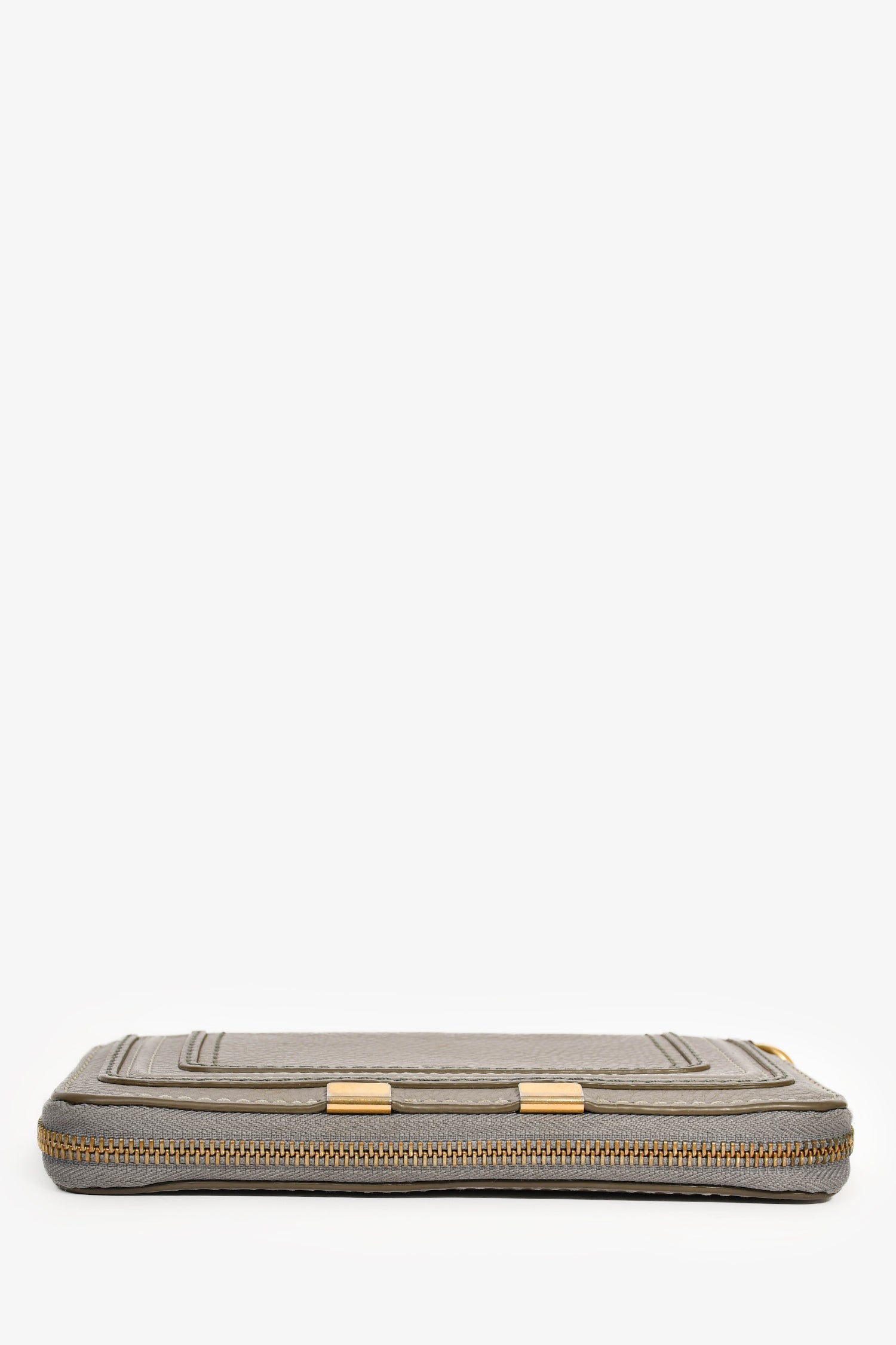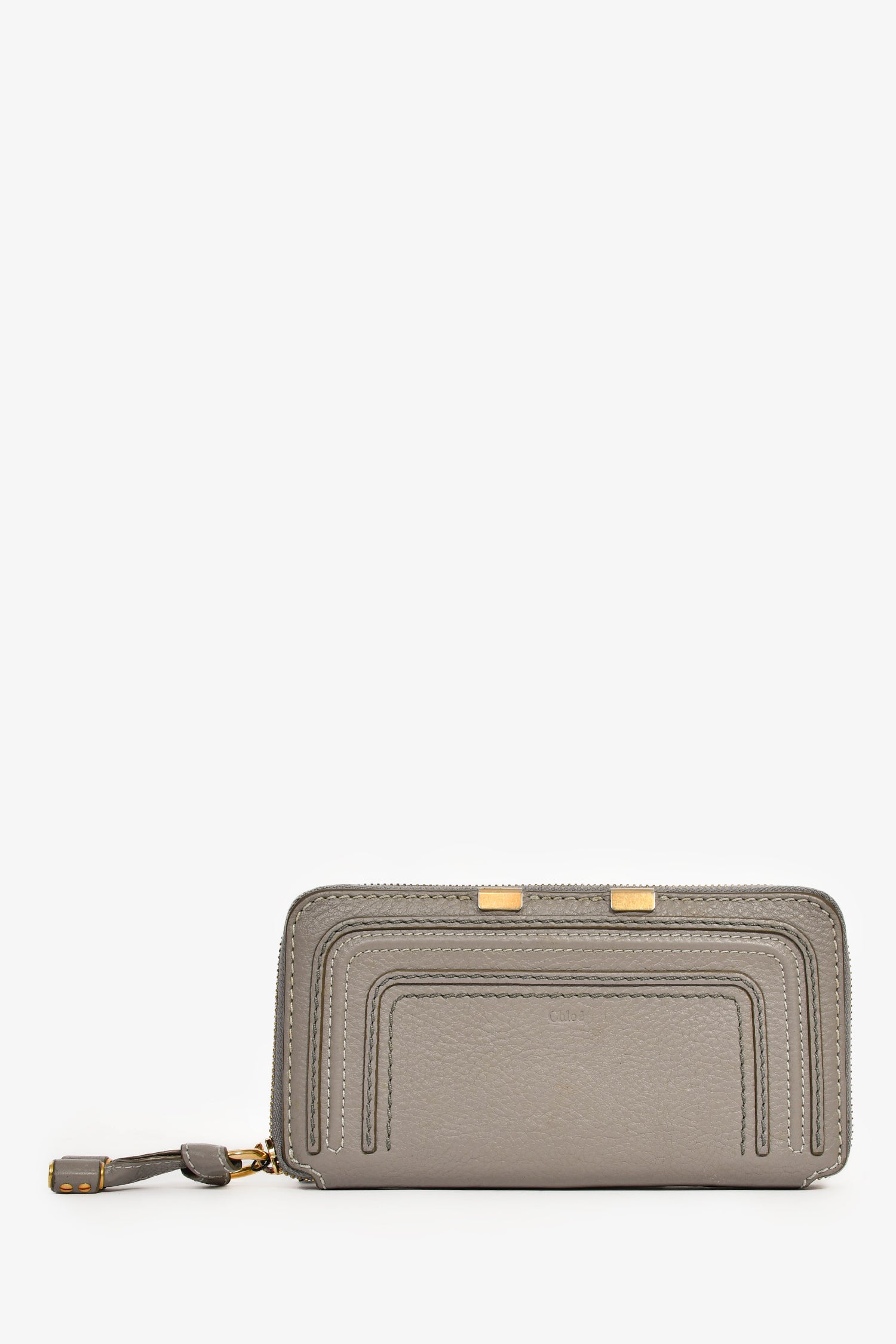Refresh availabilityChloe Grey Long Zip Wallet. Top zip closure. Beige interior. Top zip closure. 12 interior card slots. 2 billfold compartments. Gold-tone hardware. Tonal stitching.