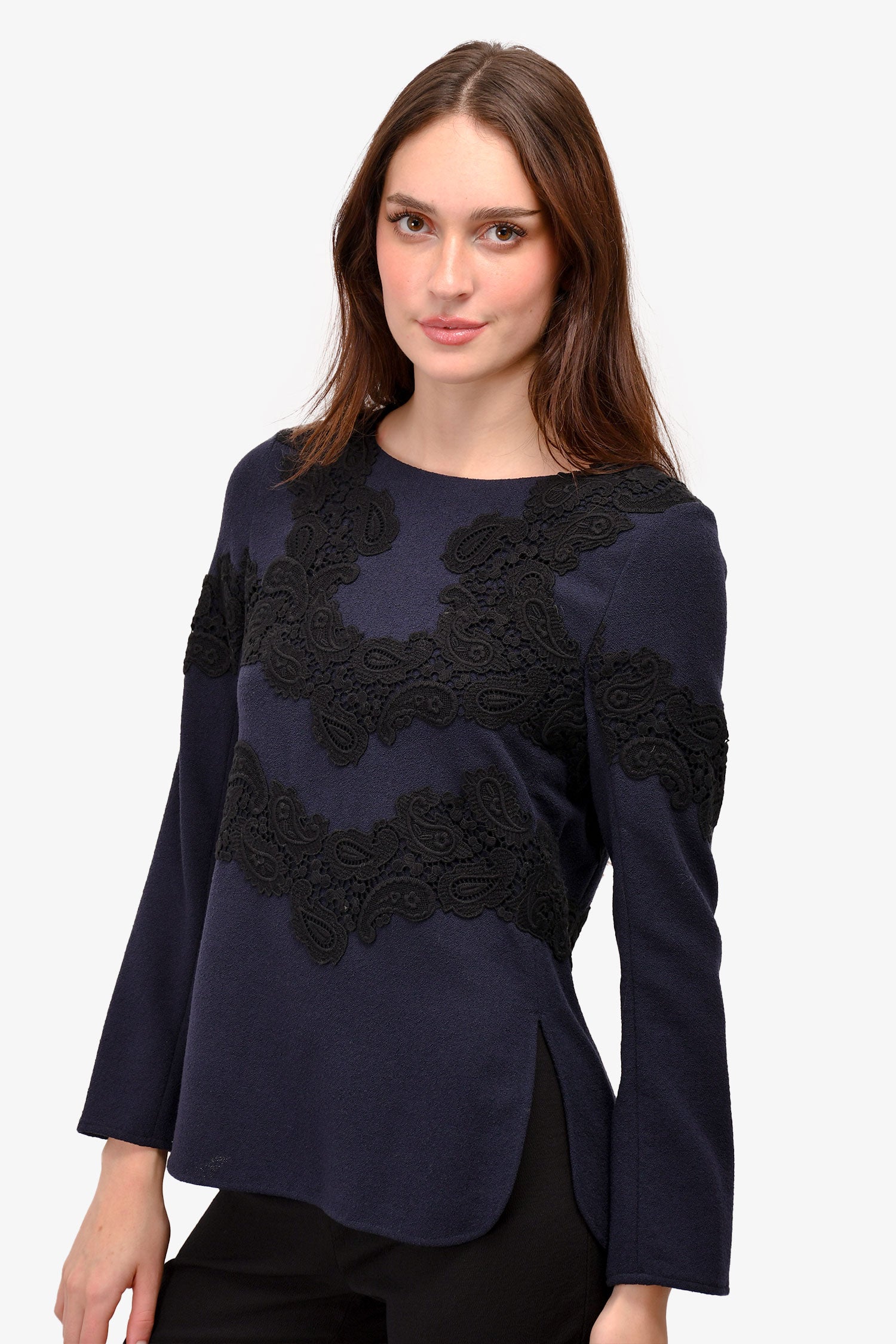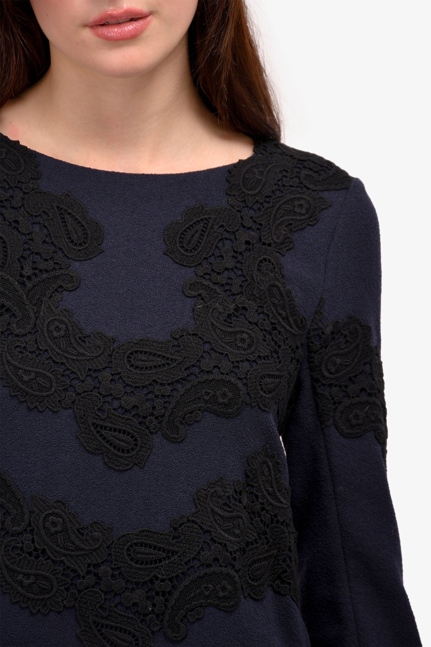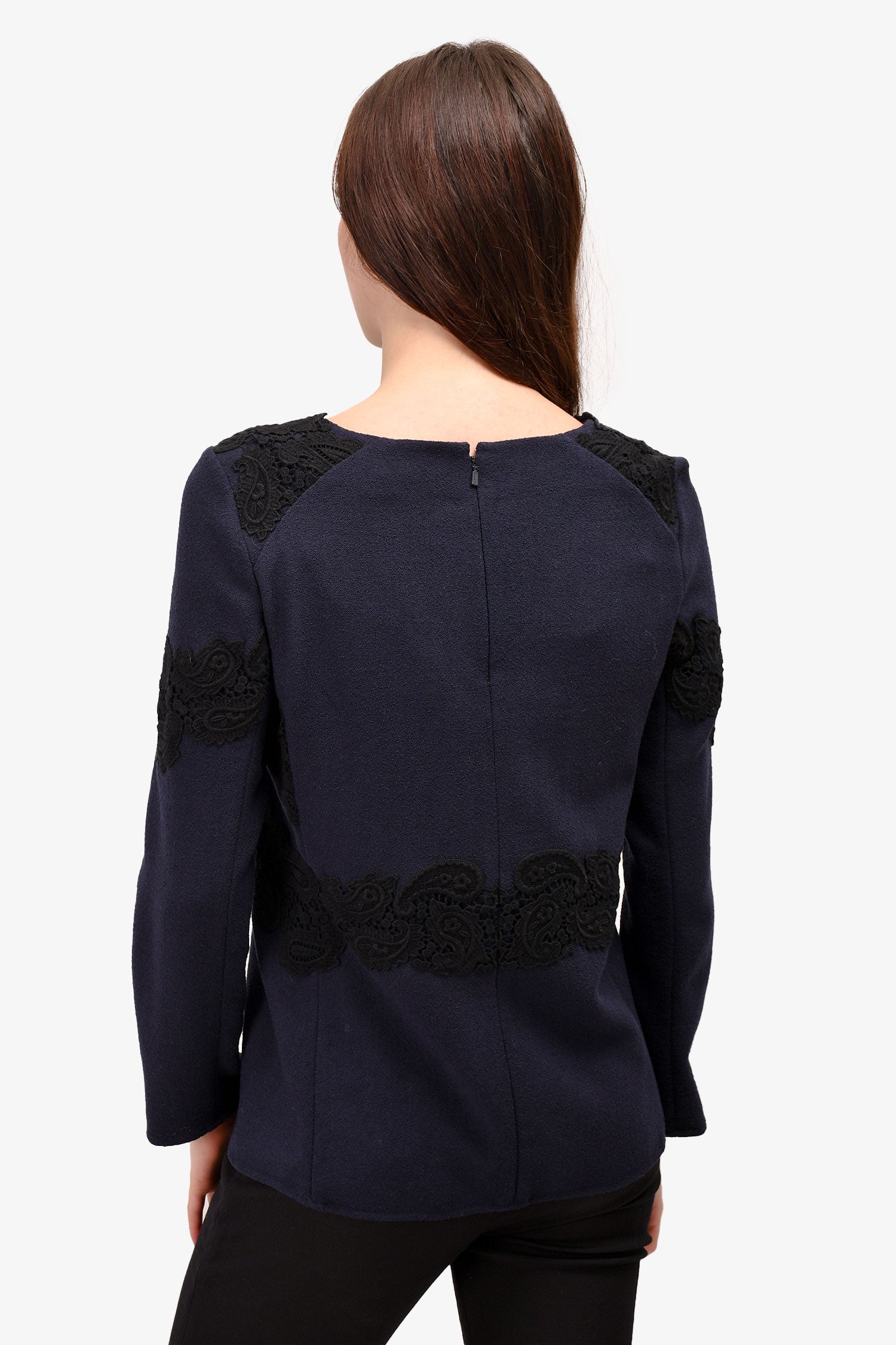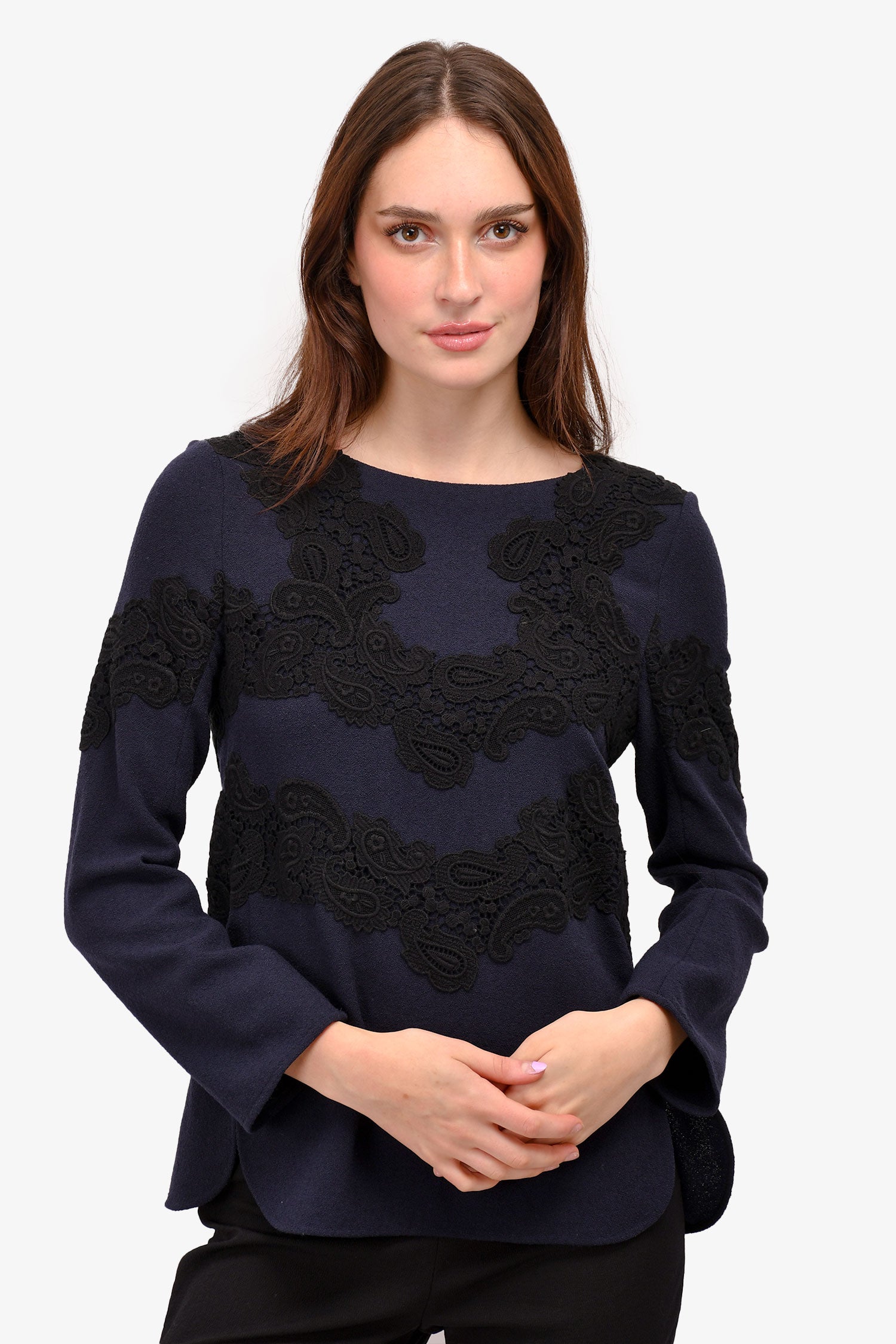 Chloe Navy/Black Lace Embellished Top Size 38