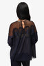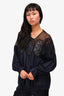 Chloe Navy Blue Cotton Eyelet Lace Blouse with Beige Slip Size 38