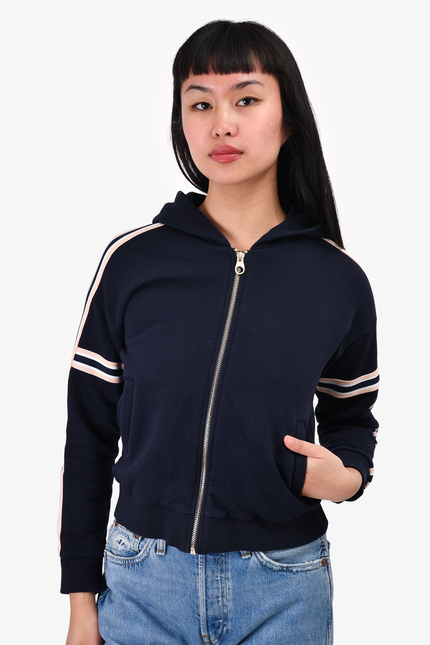Chloe Navy Trimmed Detailed Zip-Up Hooded Jacket Est. Size XS