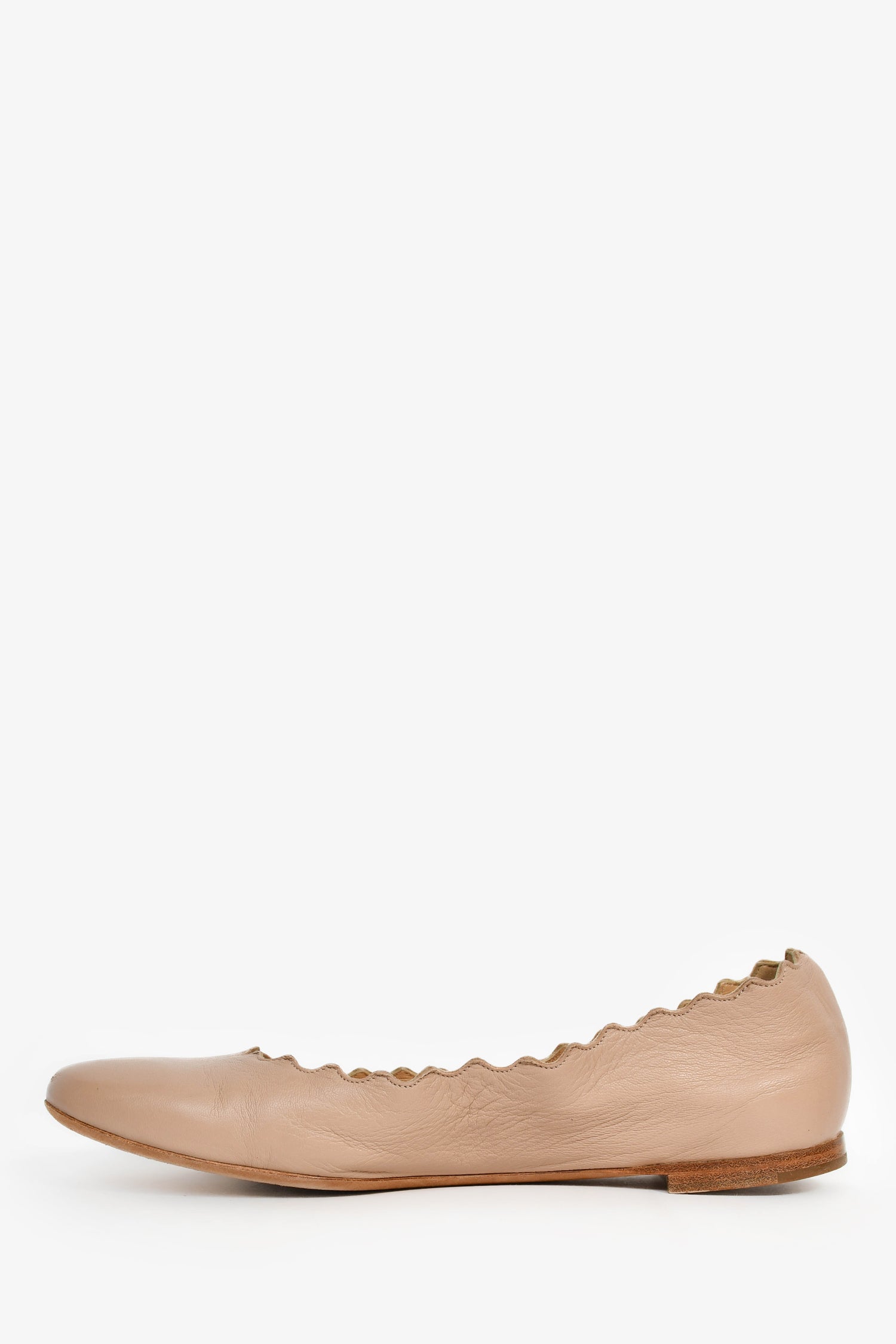 Refresh availabilityChloe Nude Leather Scalloped Flats. Round toe. Leather insoles. Scalloped edges. Tonal stitching.