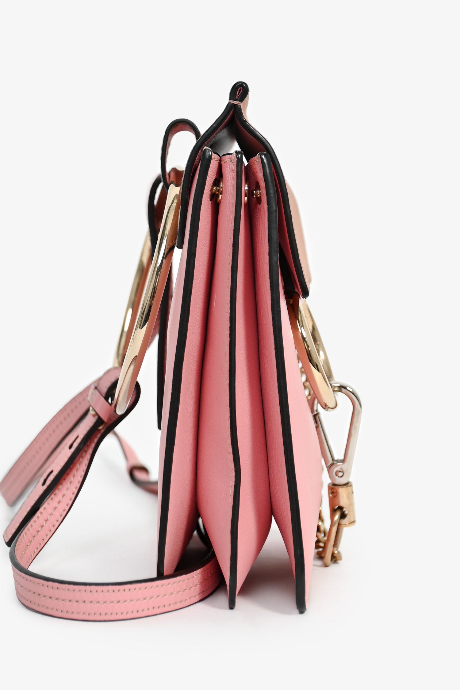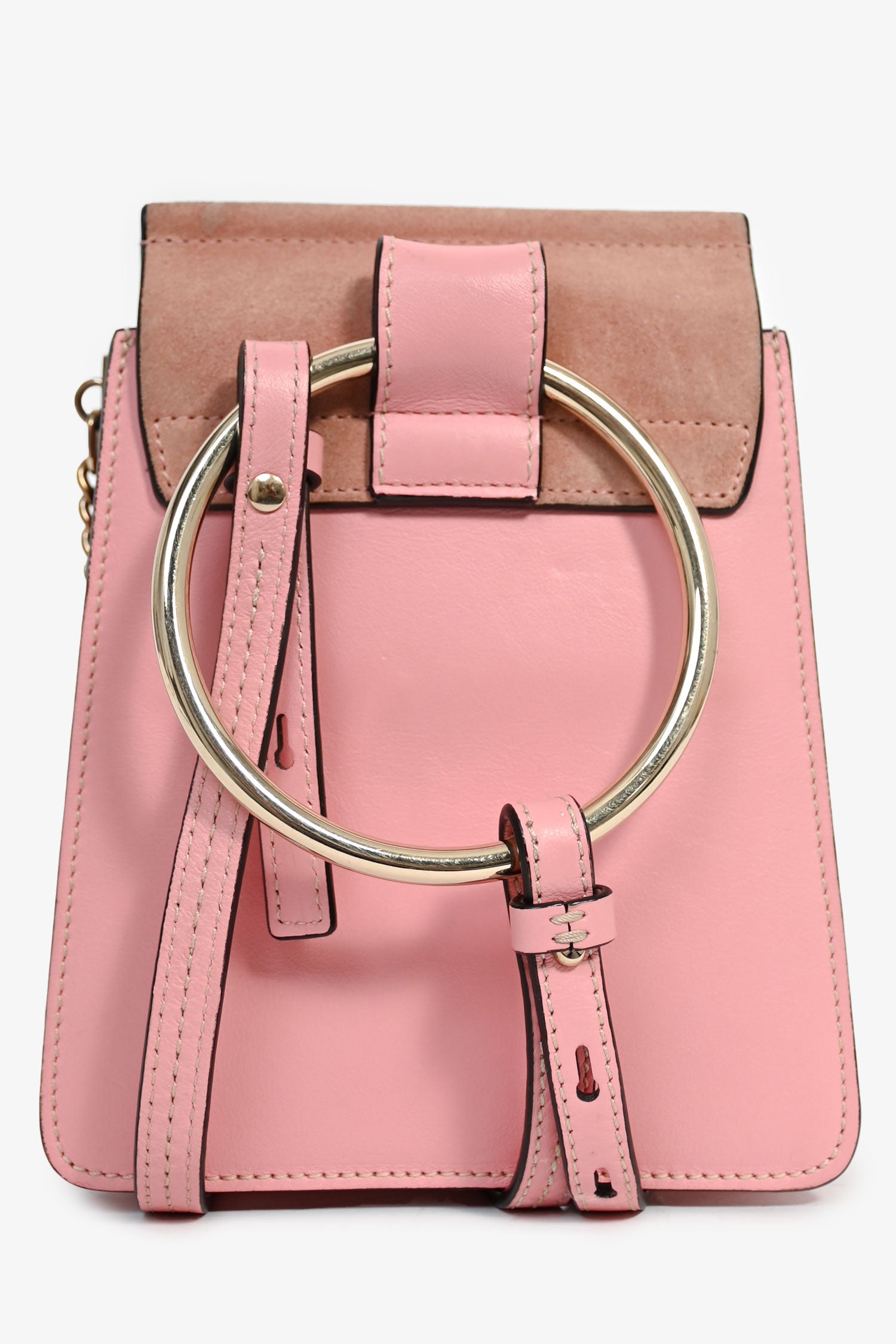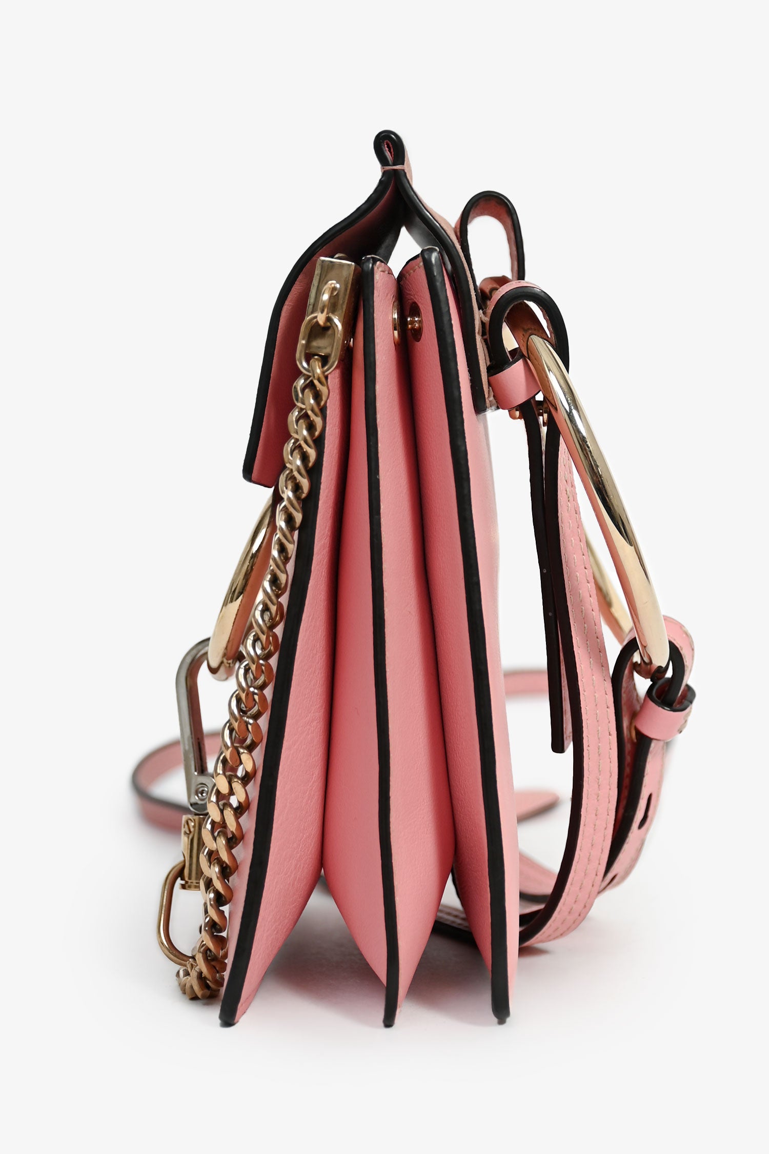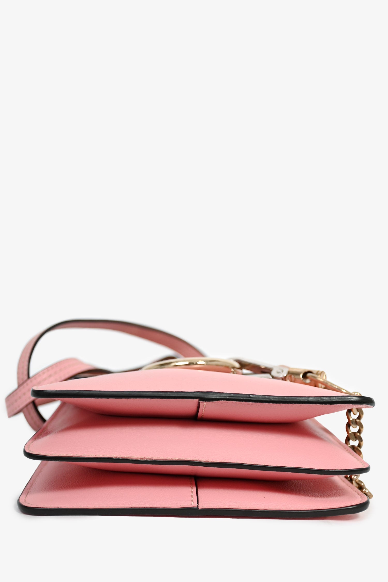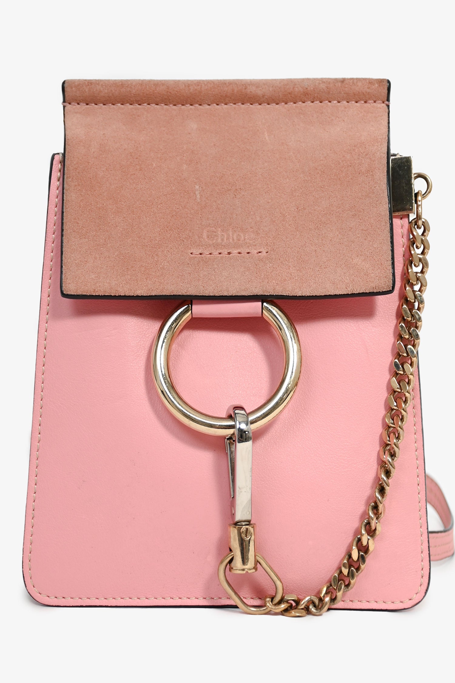 Refresh availabilityChloe Pink Leather/Suede Mini Faye Bag. Flap front with ring and chain detail. Magnetic snap closure. Adjustable leather shoulder strap. Suede-lined interior with slip pocket. Tonal stitching.