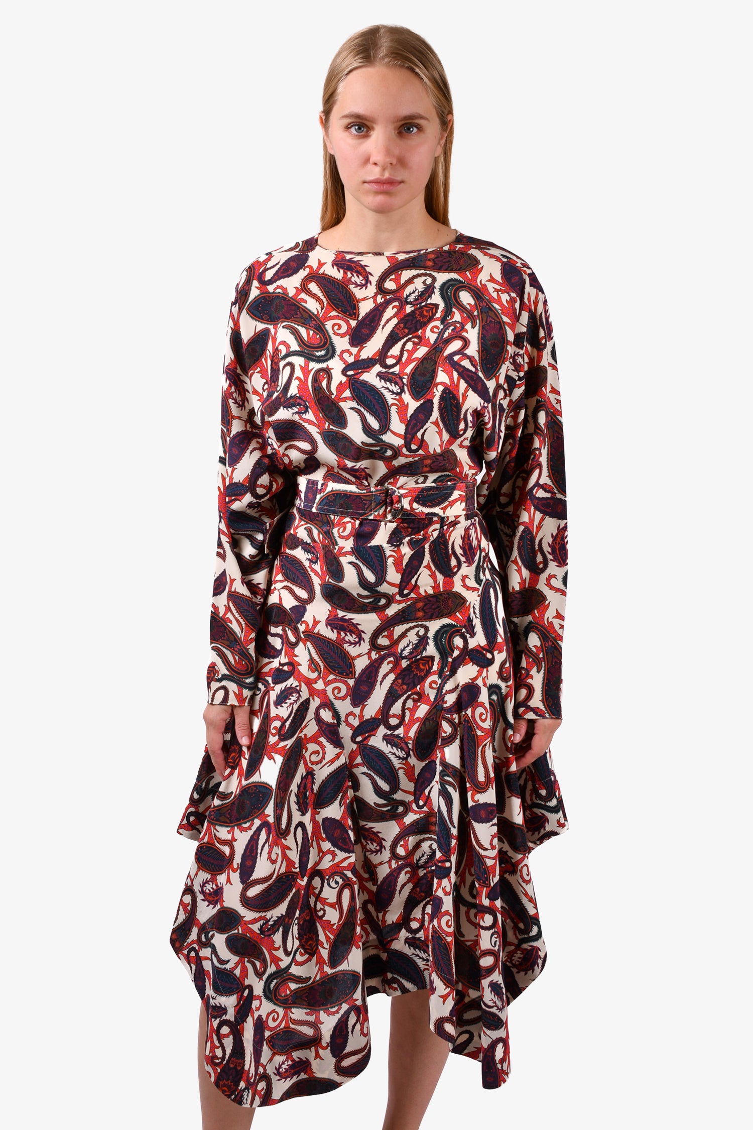 Refresh availabilityChloe Red Silk Patterned Dress with Belt. Round neck. Rear zip and hook closure. Tonal stitching.