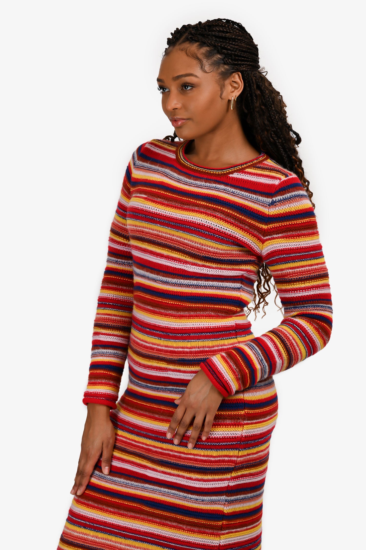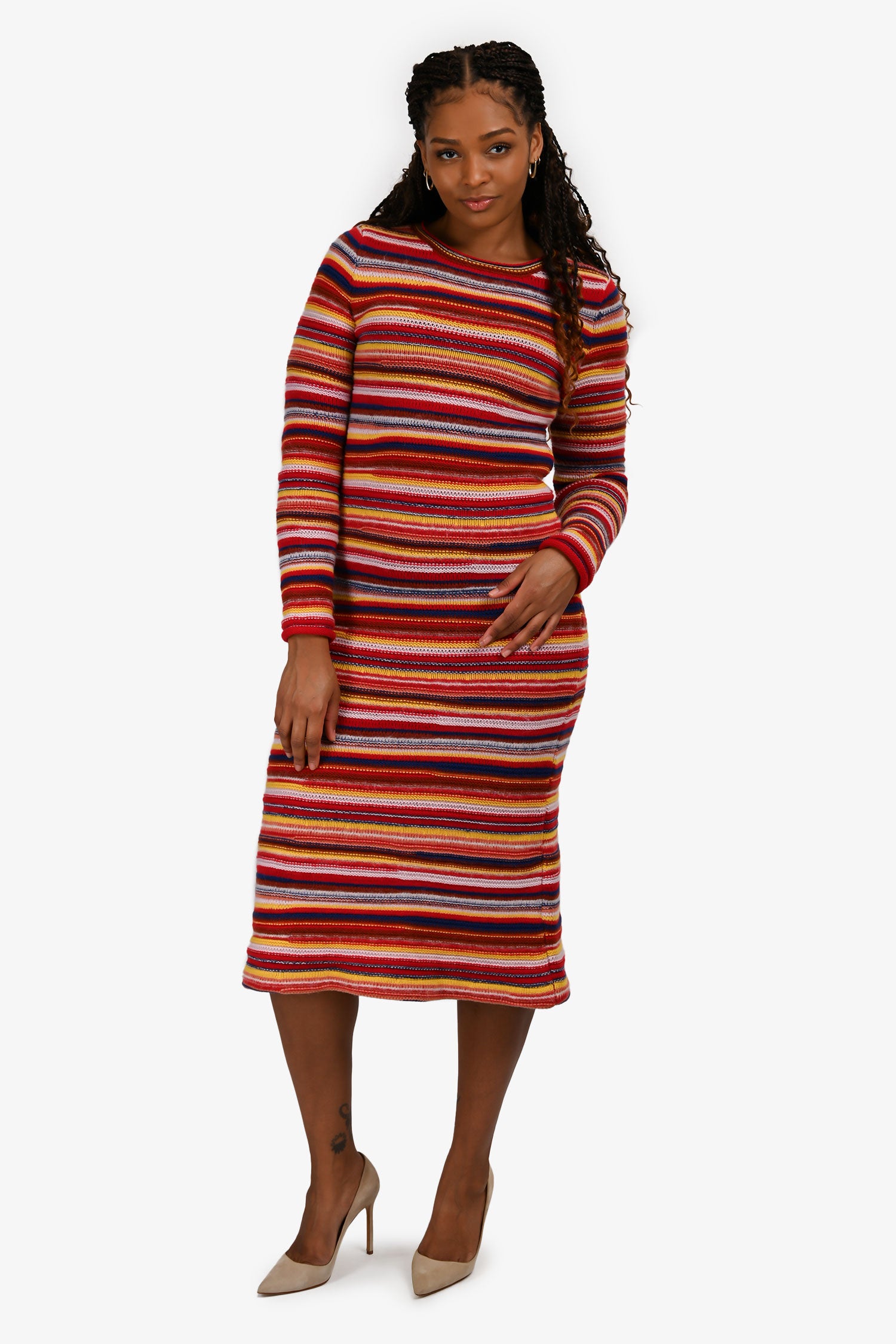 Refresh availabilityChloe Red Stipped Cashmere Knit Long Dress. Pull-on. Round neckline. Tonal stitching.