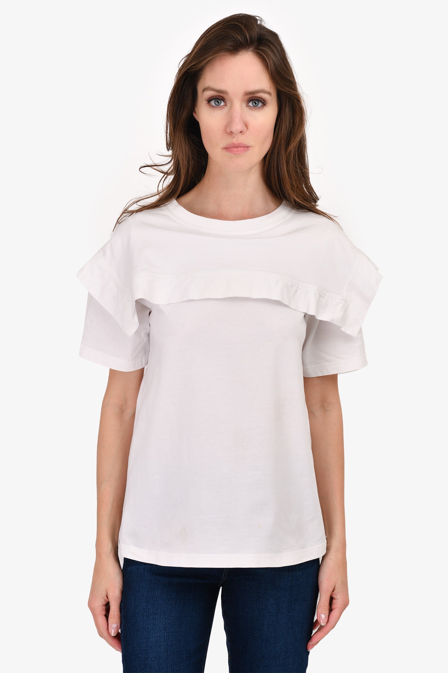 Chloe White 'Bib' Detail T-Shirt Size L