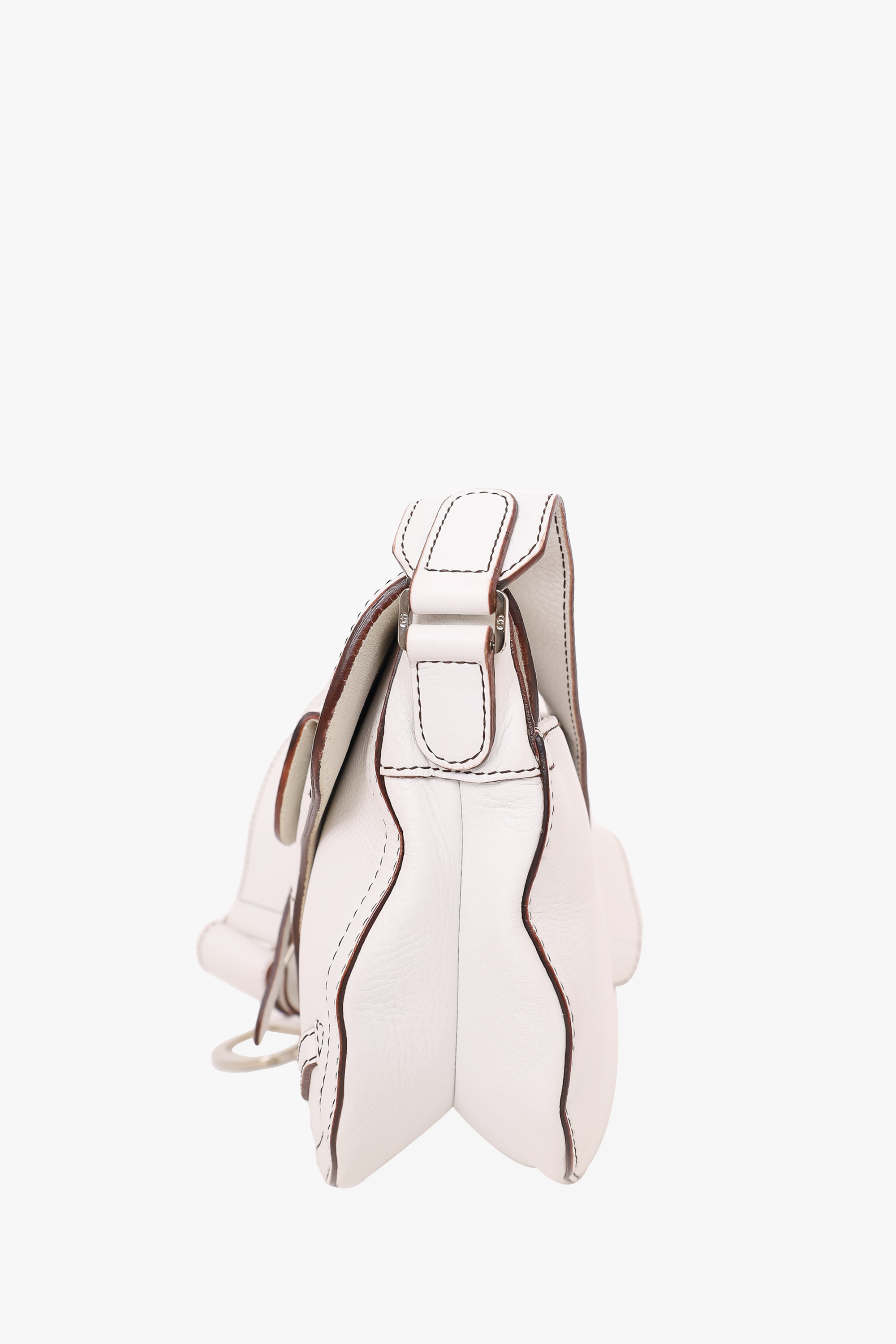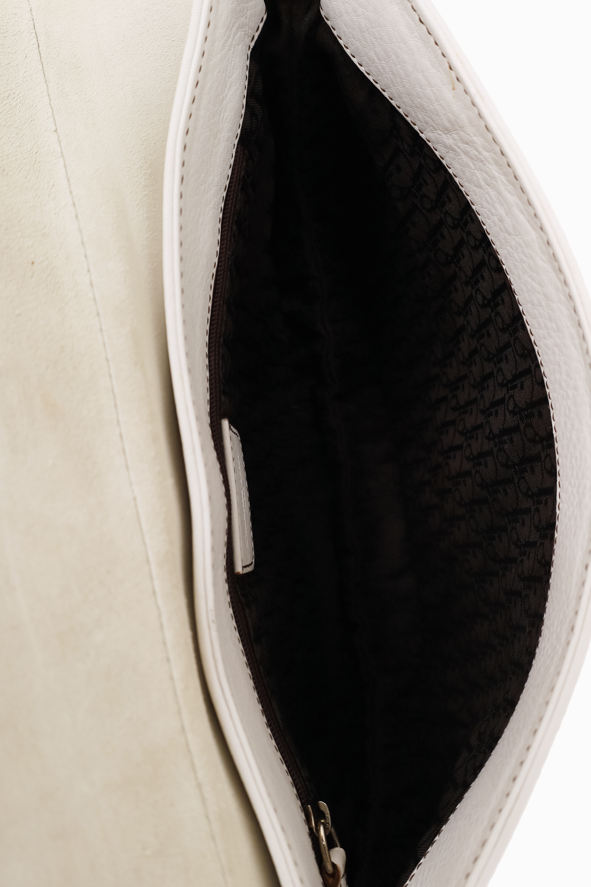 Christian Dior 2002 White Grained Calfskin Baudrier Saddle Messenger Bag