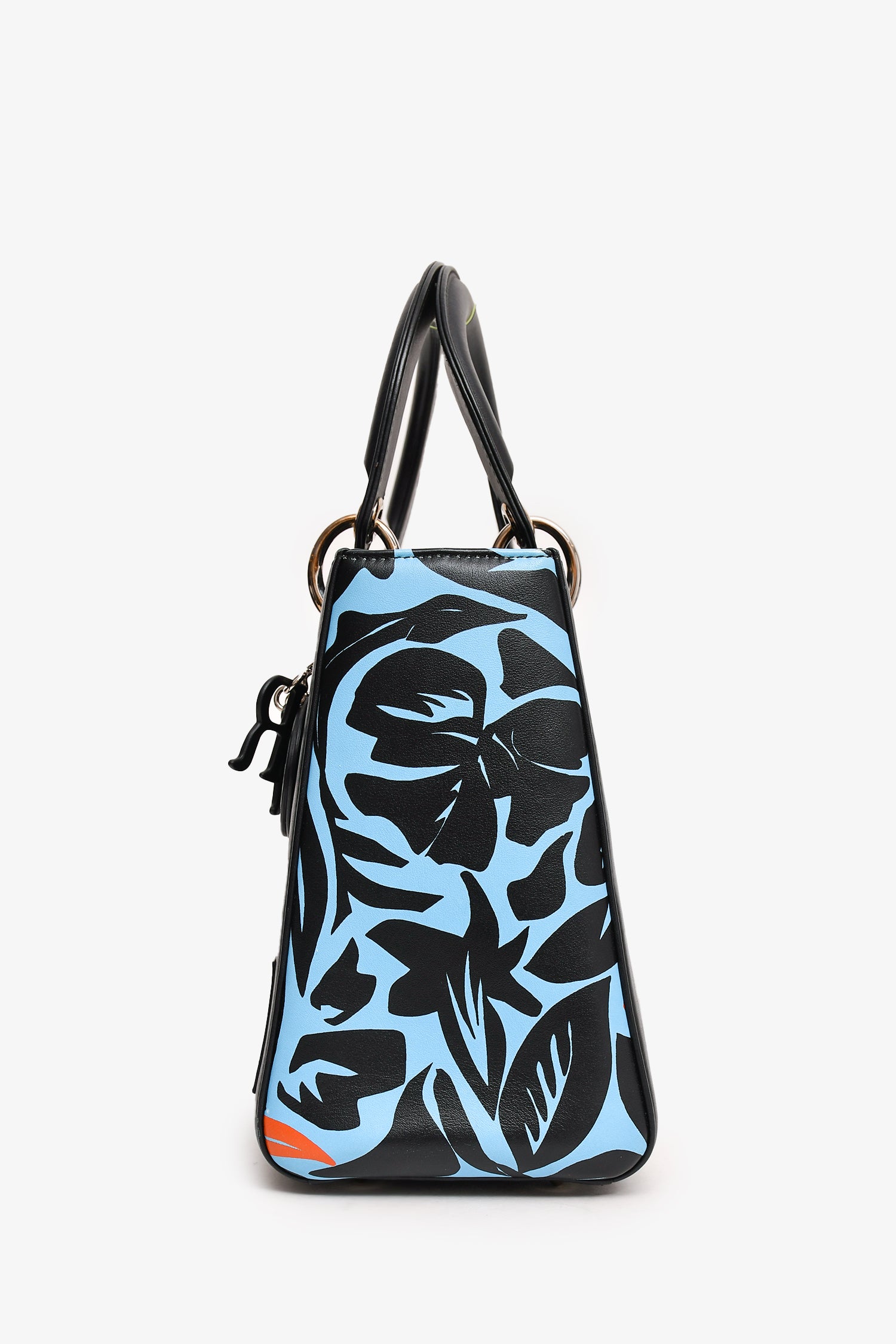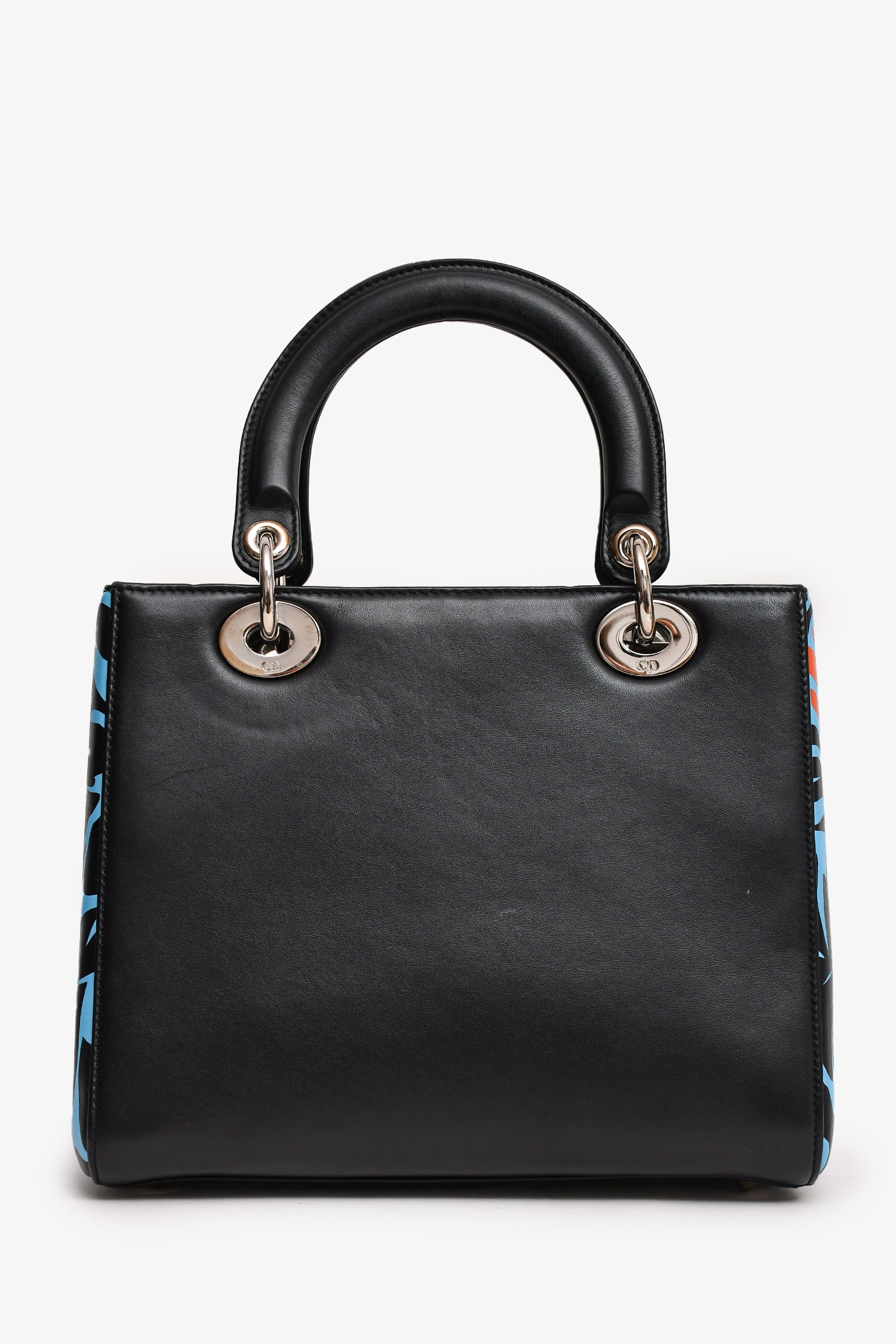 Christian Dior 2016 Black/Blue Leather Floral Printed Lady Dior