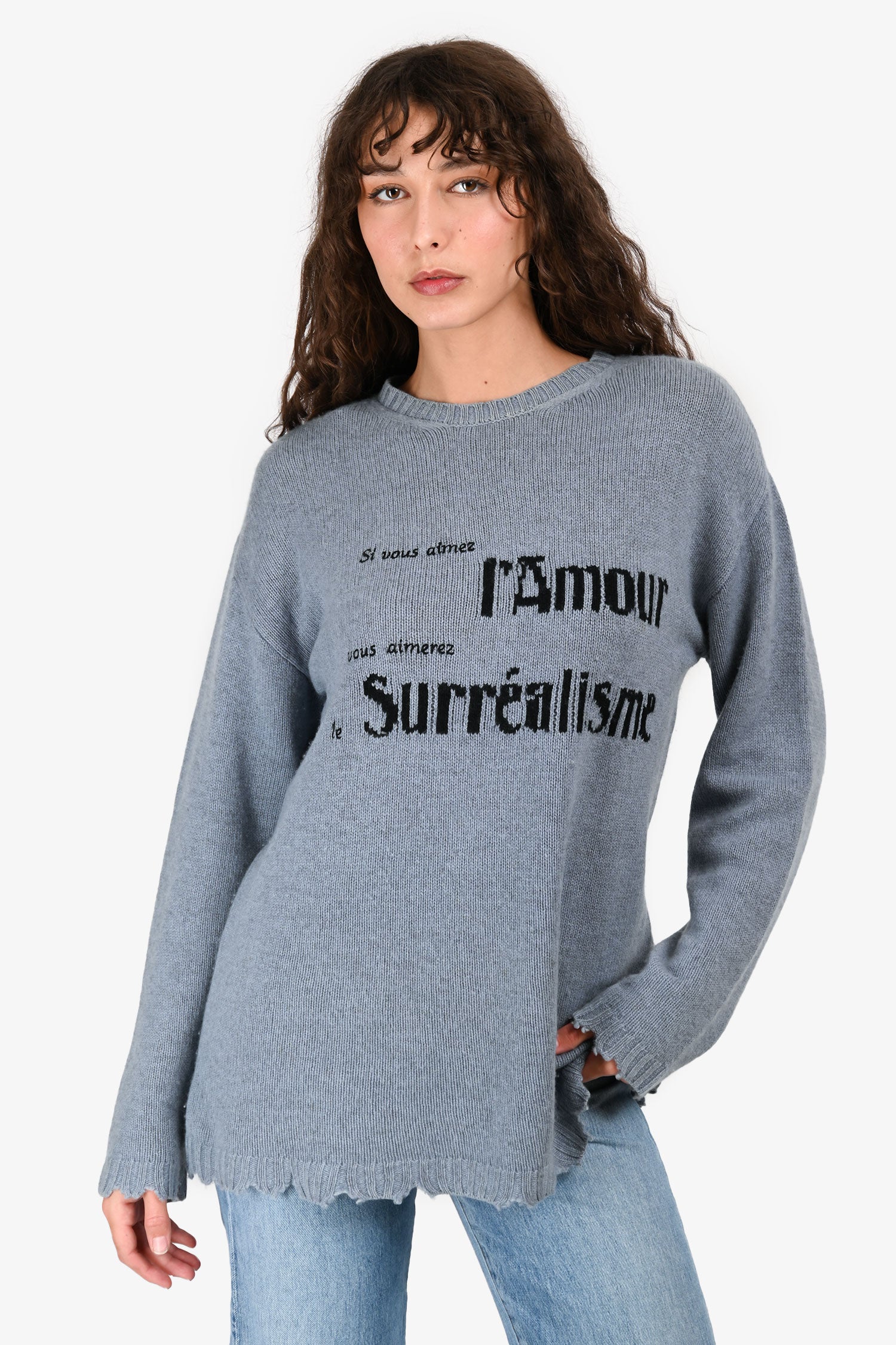 Refresh availabilityChristian Dior 2018 Blue Cashmere 'L'Amour' Distressed Hem Sweater. Pull-on. Round neckline. Ribbed neck, cuffs, and hemline. Tonal stitching.