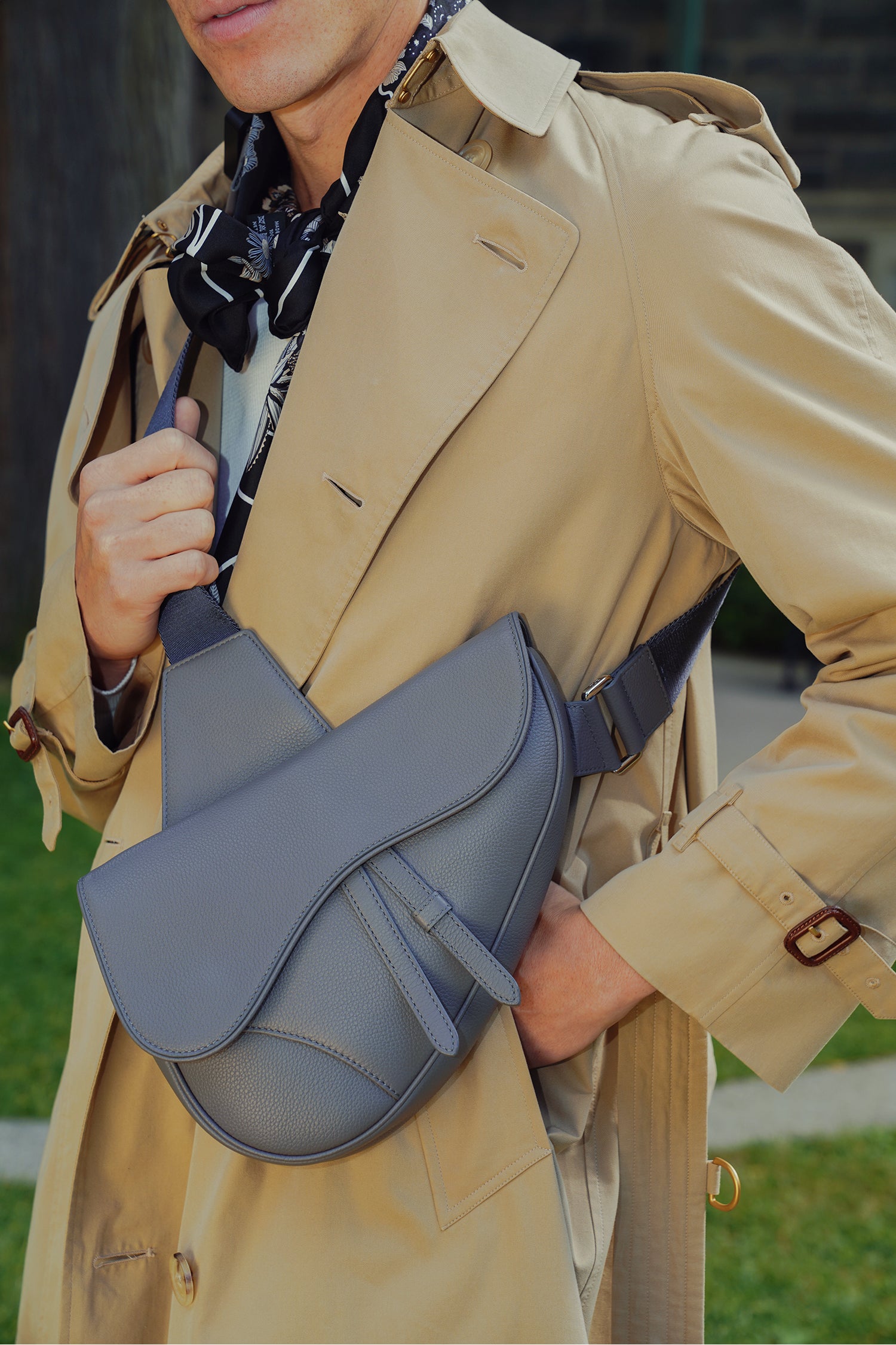 Christian Dior 2019 Grey Grained Calfskin Saddle Bag Mens