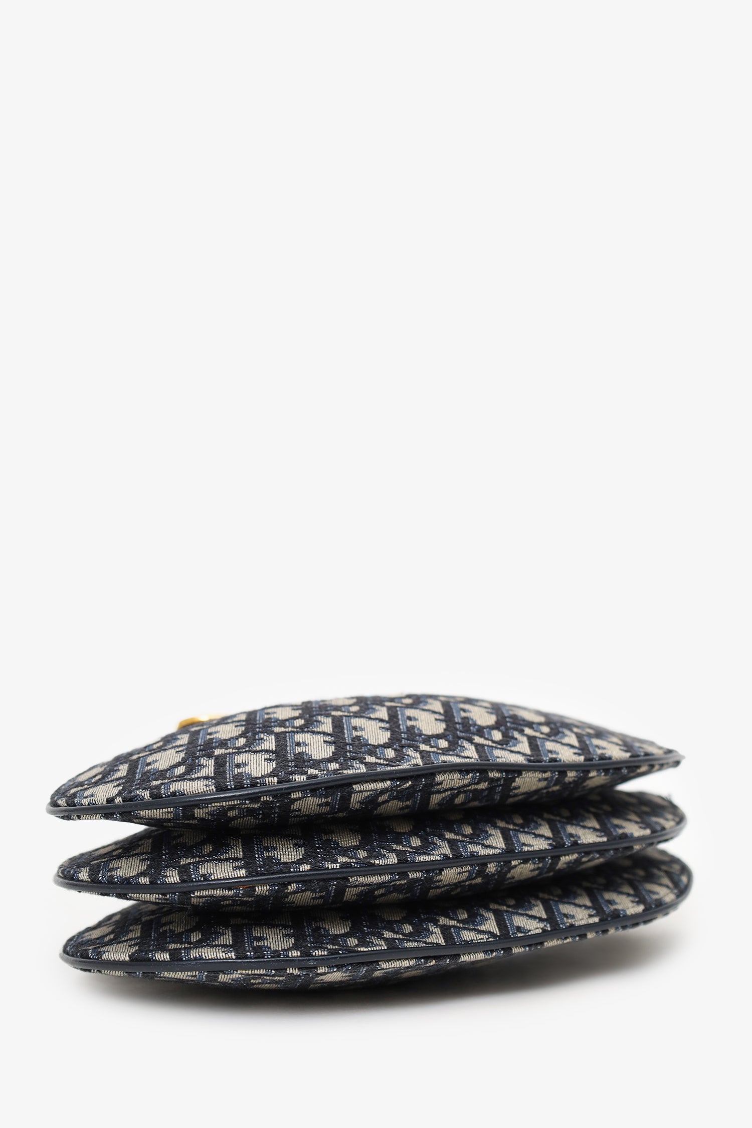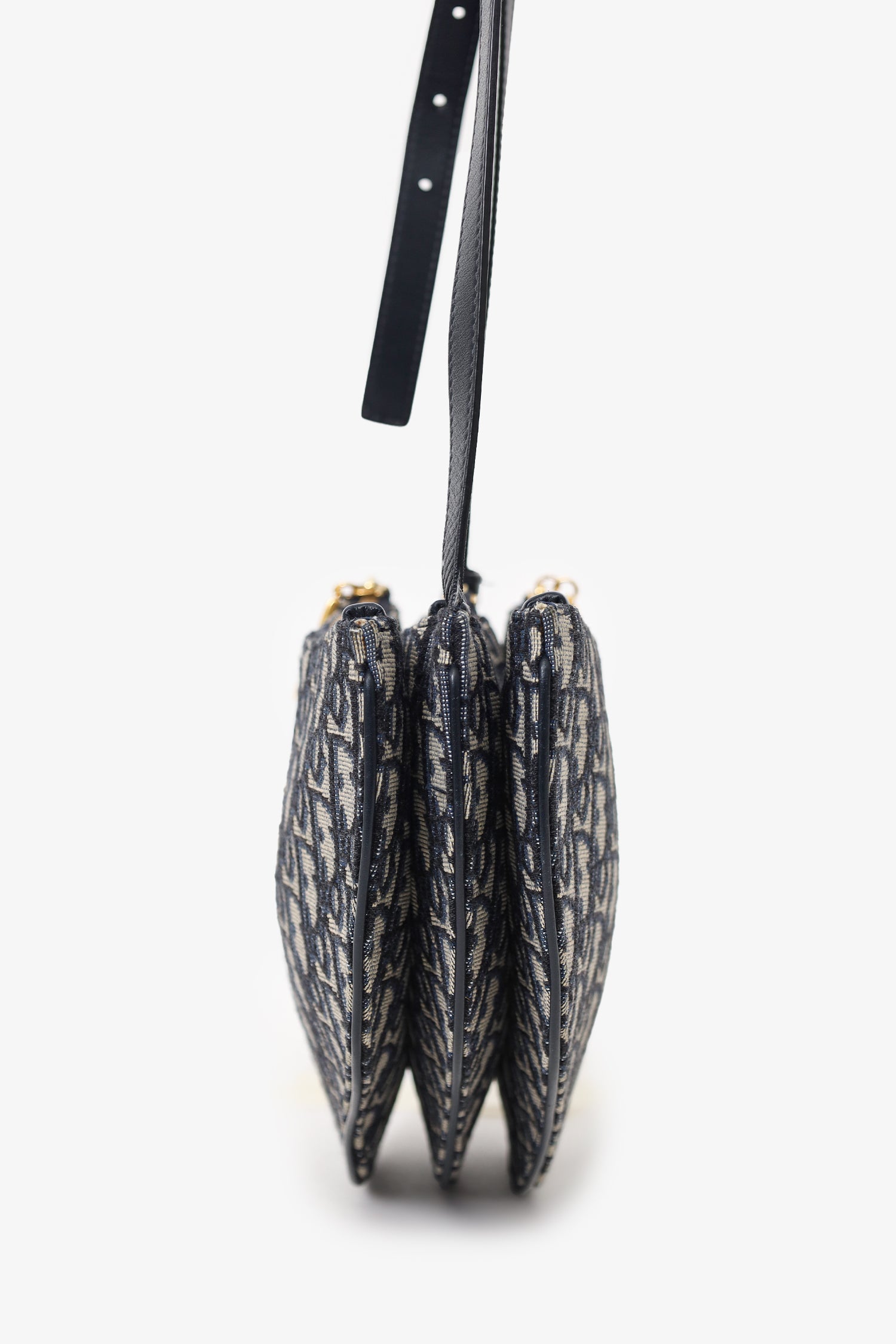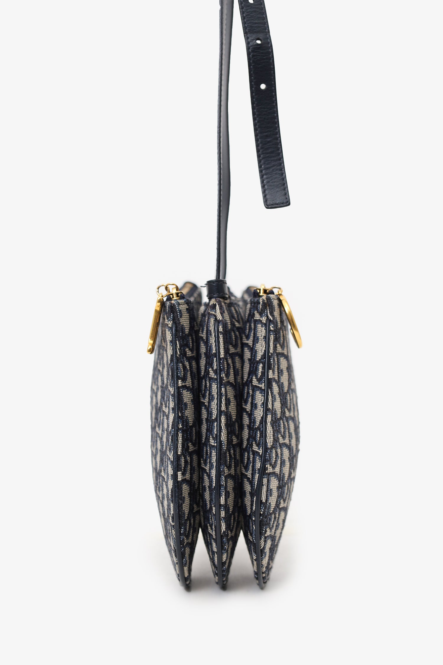 Refresh availabilityChristian Dior 2019 Oblique Canvas Saddle Triple Zip Crossbody bag. Top zip closure. 3 zip compartments. Crossbody strap with adjustable buckle closure. Canvas lined interior. Gold-tone hardware. Tonal stitching.