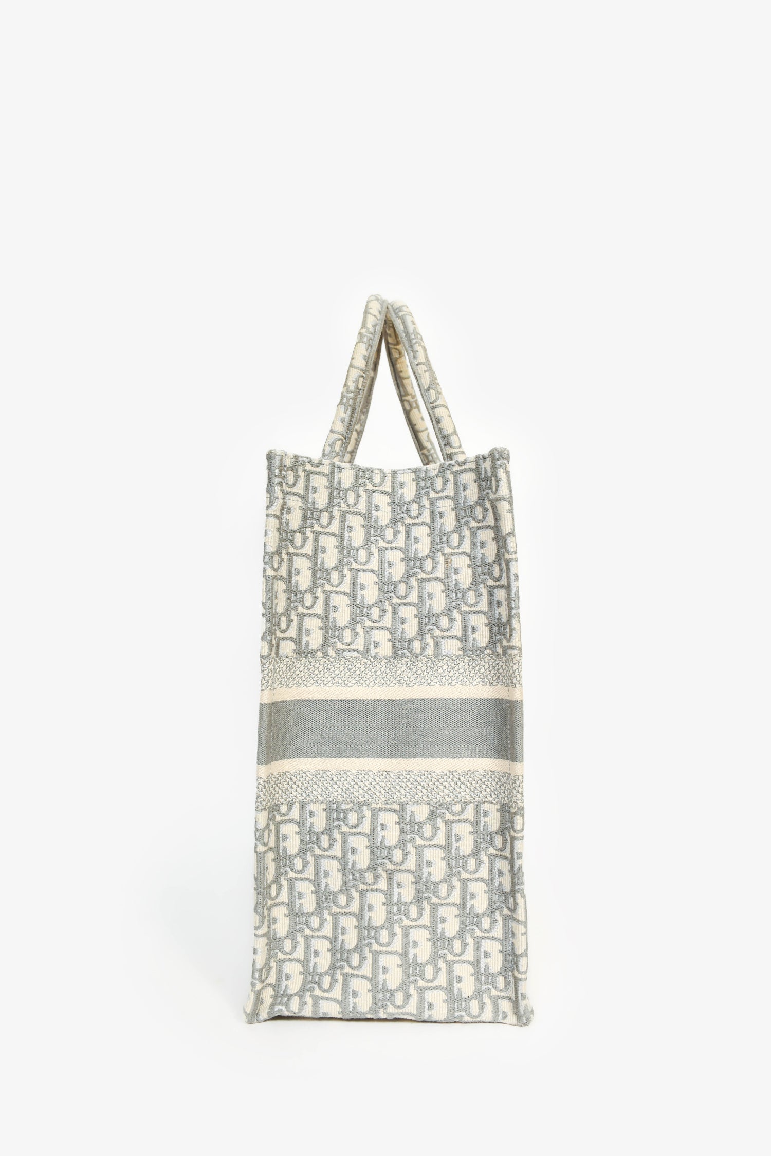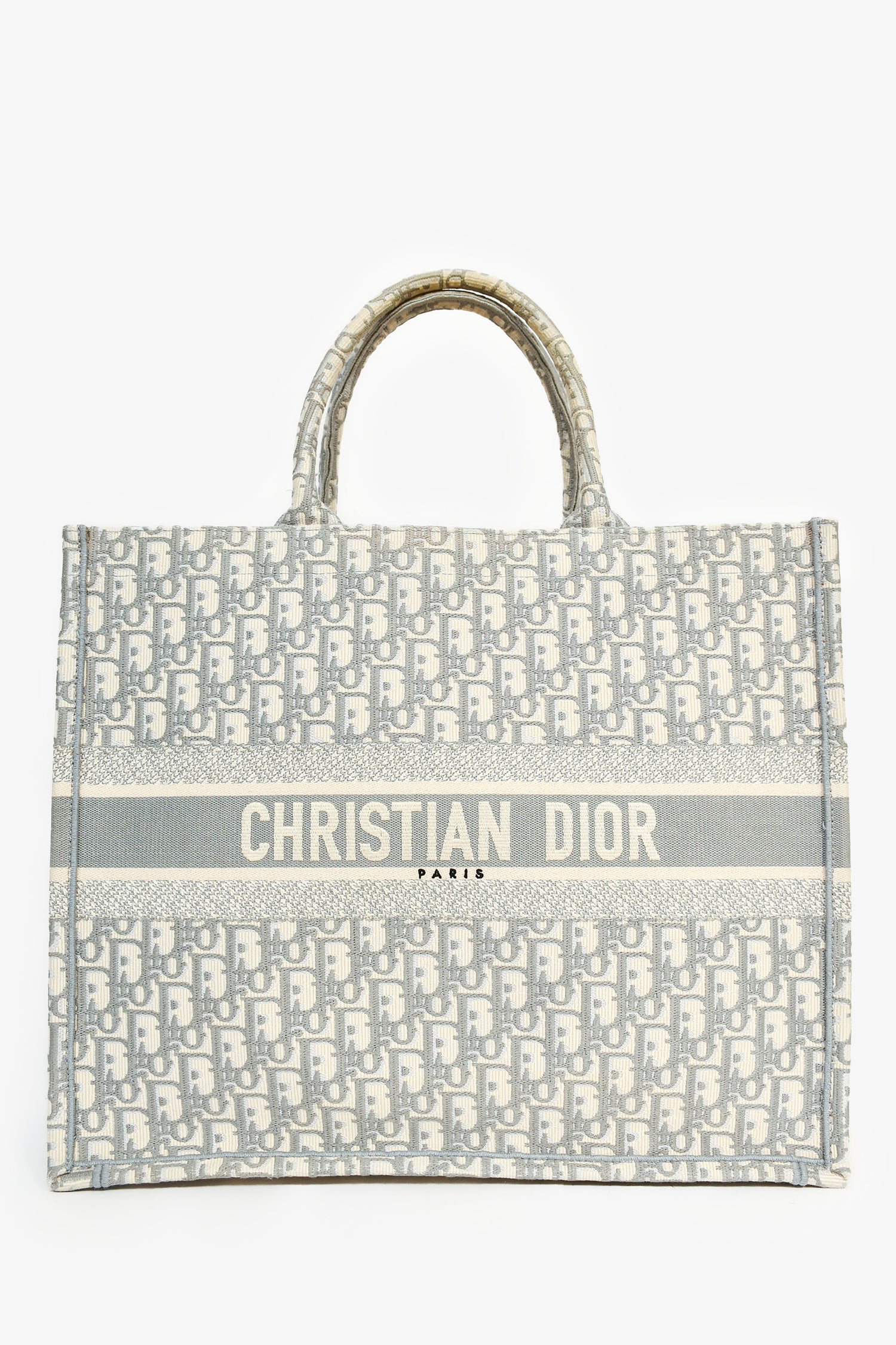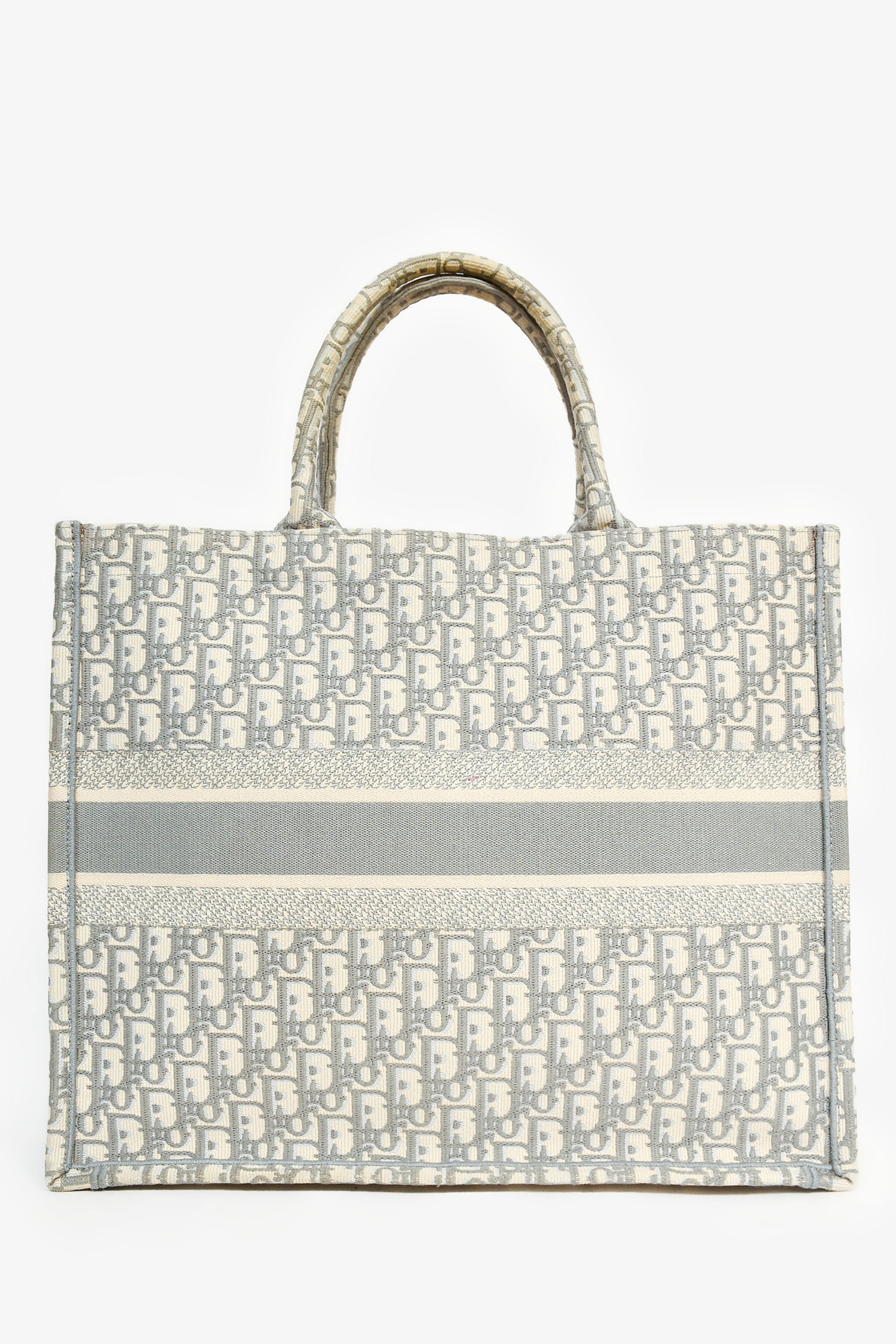 Refresh availabilityChristian Dior 2020 Grey Oblique Jacquard Large Book Tote. Two-tone 'Oblique' motif. Rolled top handles. Signature logo. Interior leather tag. Tonal stitching.