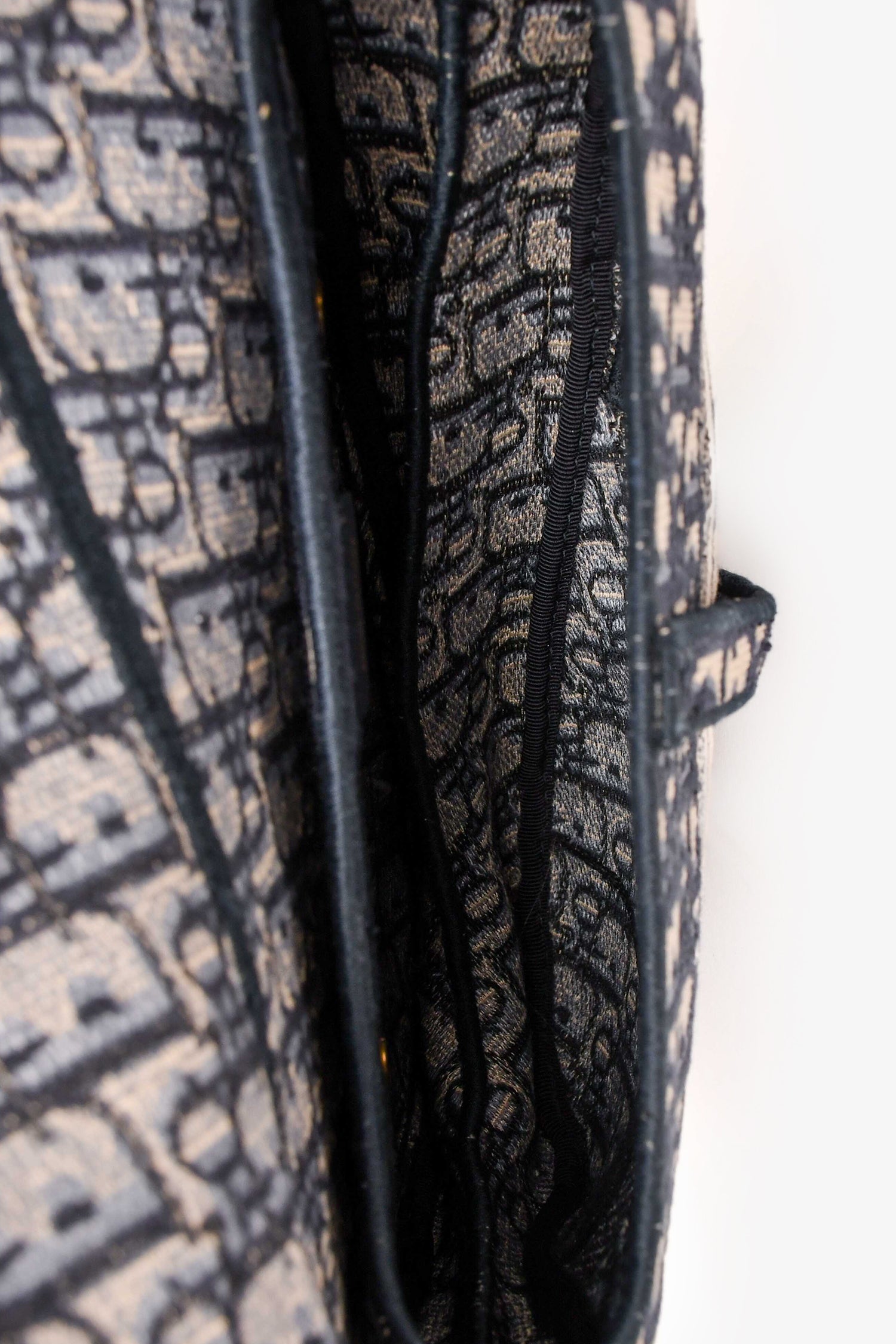 Refresh availabilityChristian Dior 2020 Navy Oblique Classic Saddle Bag. Front fold-over flap with magnetic strap closure. Single shoulder strap. Removable and adjustable crossbody strap. Single exterior slip pocket. Antique gold-toned hardware. Tonal stitching.