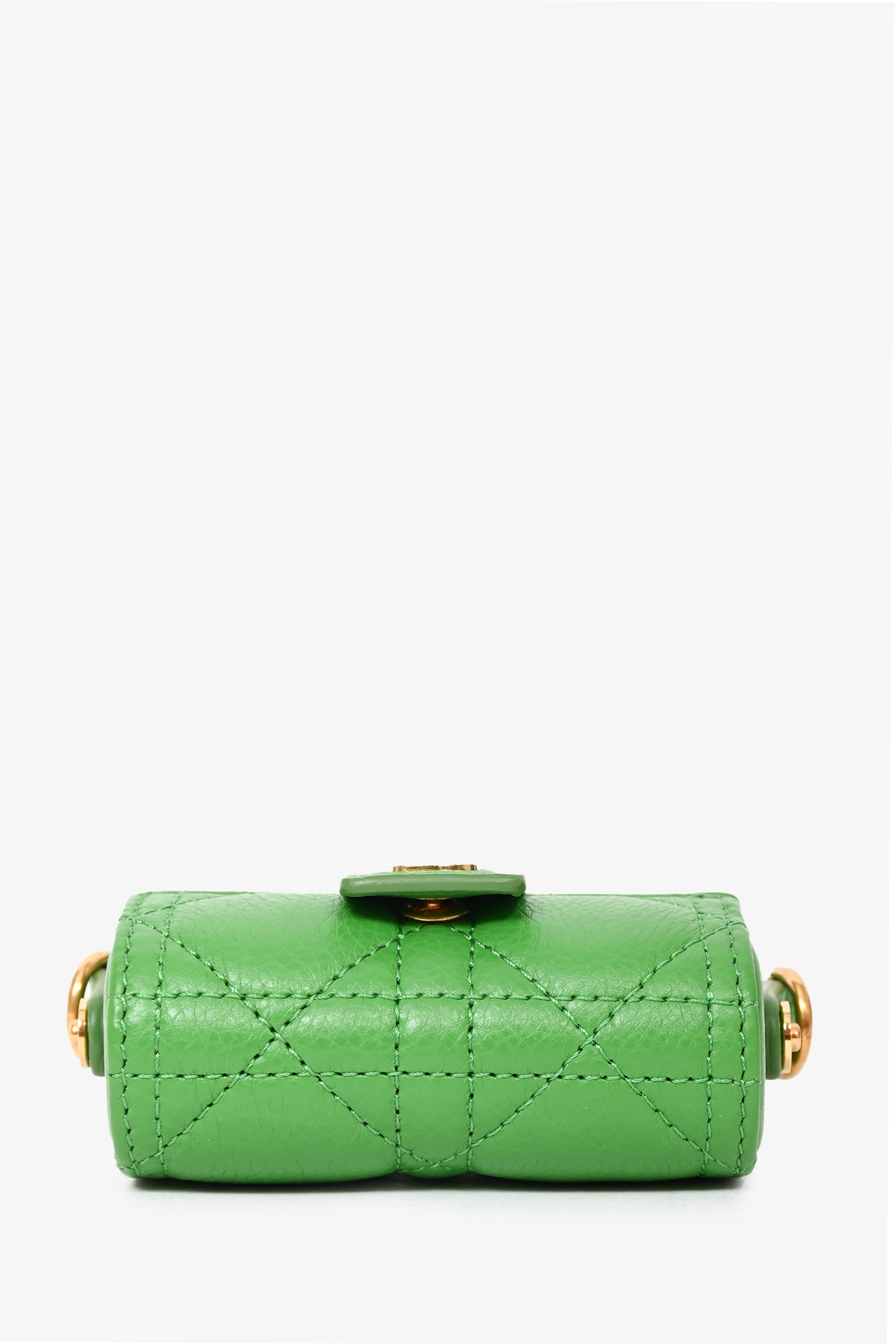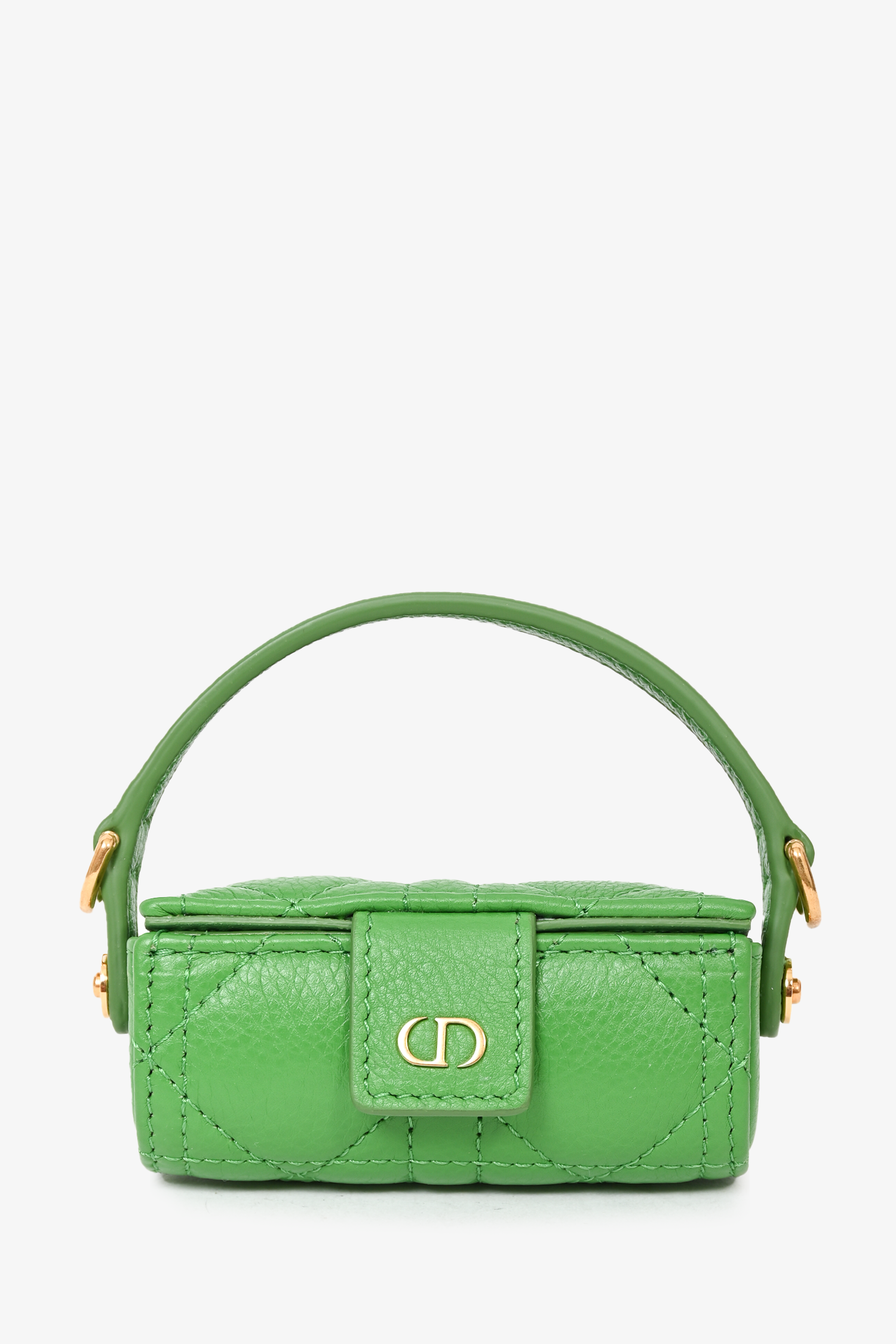 Refresh availabilityChristian Dior 2022 Green Caro Lipstick Bag with Chain. Front fold-over flap with snap-button closure. Open interior. Interior mirror. Removable chain strap. Gold-tone hardware. Tonal stitching.