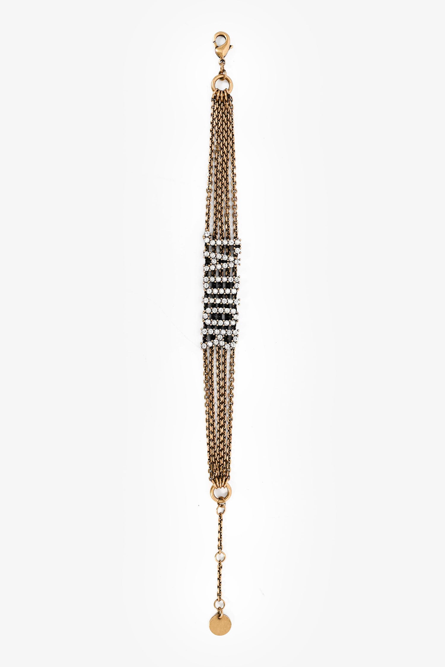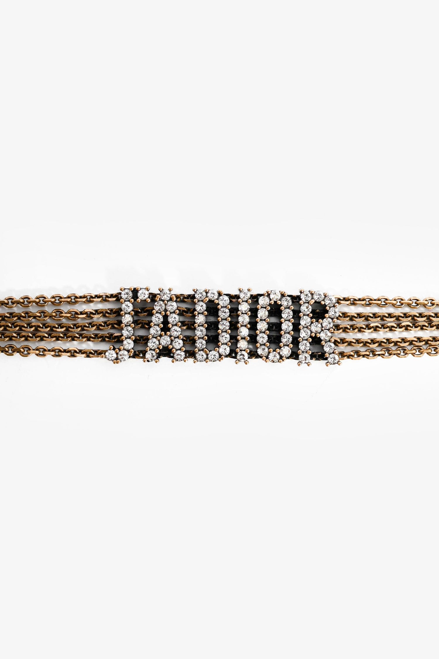 Refresh availabilityChristian Dior Antique Gold Toned Crystal Embellished 'J'Adior' Multichain Bracelet. Lobster clasp closure.