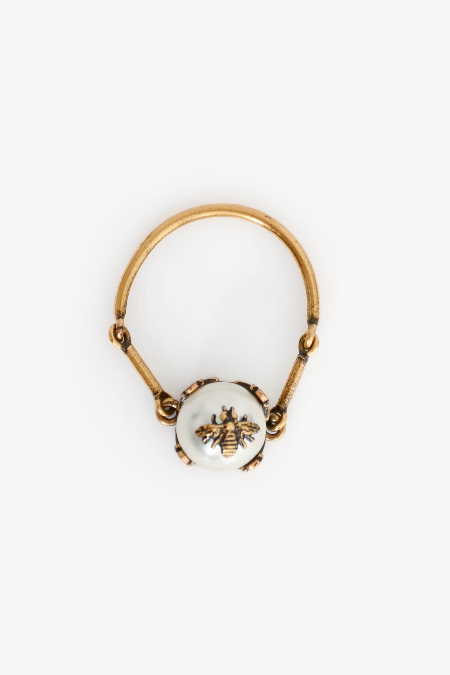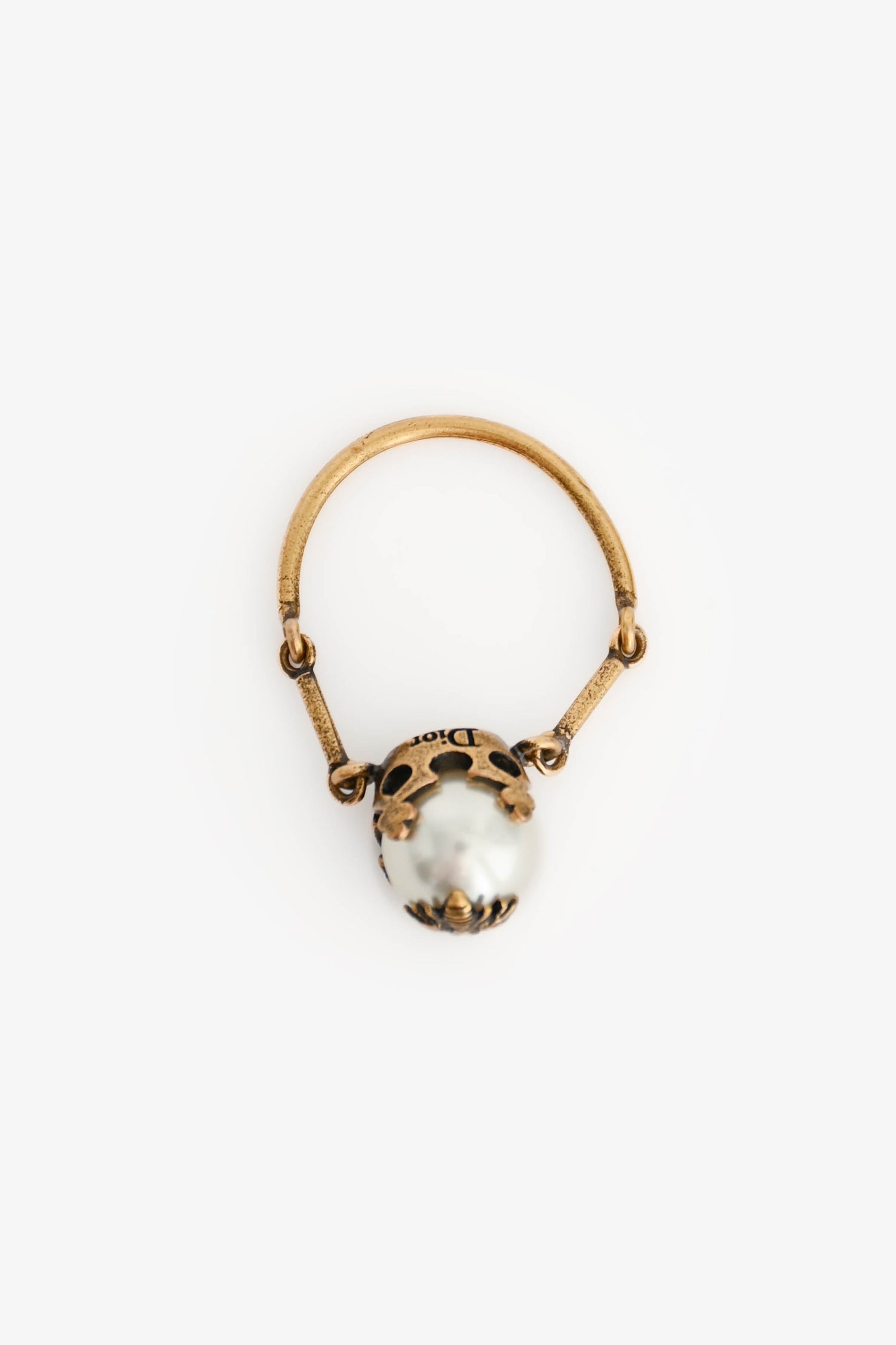 Refresh availabilityChristian Dior Antique Gold Toned Metal Faux Pearl Ring.