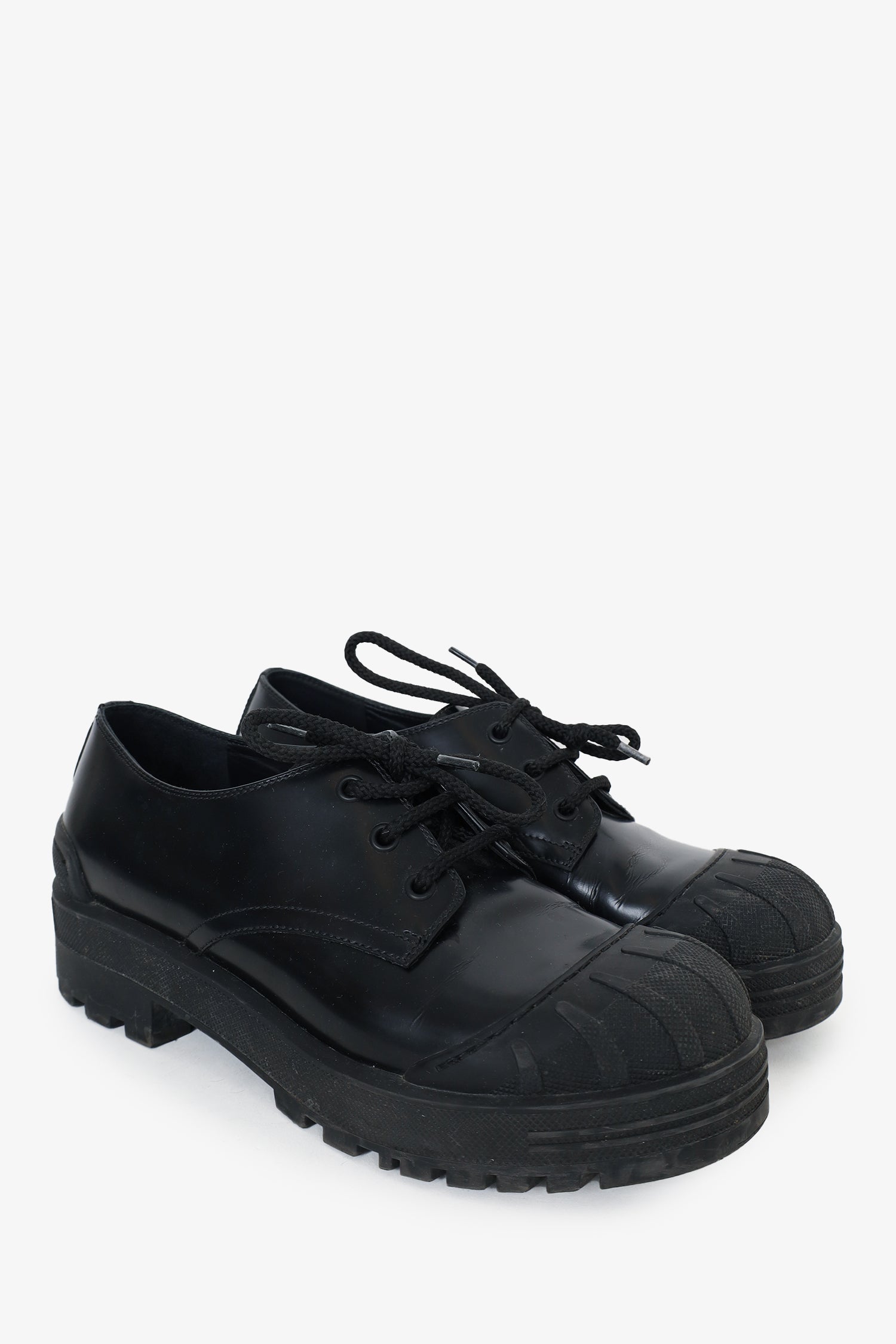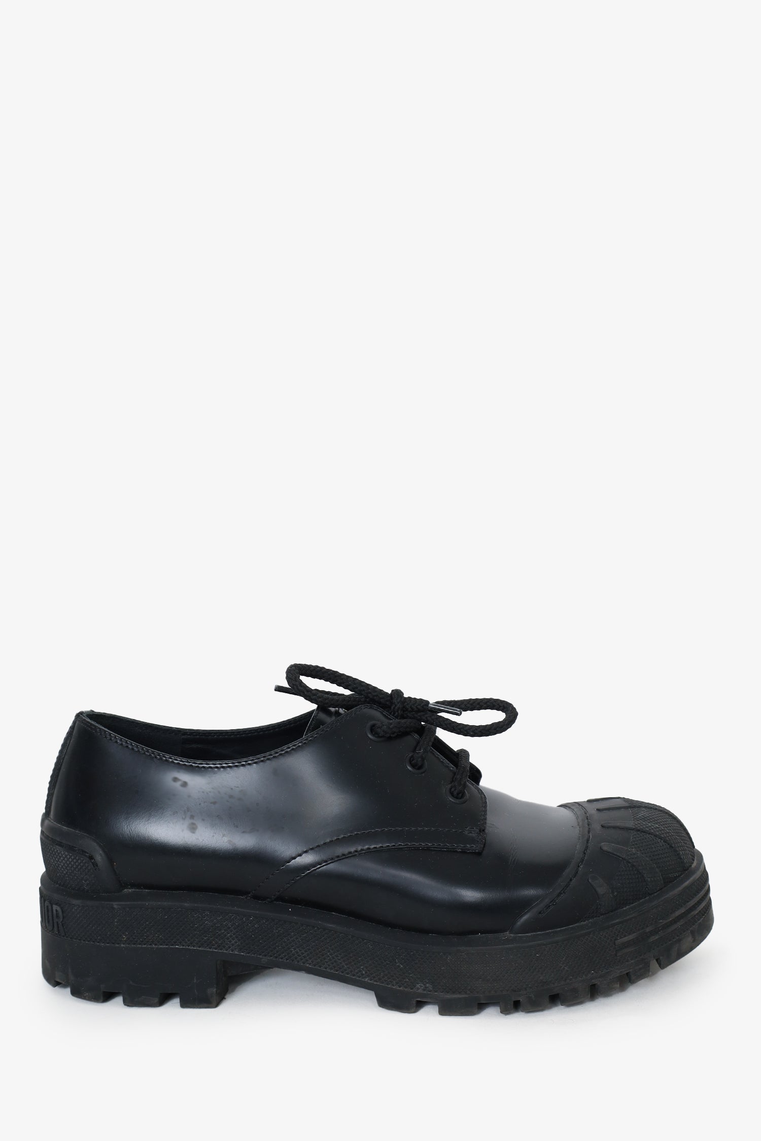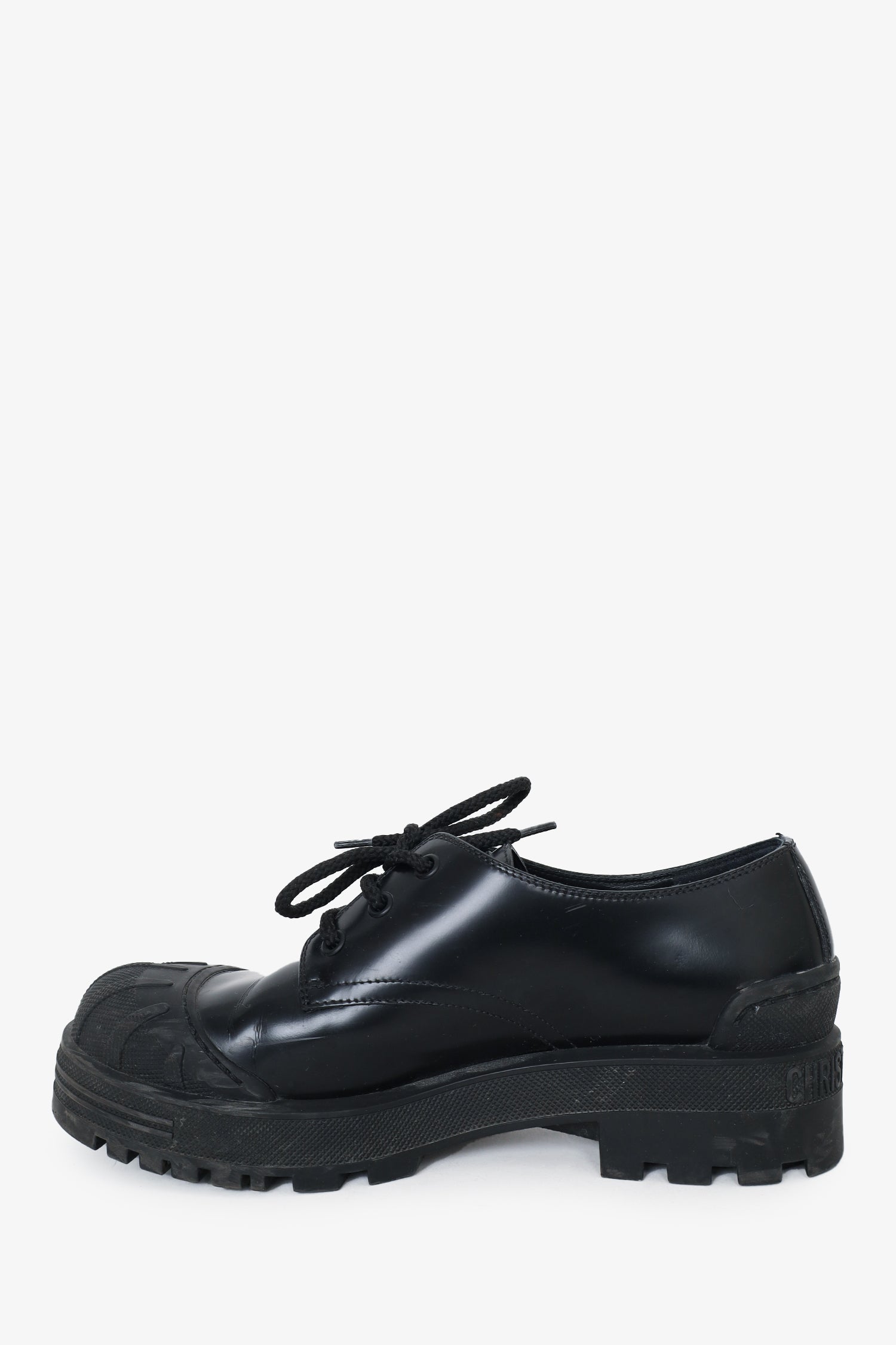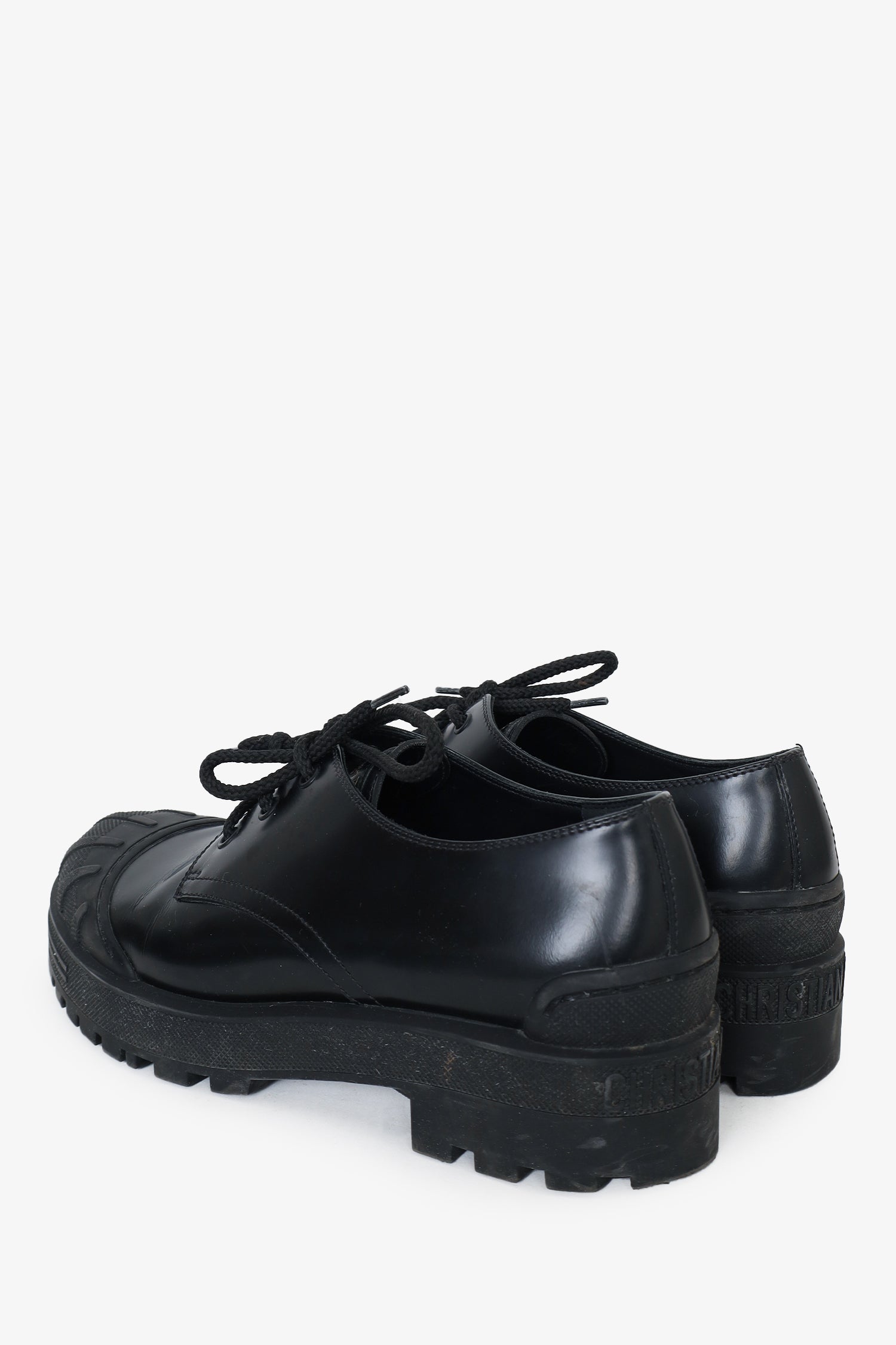 Refresh availabilityChristian Dior Black Brushed Calfskin Lace Up Derby Shoes. Top lace-up closure. Round textured toe cap. Tonal stitching.
