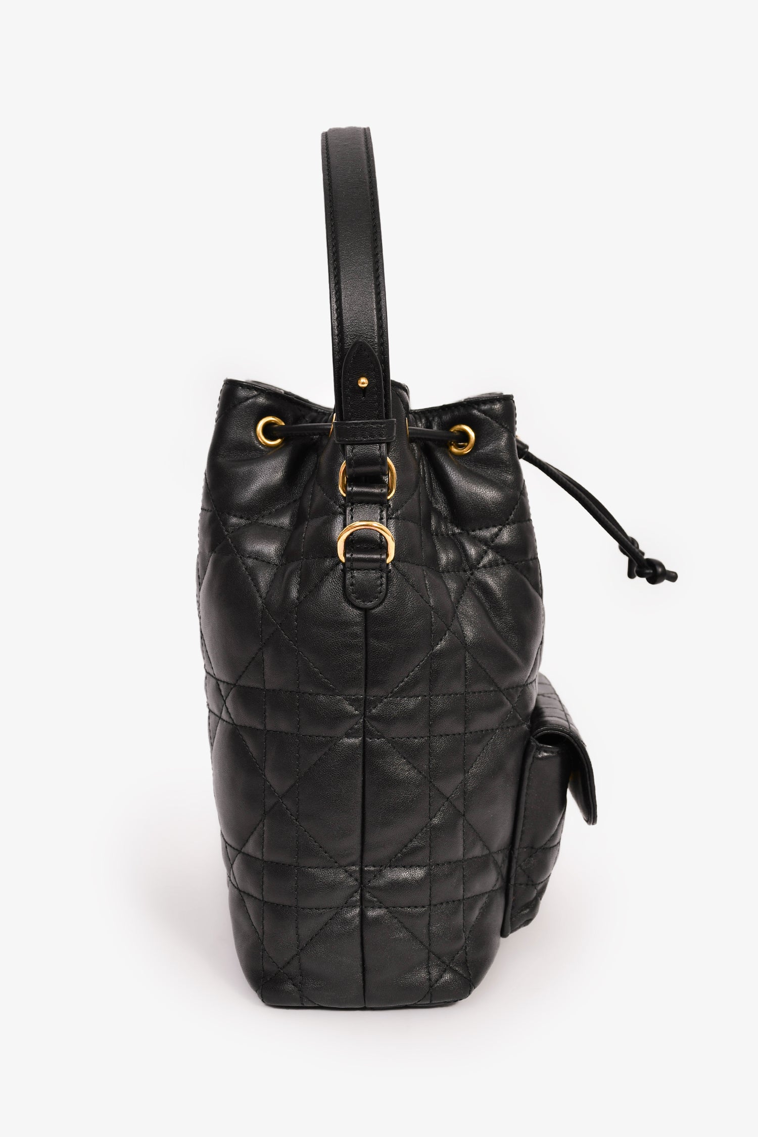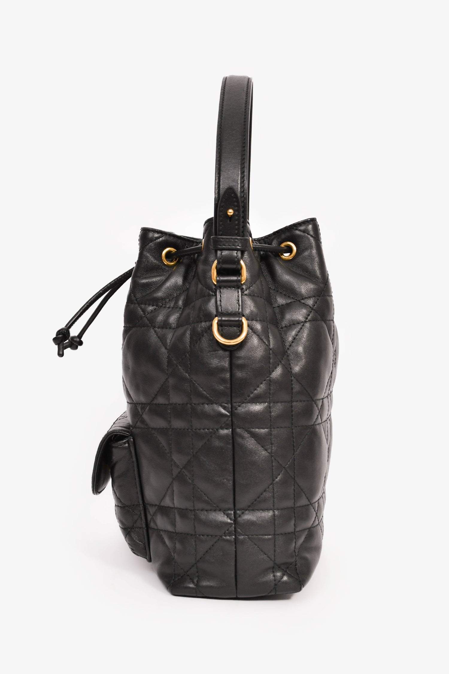 Christian Dior Black Cannage Leather 'Caro' Small Bucket Bag