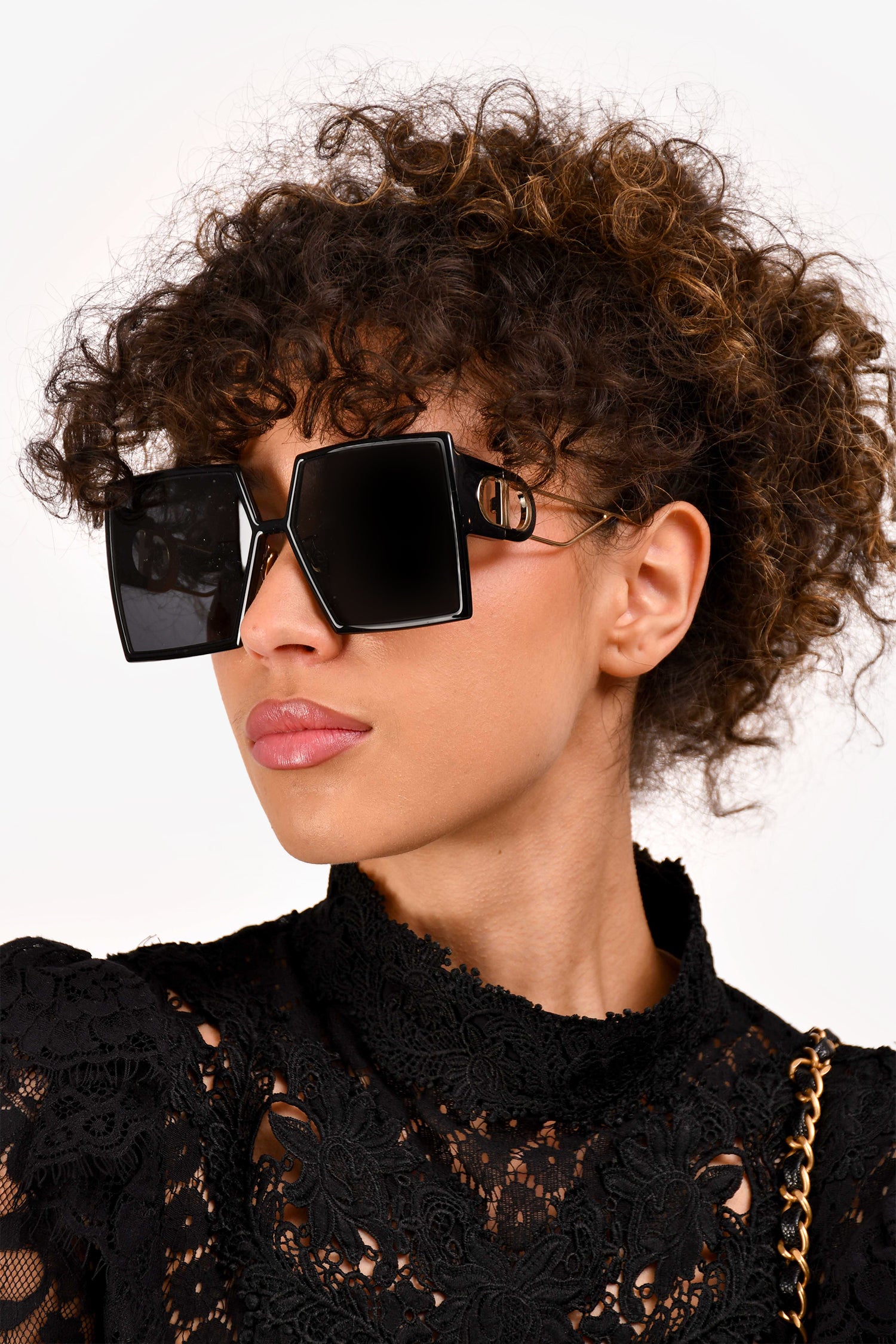 Refresh availabilityChristian Dior Black/Gold Tone Square Framed Sunglasses. Rubber nose-pads. Gold-tone hardware. "DD" detailing on the sides.