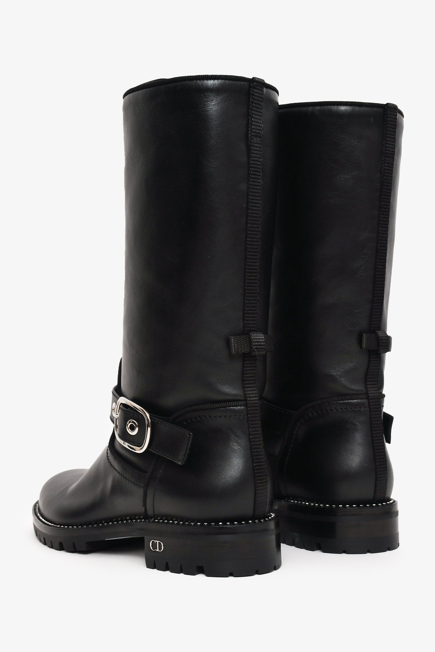 Christian Dior Black Leather Moto Boots with Silver Crystals Size 36