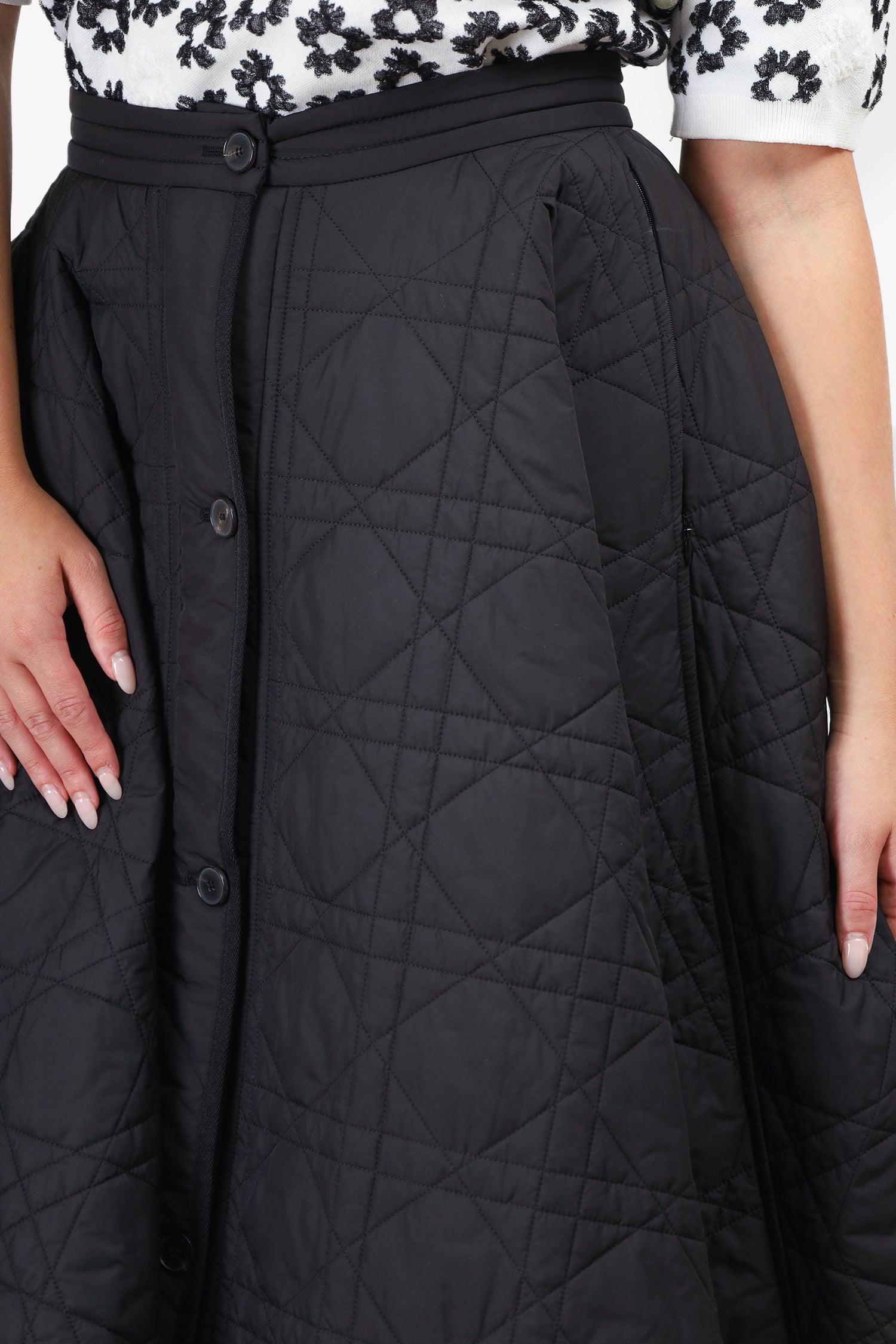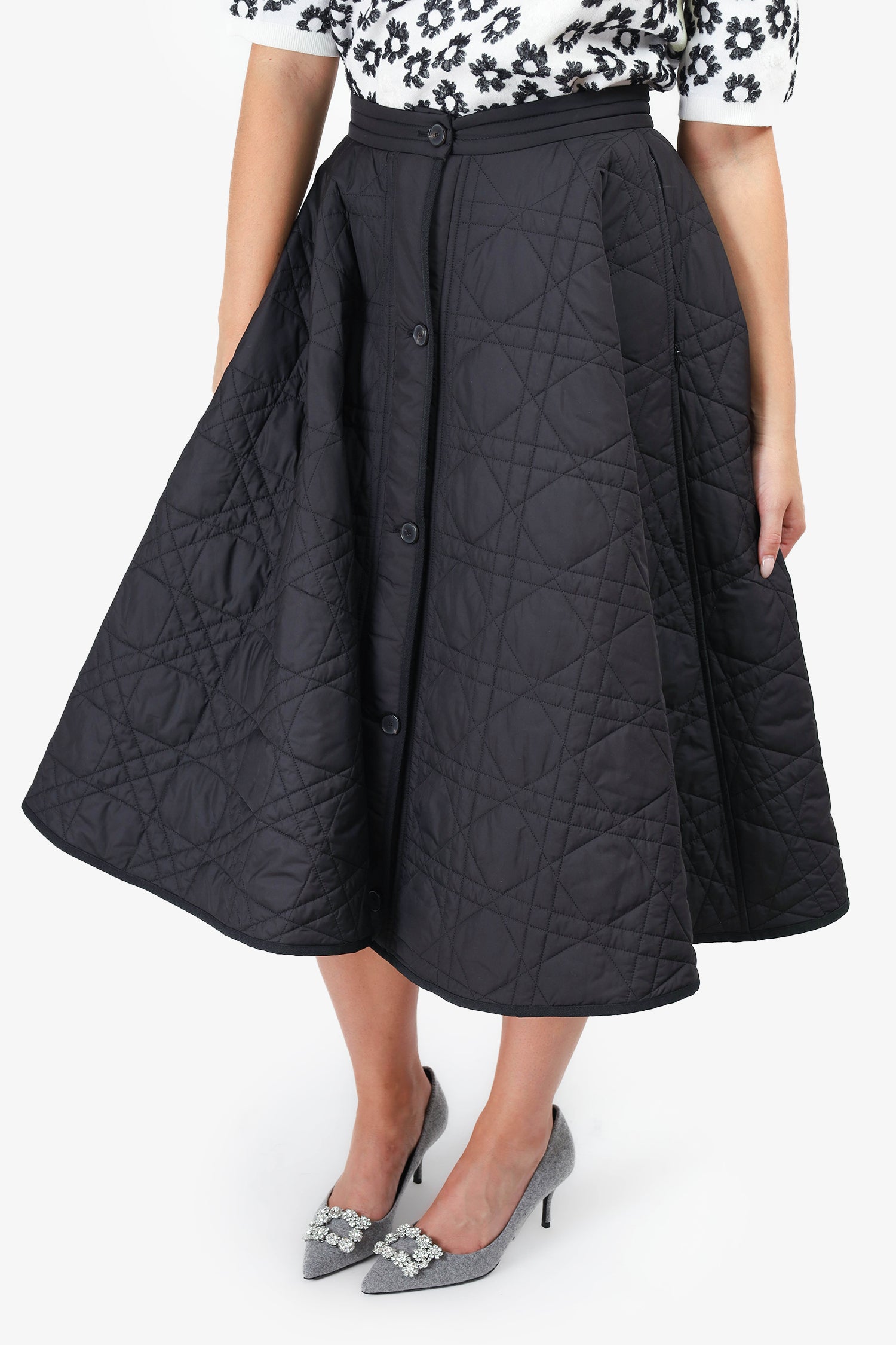 Refresh availabilityChristian Dior Black Macro Cannage Quilted Synthetic Midi Skirt. Pull-on. Front zip closure with buttons over top. 2 side pockets with zip closure. Tonal stitching. Please note, item is pinned on model.
