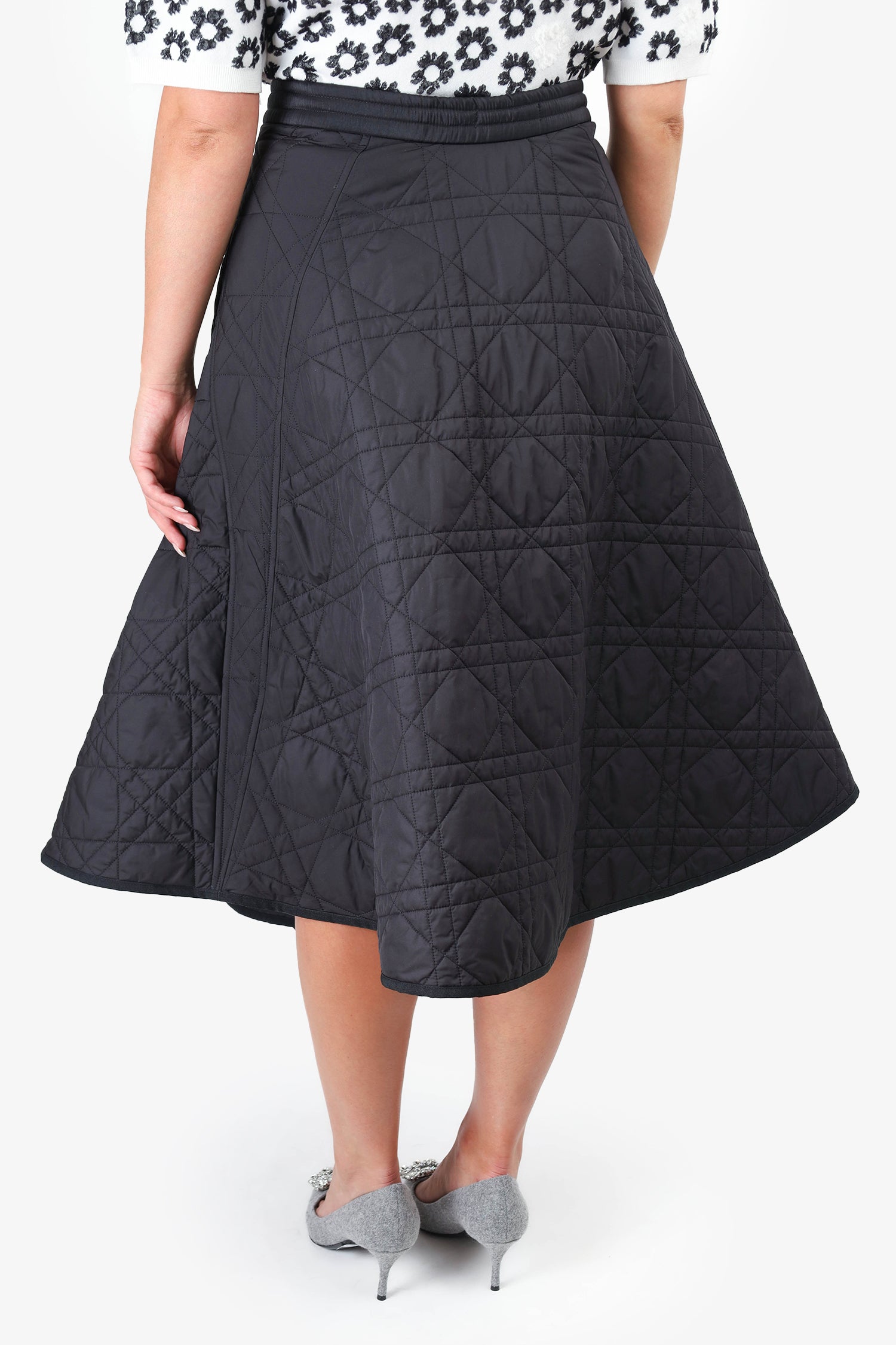 Christian Dior Black Macro Cannage Quilted Synthetic Midi Skirt Est. Size XXL