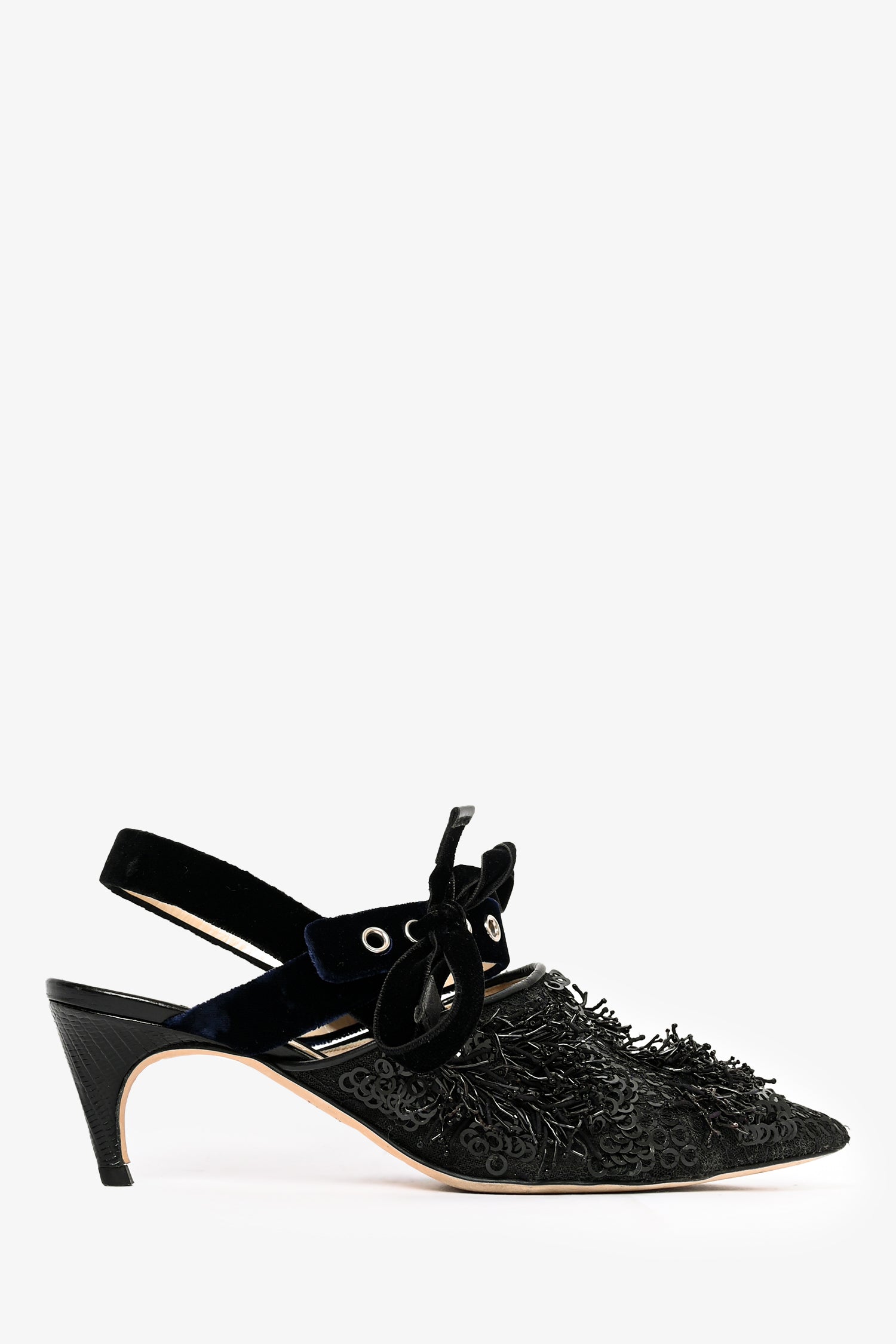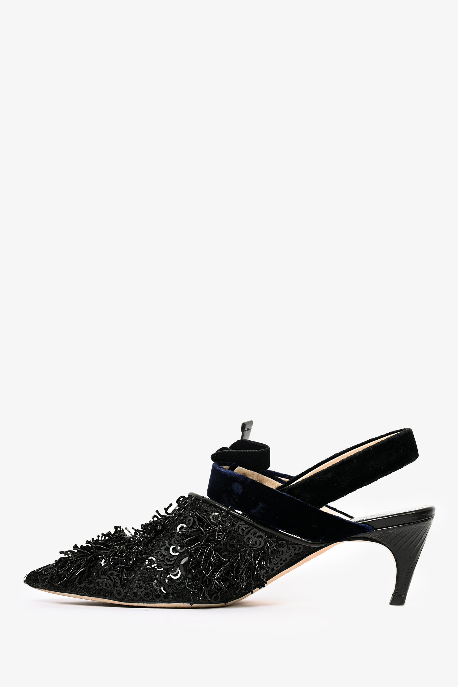 Refresh availabilityChristian Dior Black Sequin Velvet Slingback Heels. Slip-on. Pointed toe.