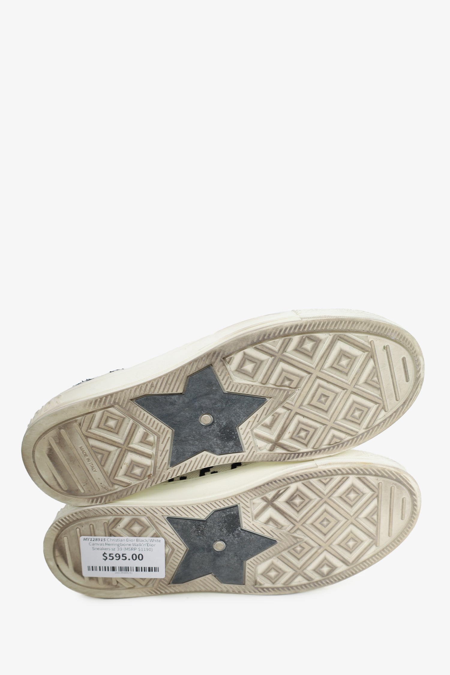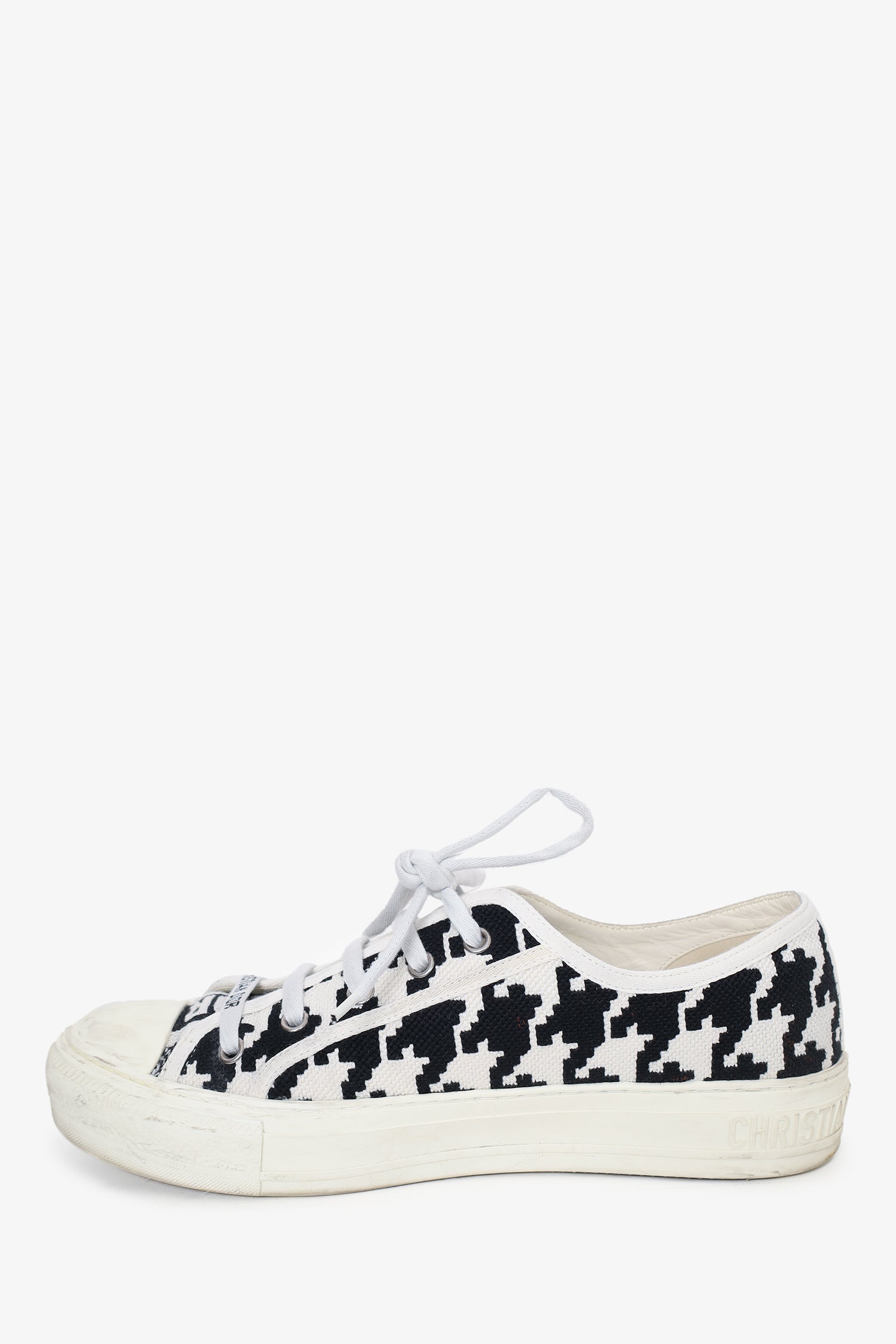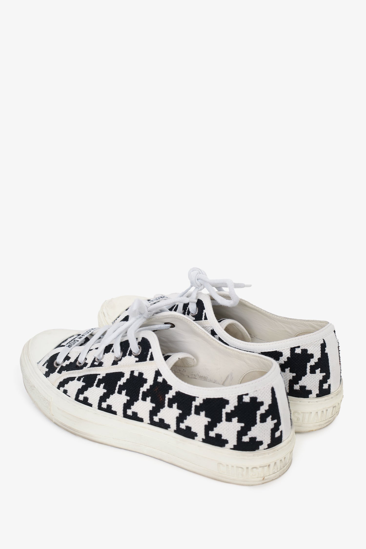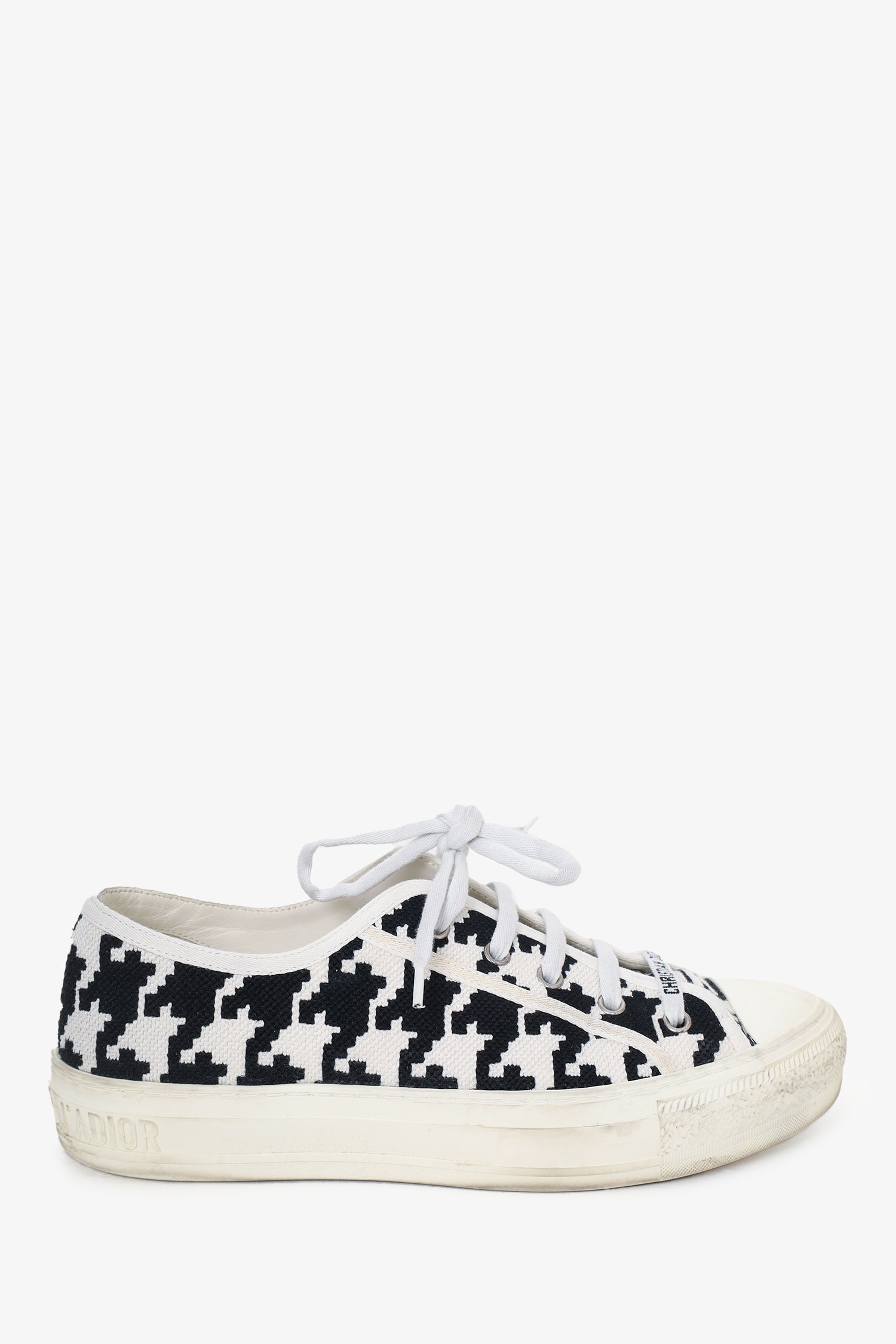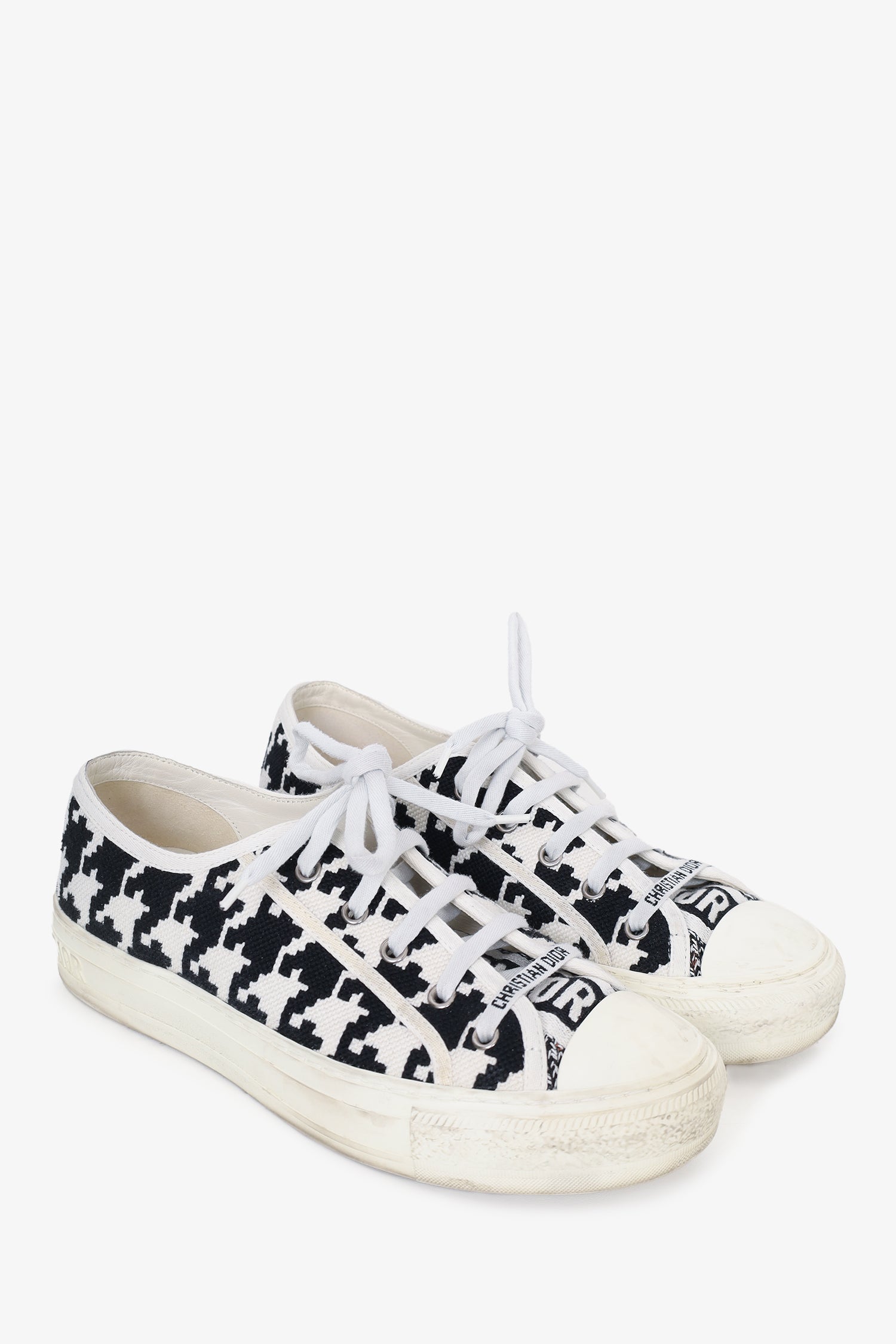 Refresh availabilityChristian Dior Black/White Canvas Herringbone Walk'n'Dior Sneakers. Round toe. Lace-up closure. Tonal stitching.
