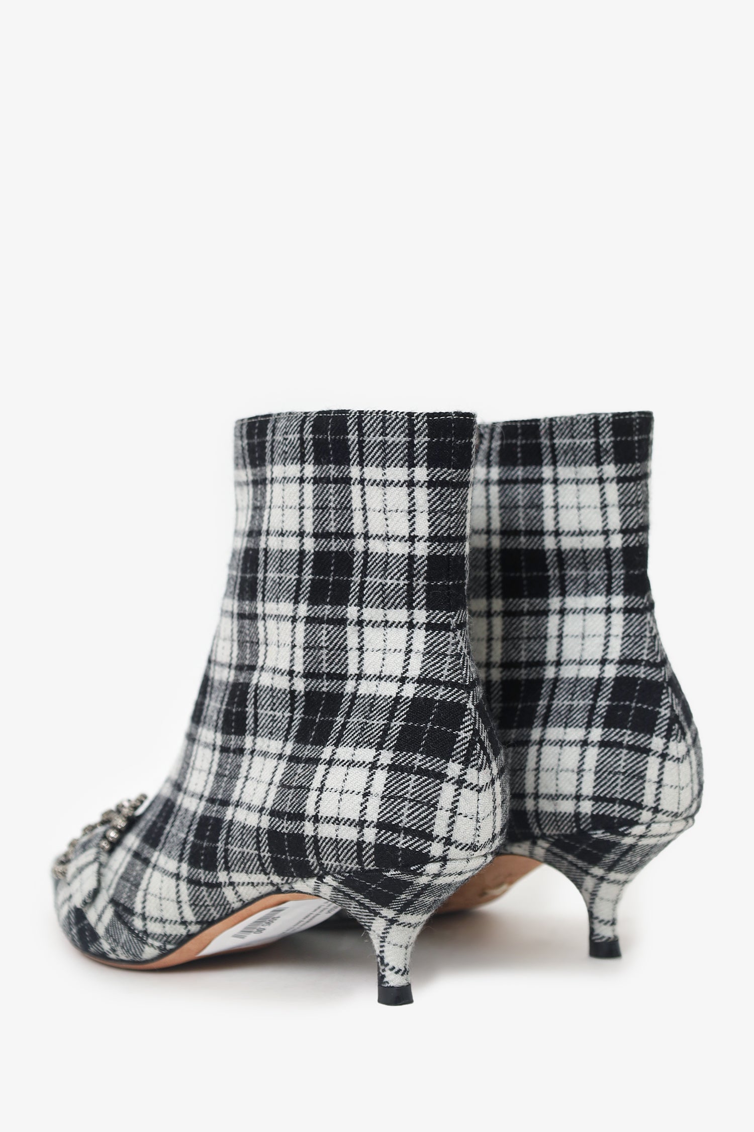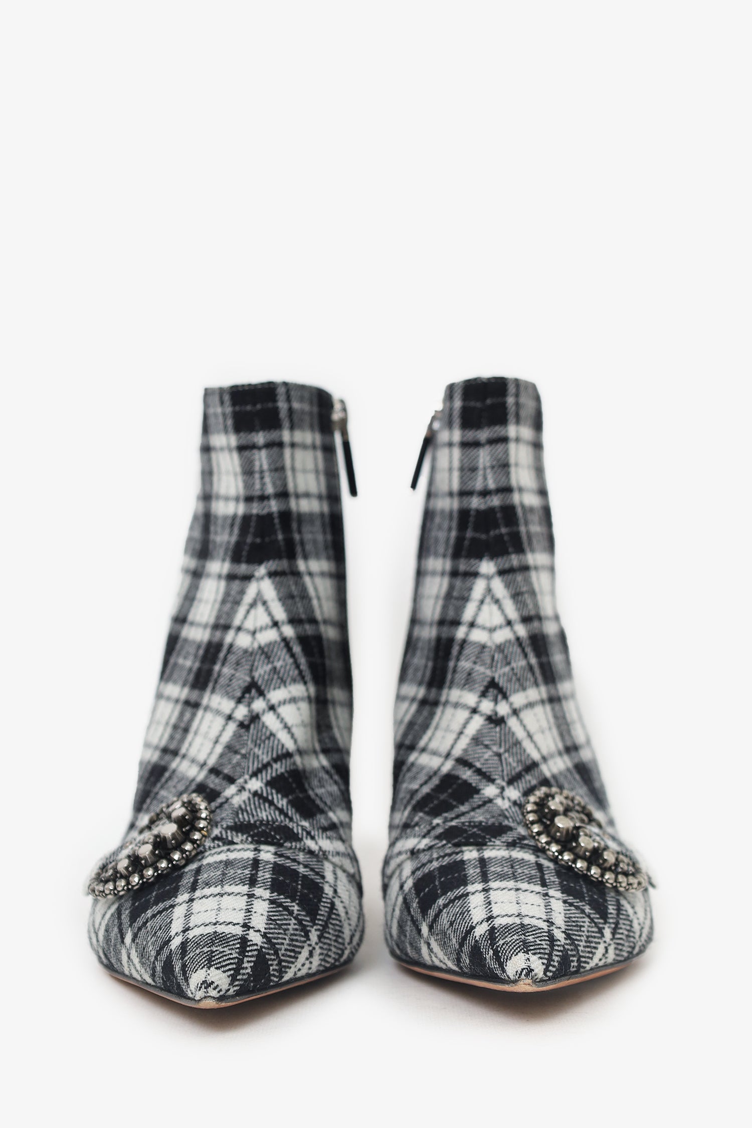Christian Dior Black/White Plaid 'Dior Gang' Tartan Ankle Boots Size 38.5