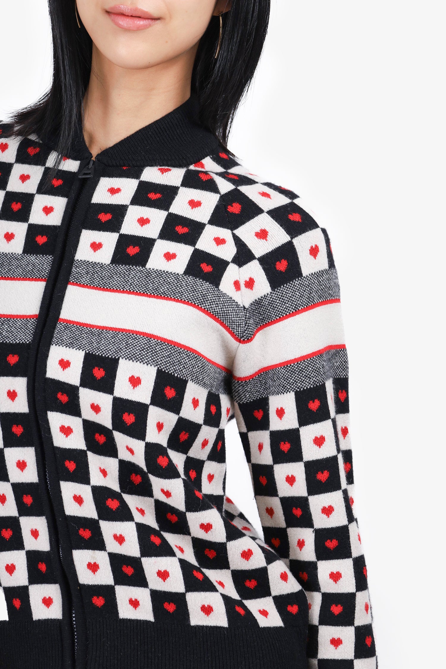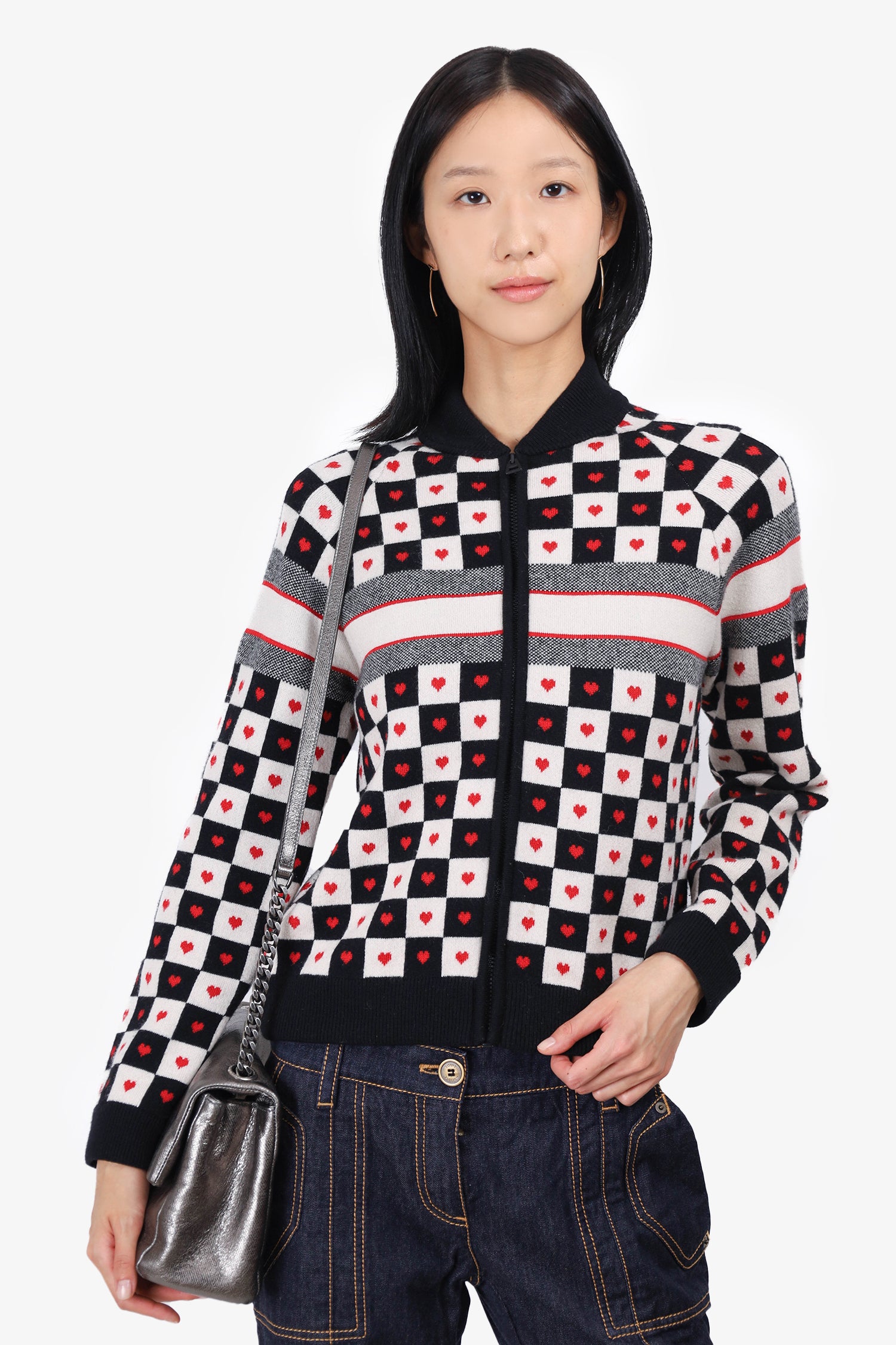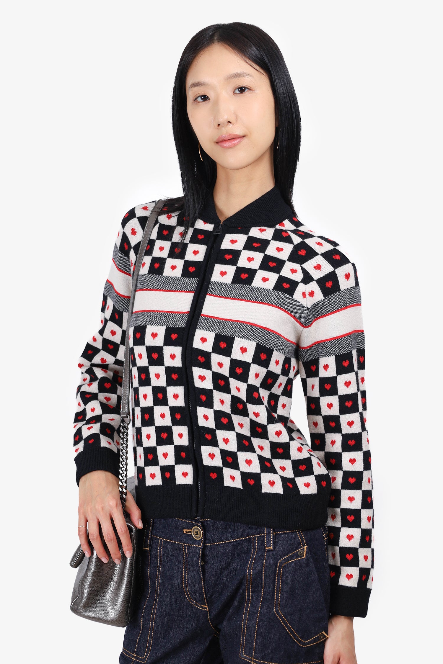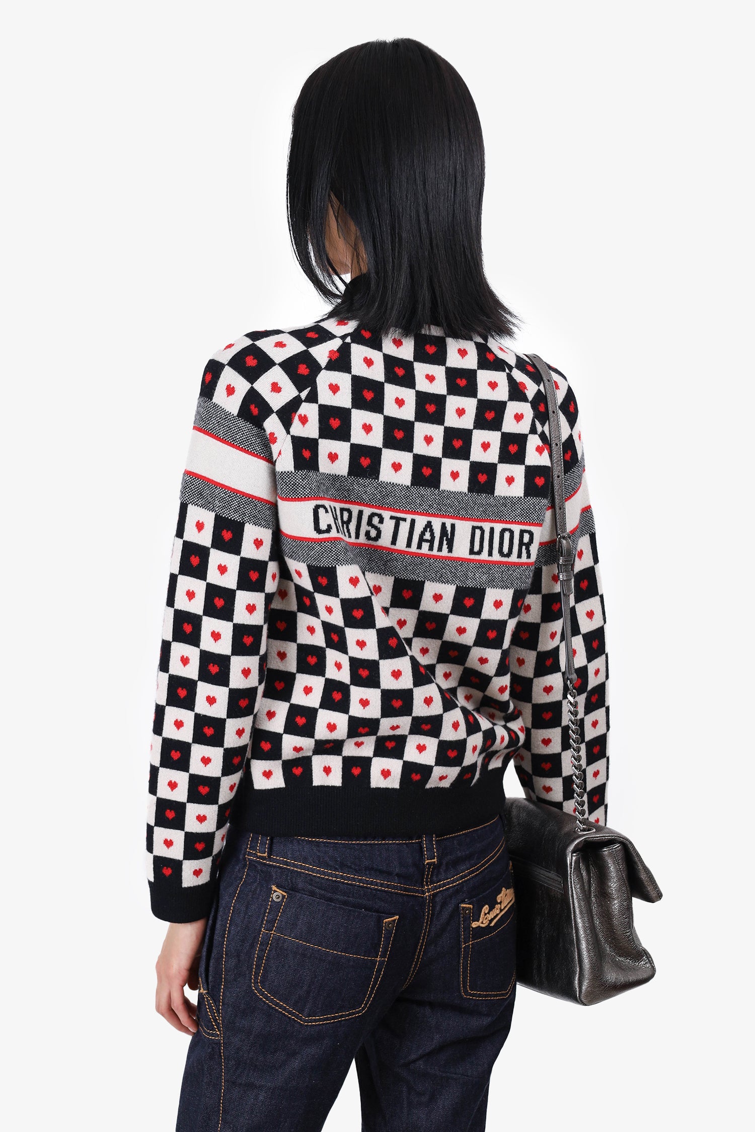 Refresh availabilityChristian Dior Black/White/Red Cashmere Heart Logo Jacket. Front zip closure. Tonal stitching.