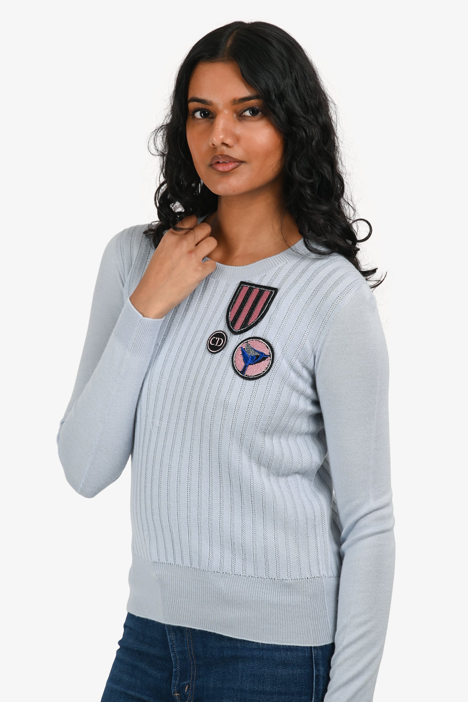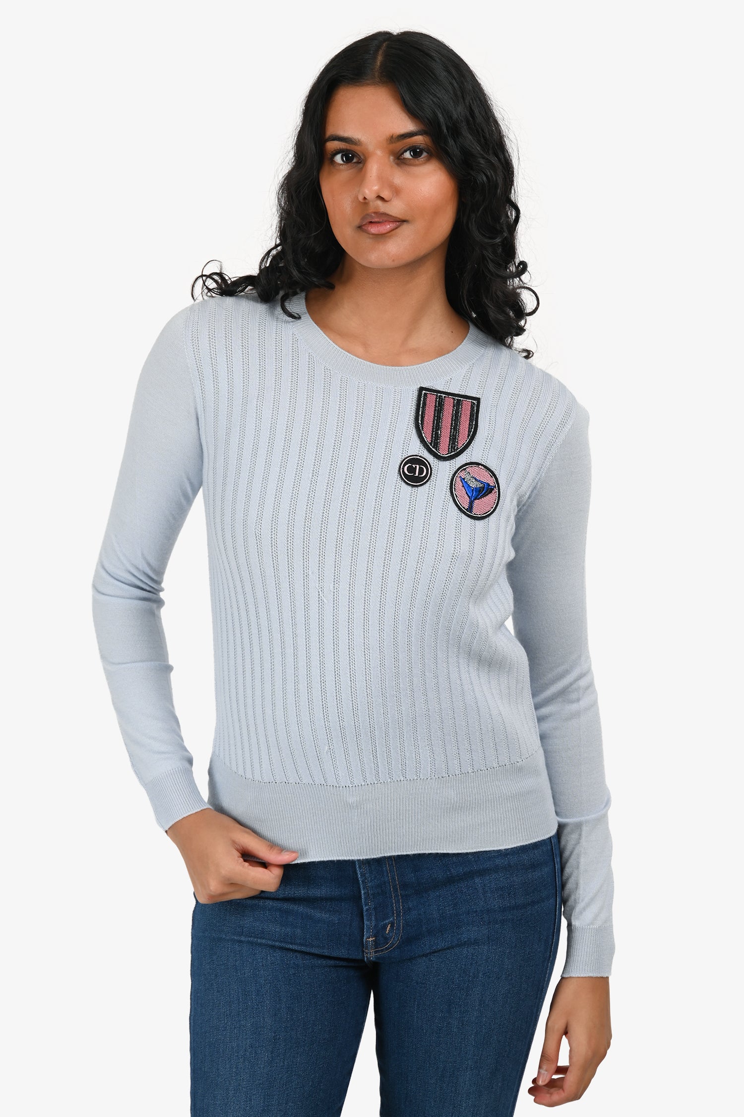 Refresh availabilityChristian Dior Blue Cashmere/Wool Patch Detail Sweater. Slip-on. Round neckline. Tonal stitching.