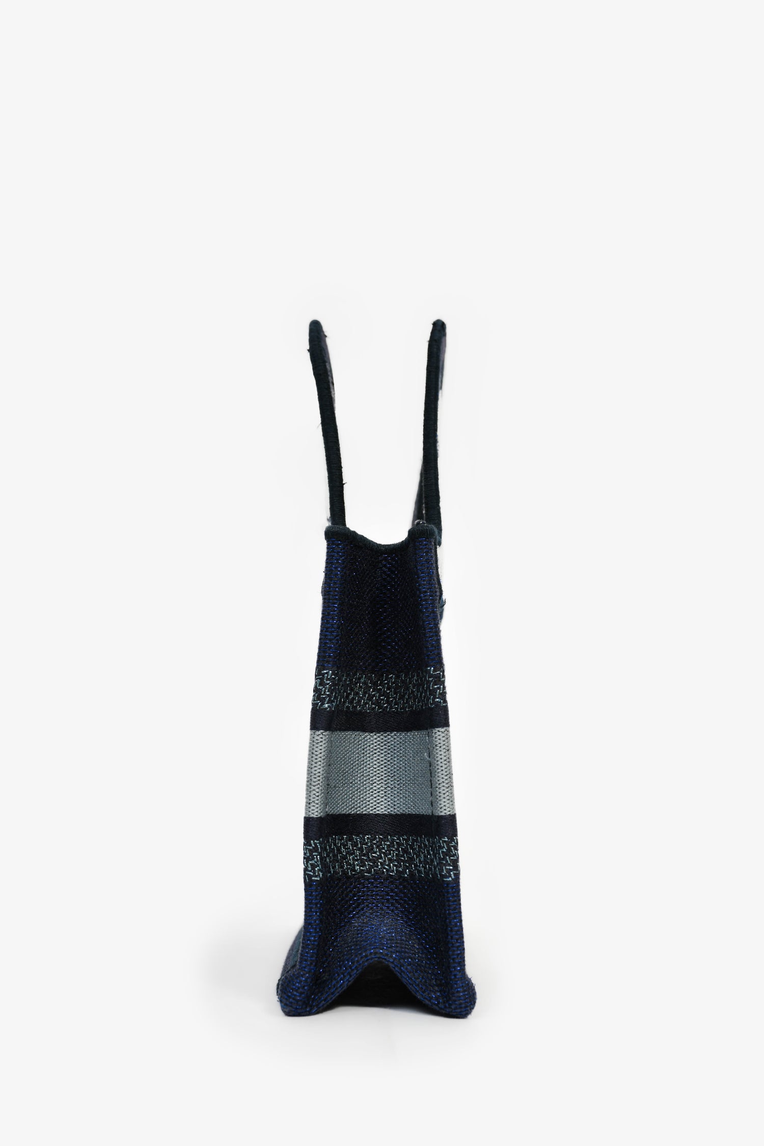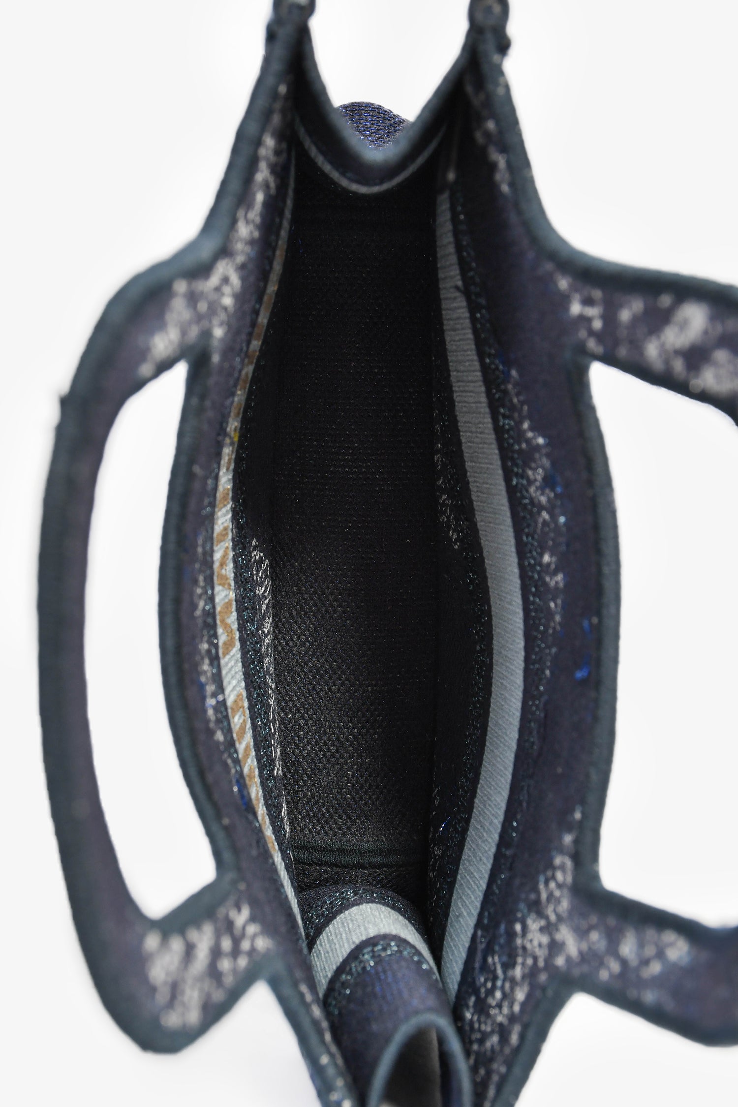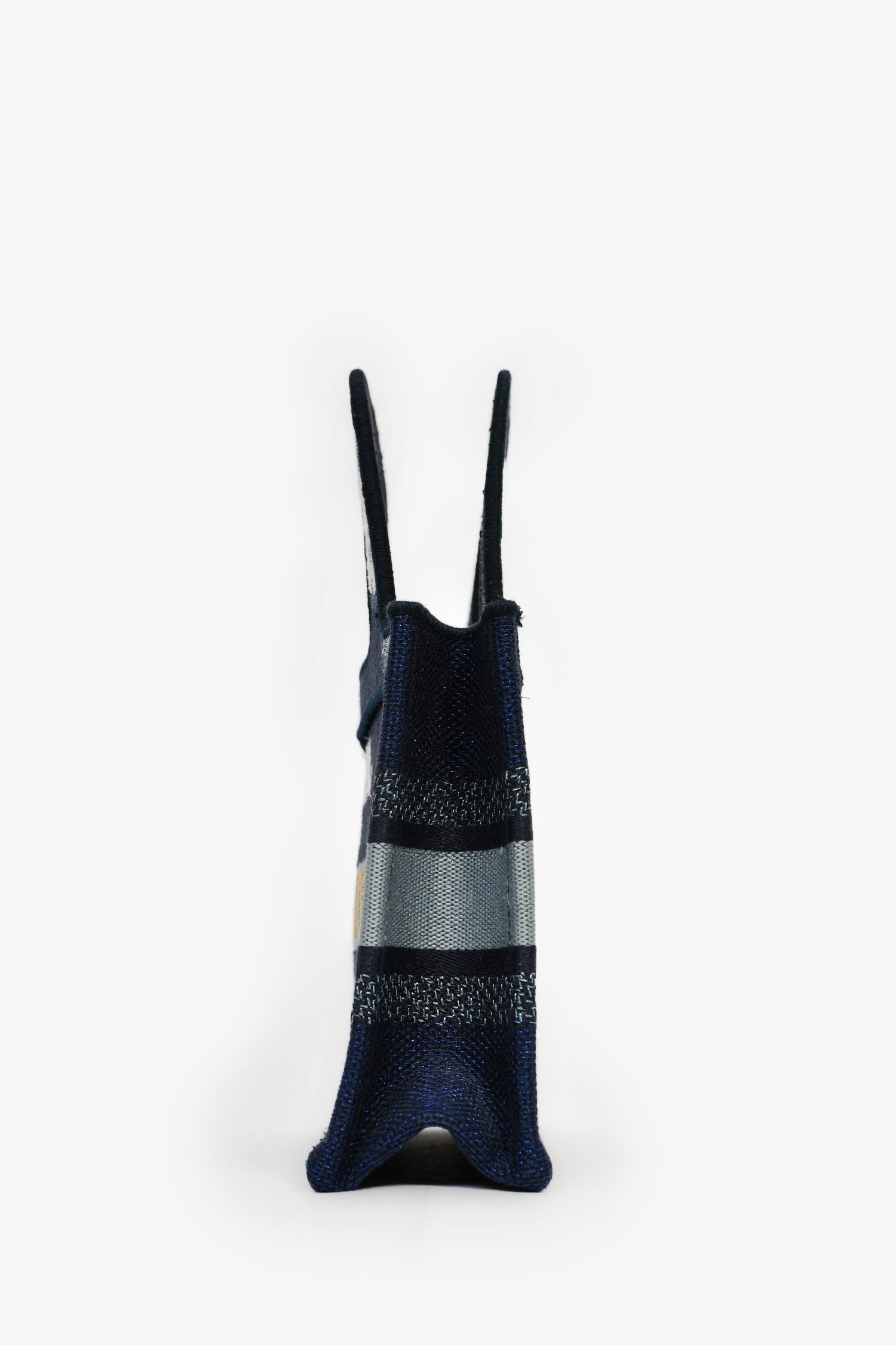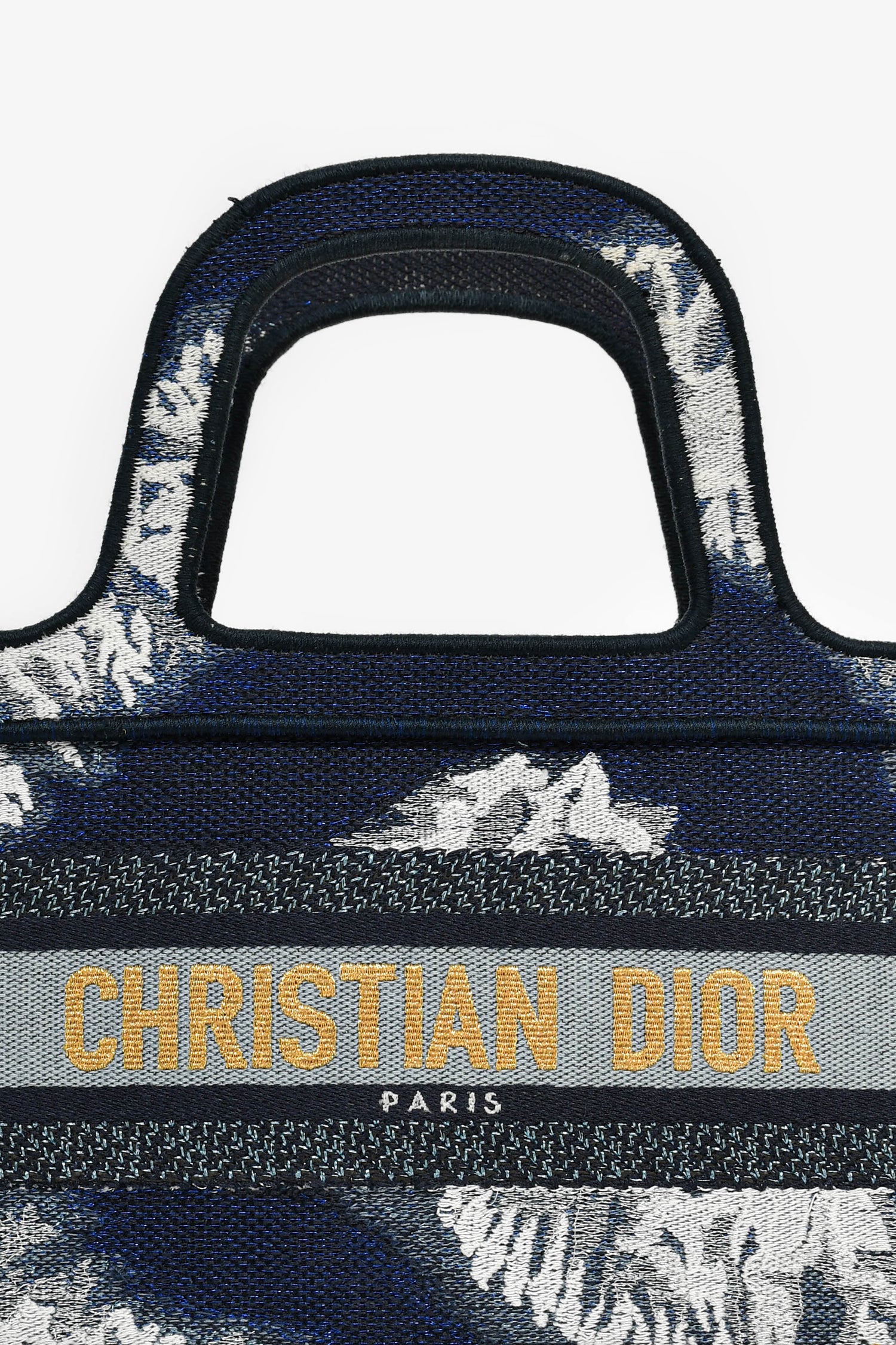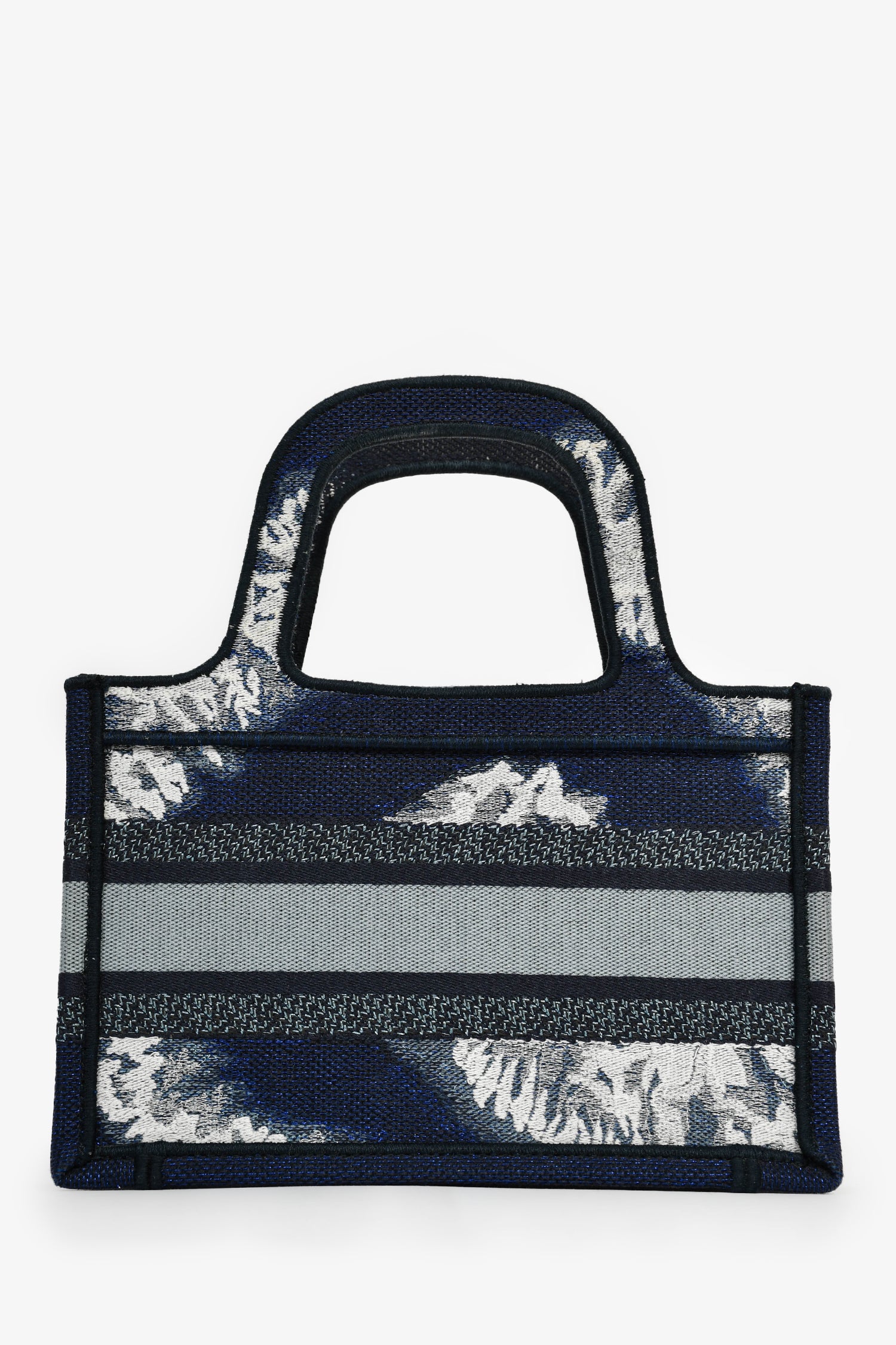 Refresh availabilityChristian Dior Blue Embroidered Canvas Tie-Dye Mini Book Tote. 2 top handles. Gold-foil stitching. Blue-tone trim. Tonal stitching.