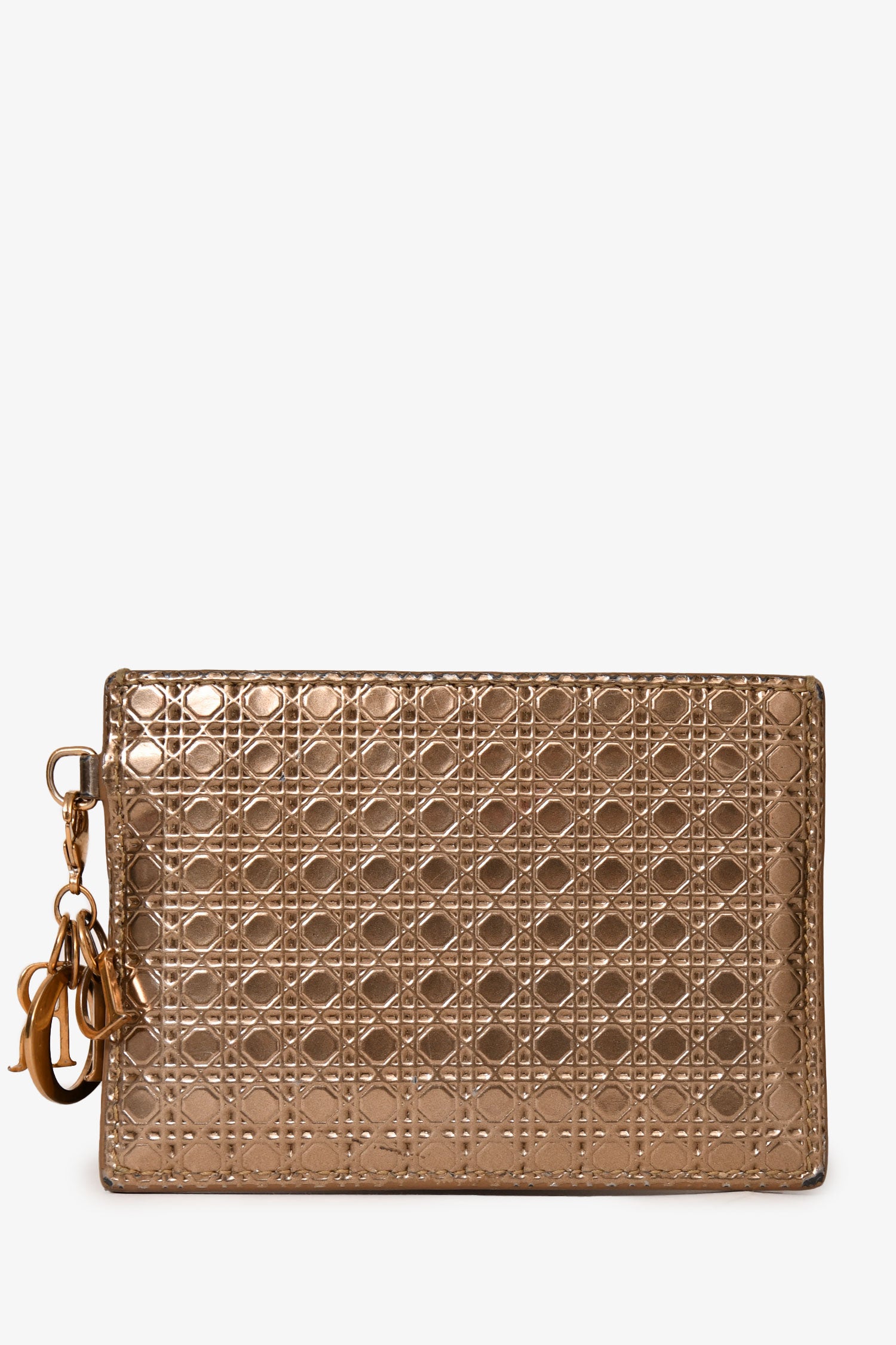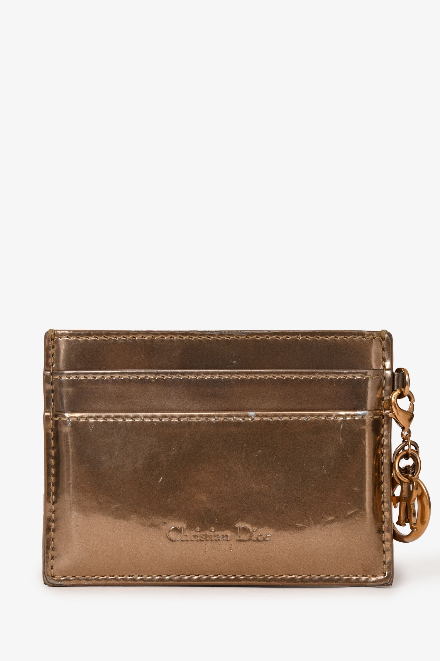 Refresh availabilityChristian Dior Bronze Cannage Card Holder. 3 card slots. Logo charm. Gold-toned hardware. Tonal stitching.
