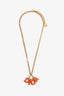 Christian Dior Gold Toned Orange Resin Logo Necklace