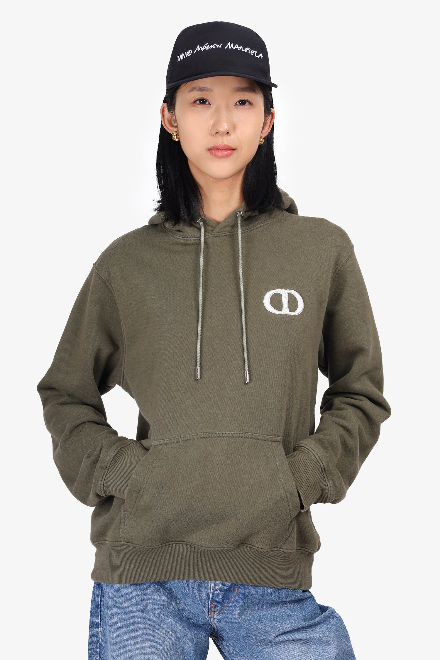 Refresh availabilityChristian Dior Green Cotton 'CD Icon' Hooded Sweatshirt. Pull-on. Drawstring hood. Ribbed sleeve cuffs and bottom hem. Fleece lined. Tonal stitching.