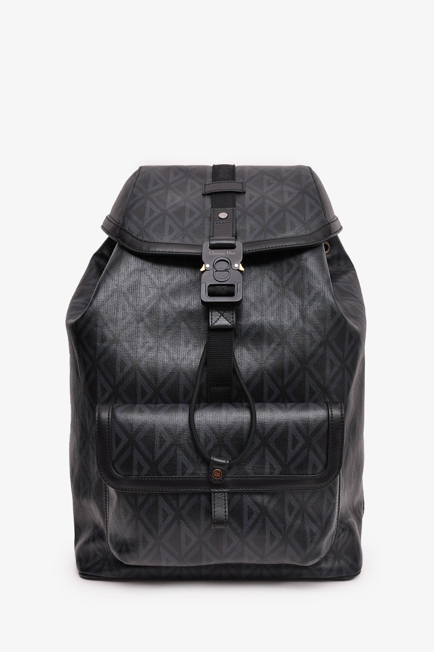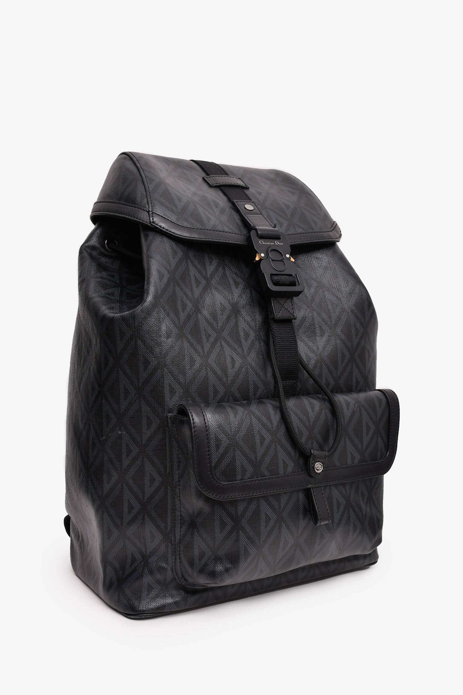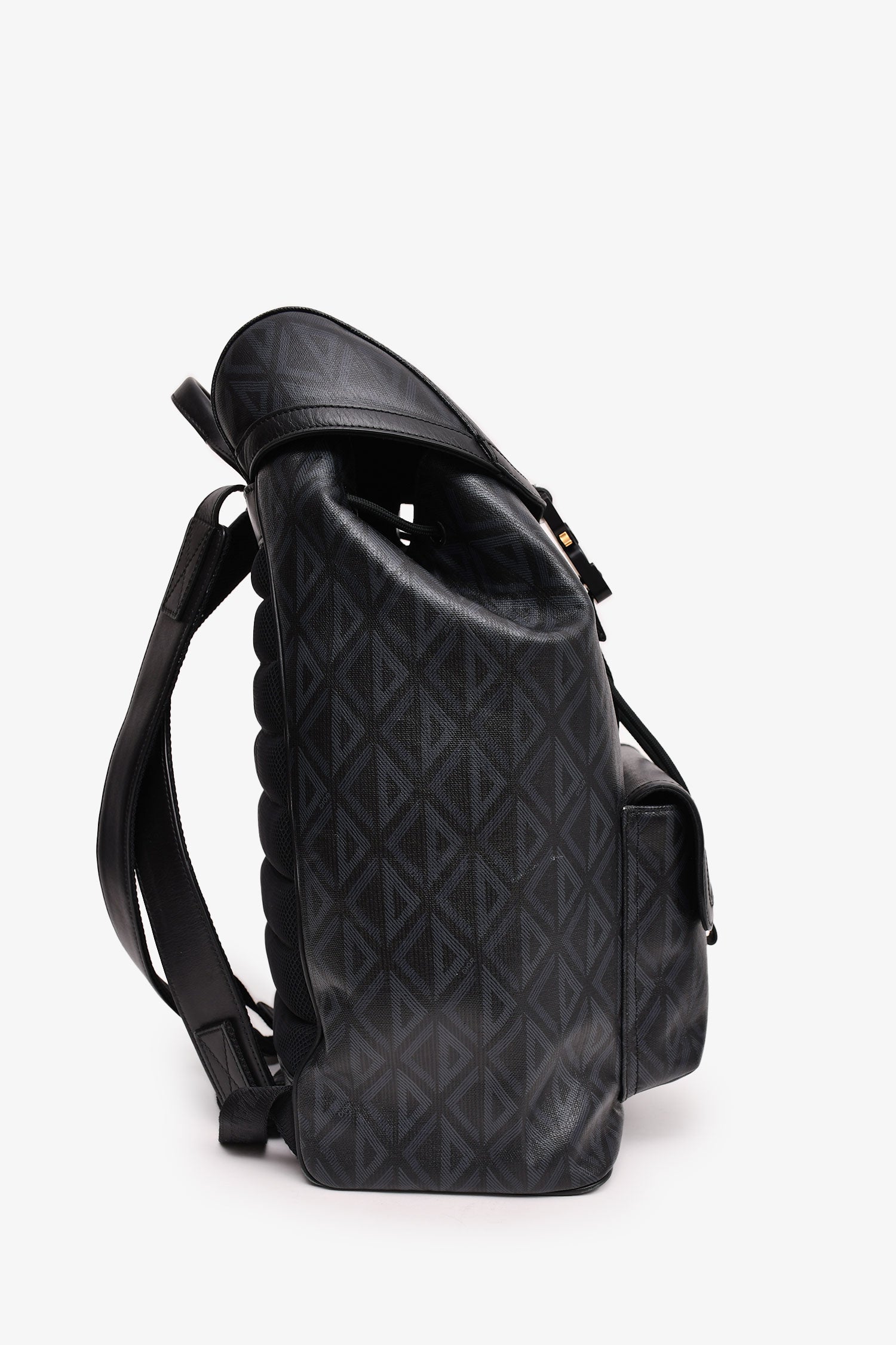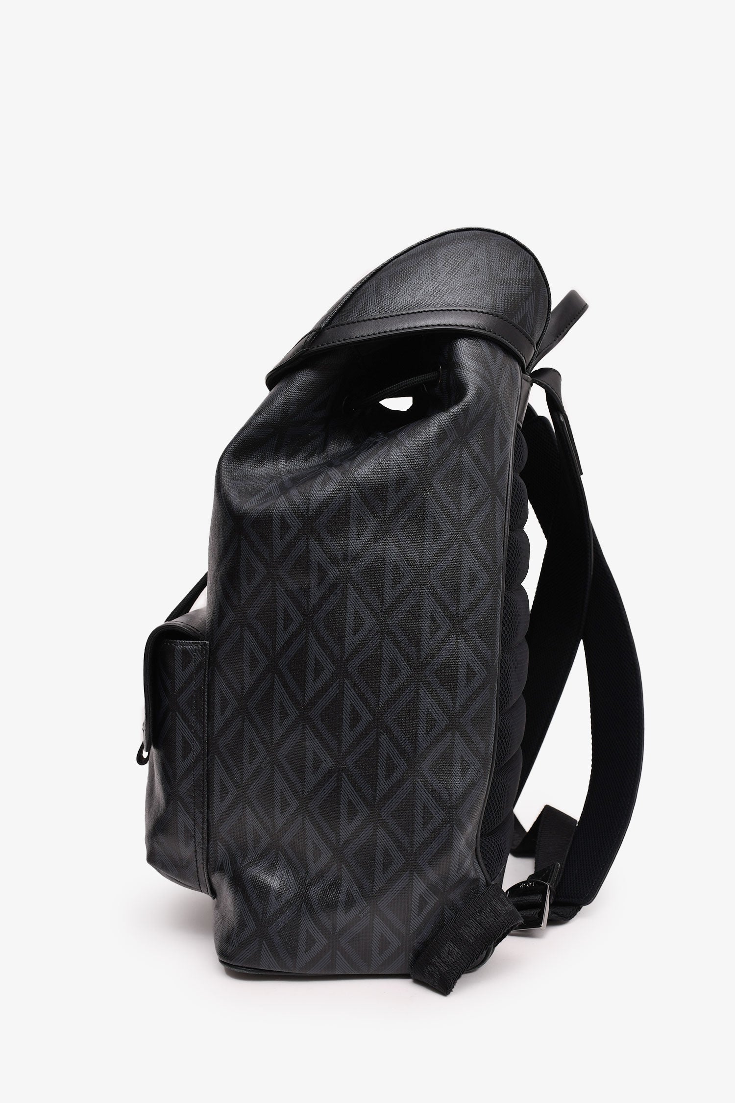 Christian Dior Homme Black Coated Canvas/Leather CD Diamond Print 'Hit The Road' Backpack