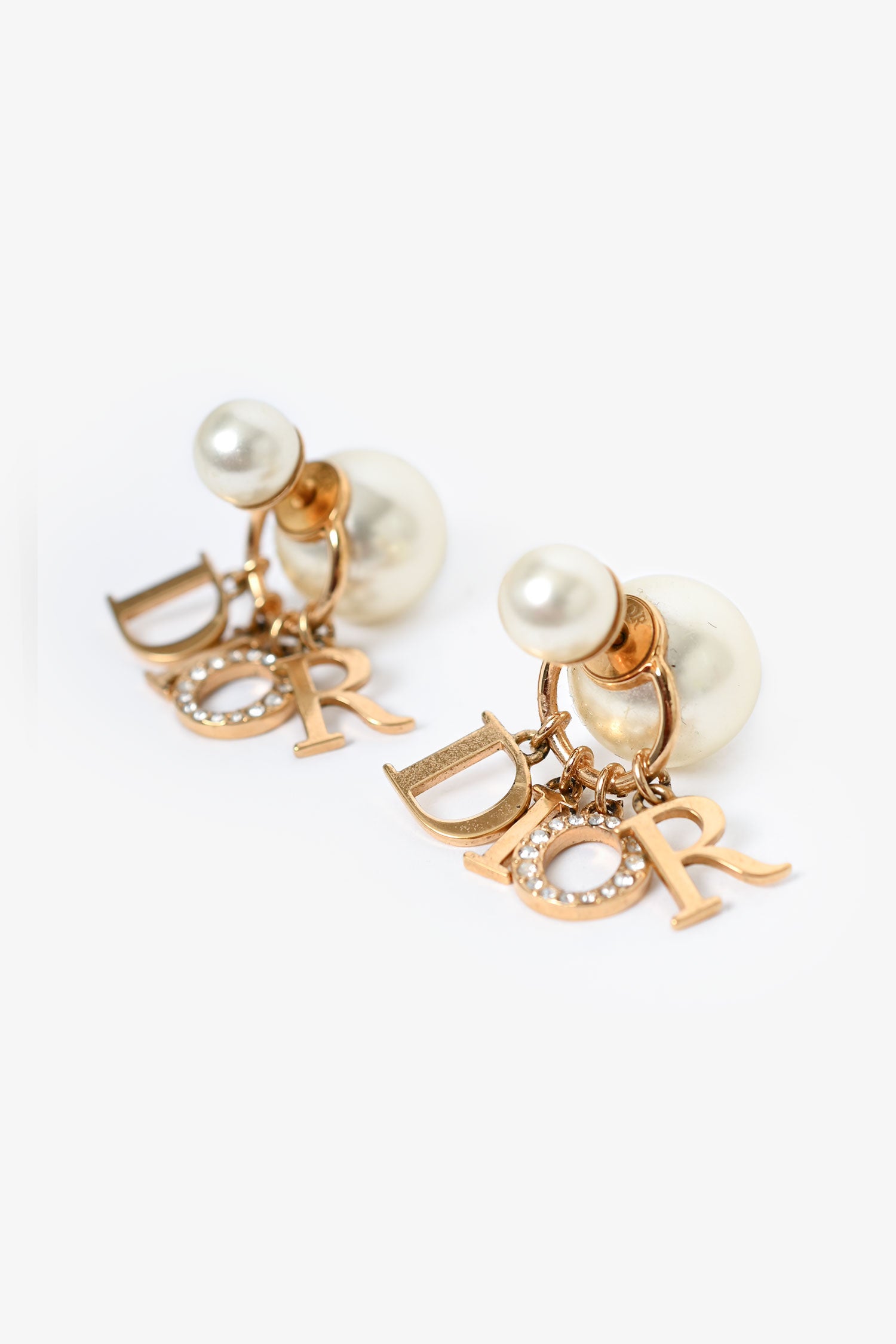 Refresh availabilityChristian Dior Logo Tribale Earrings. Drop 'DIOR' single charms. Push-post closure.