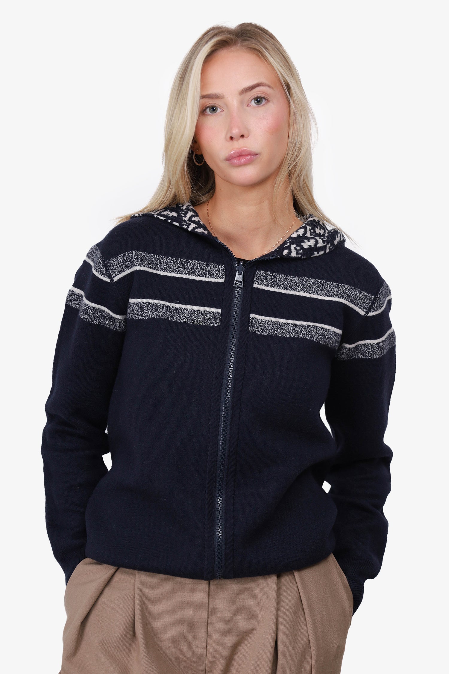 Christian Dior Navy Cashmere Reversible Zipped Cardigan Size 4