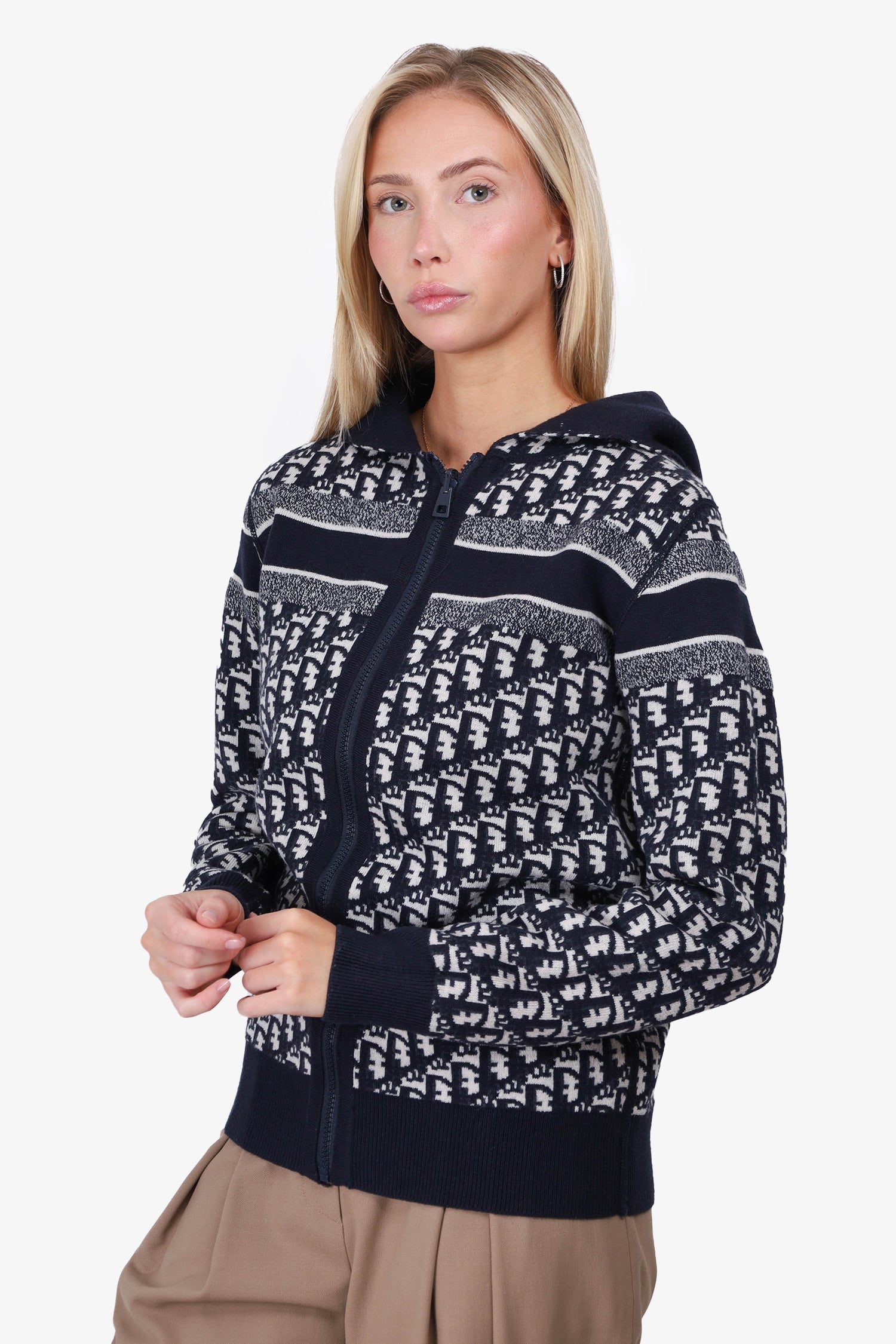 Refresh availabilityChristian Dior Navy Cashmere Reversible Zipped Cardigan. Front zip closure. Ribbed cuffs and bottom hem. Unlined. Tonal stitching.
