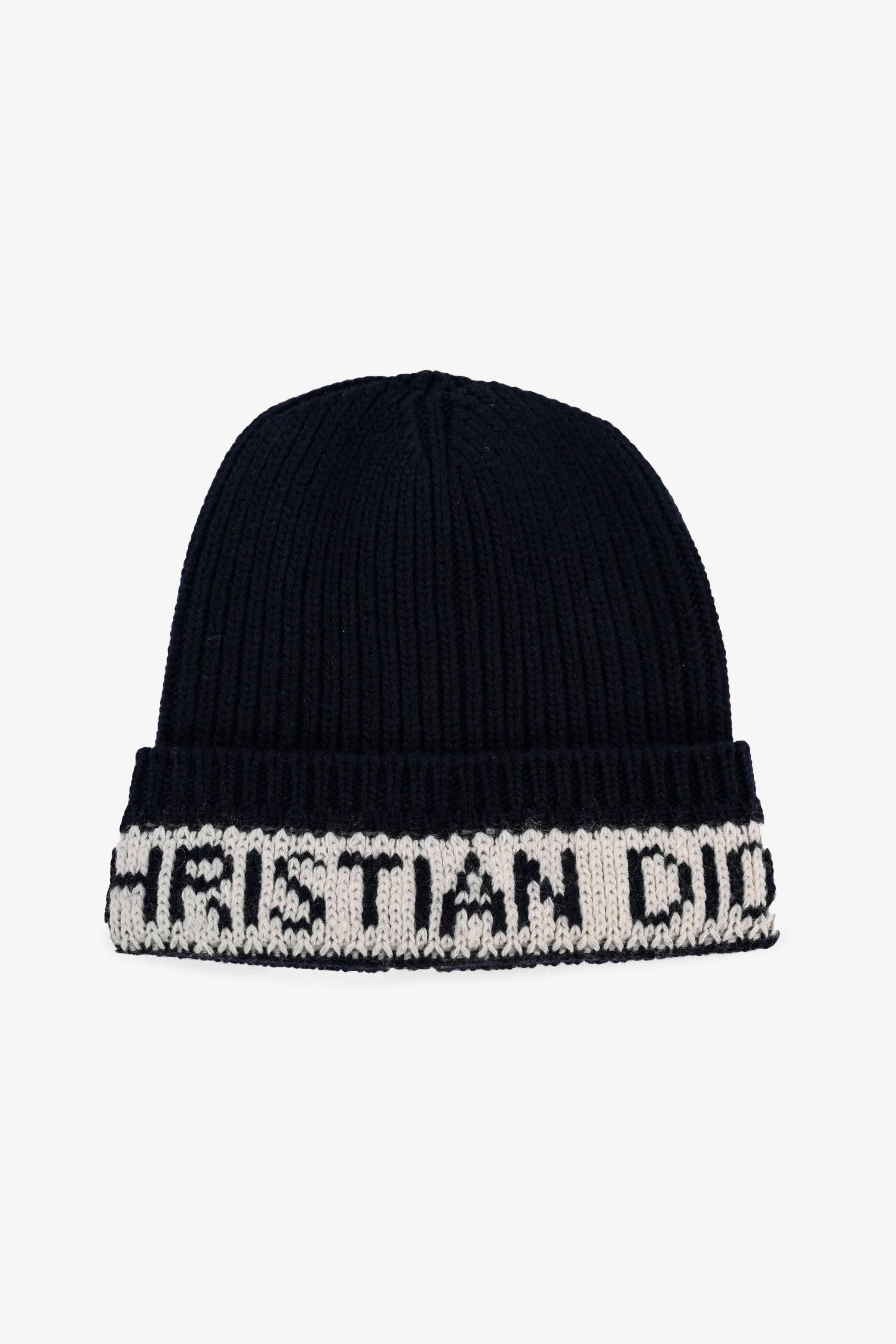 Christian Dior Navy Ribbed Wool/Cashmere Logo Toque