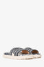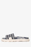 Christian Dior Navy/White Logo Embroidered Canvas Toile De Jouy Dway Slides Size 37