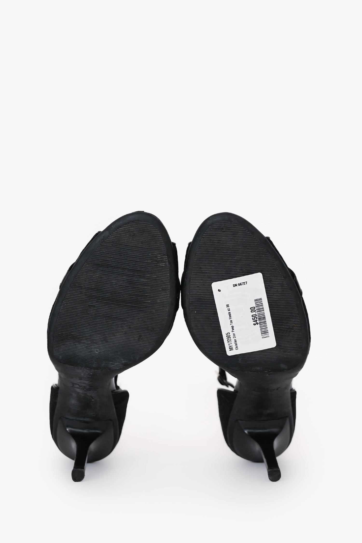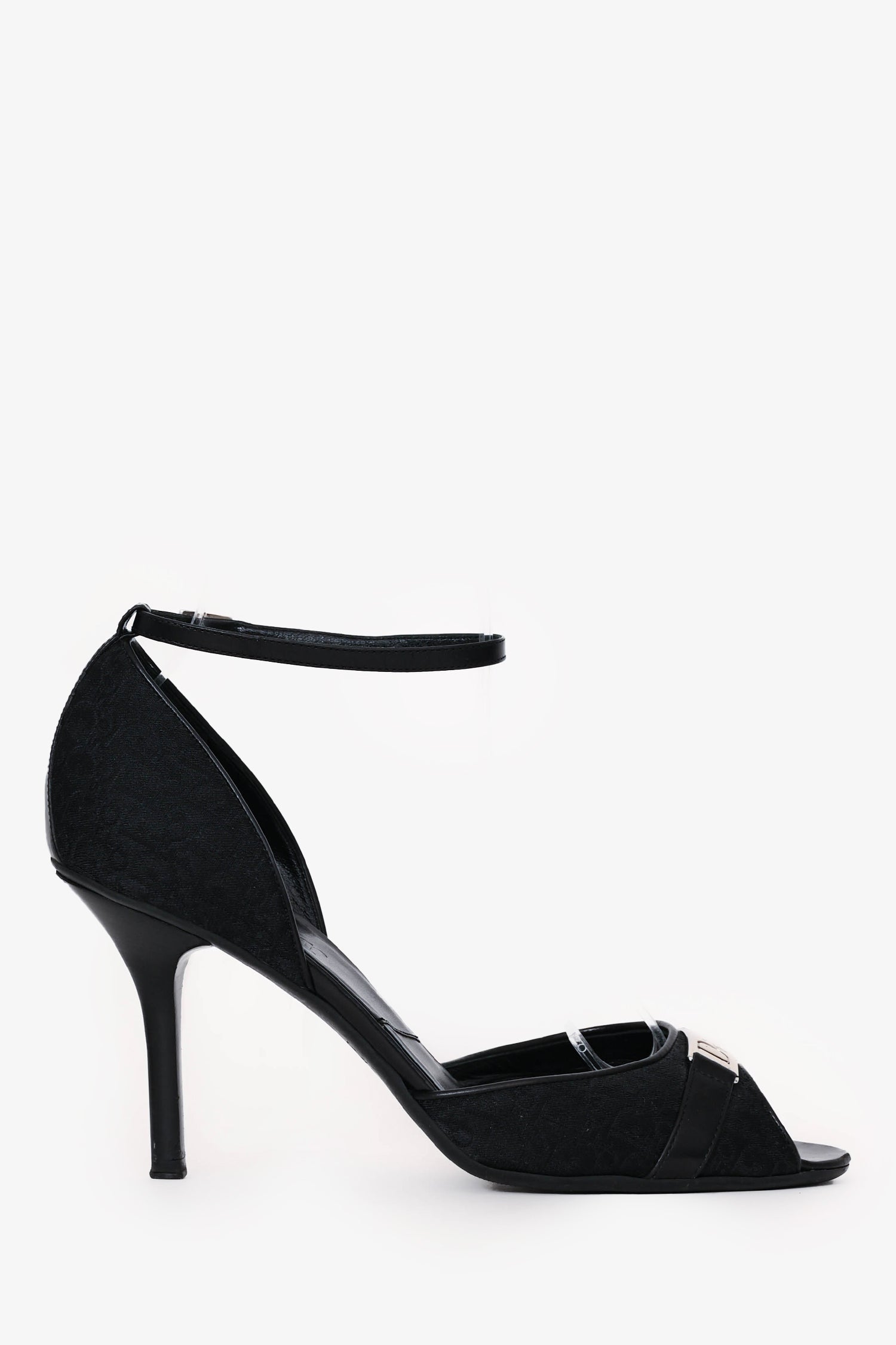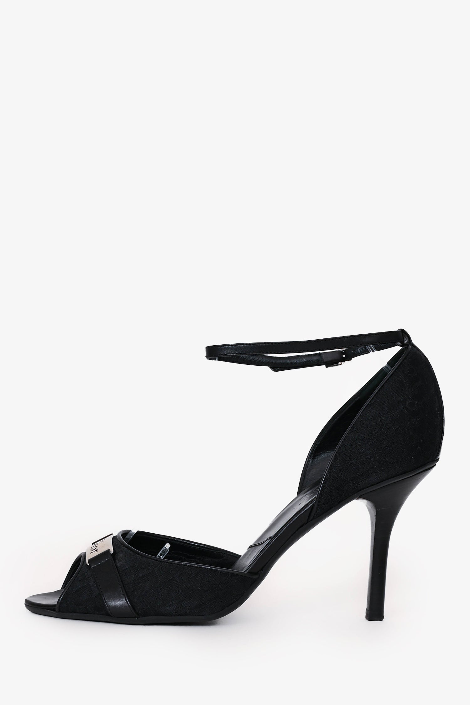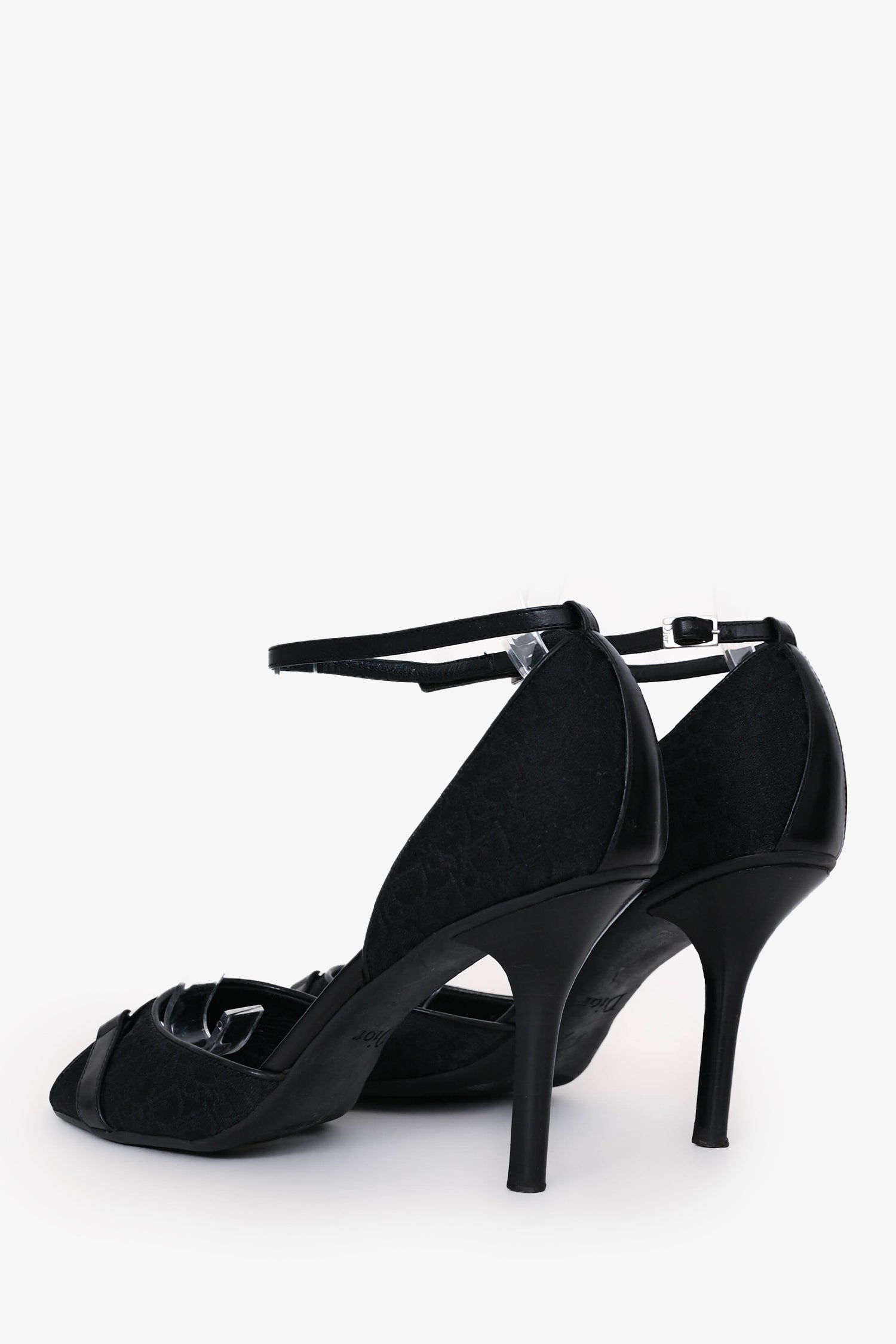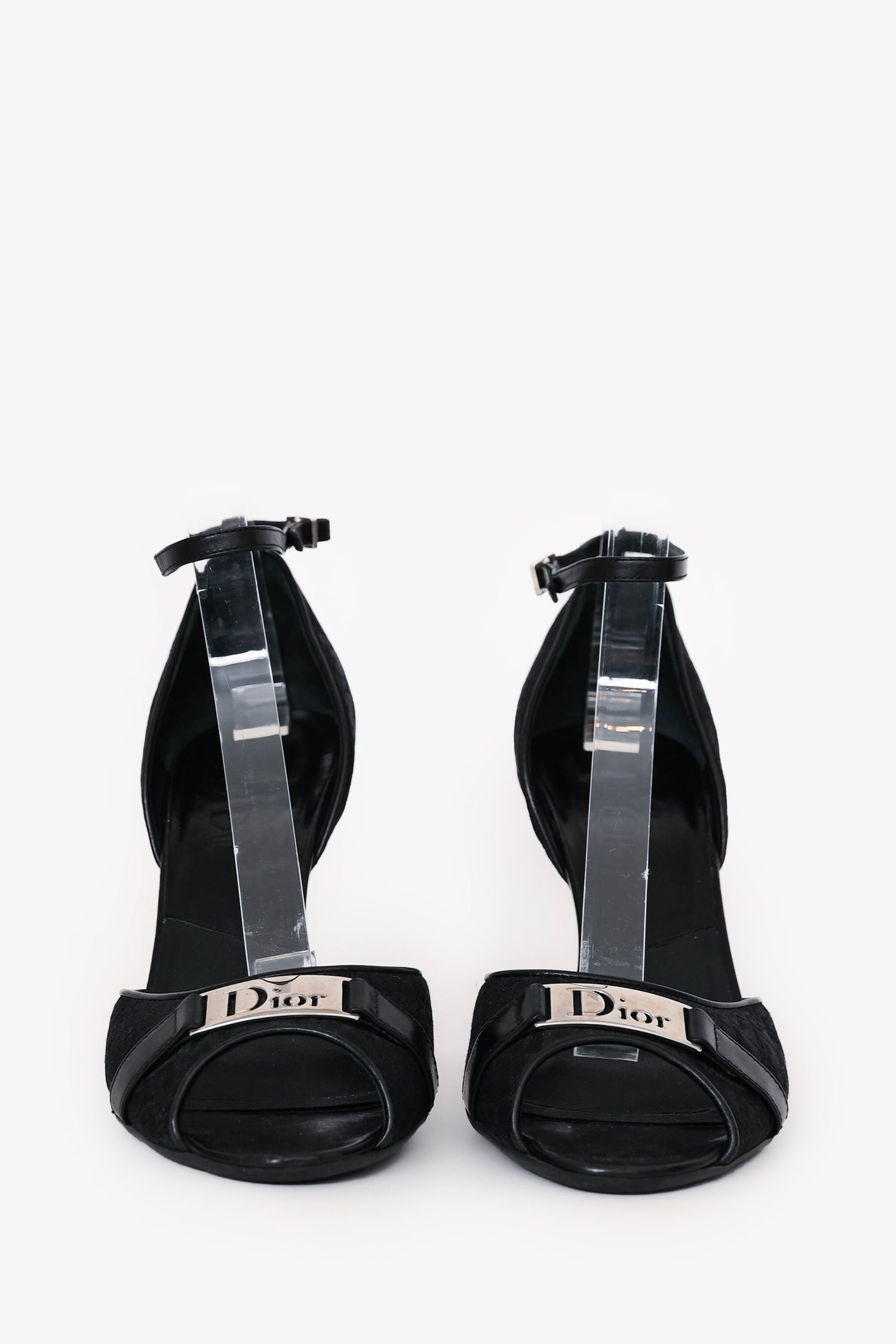 Refresh availabilityChristian Dior Peep Toe Heels. Slip-on. Peep toe. Adjustable ankle strap. Leather insole with suede backing. Rubber sole. Wooden heel. Silver-tone hardware. Tonal stitching.