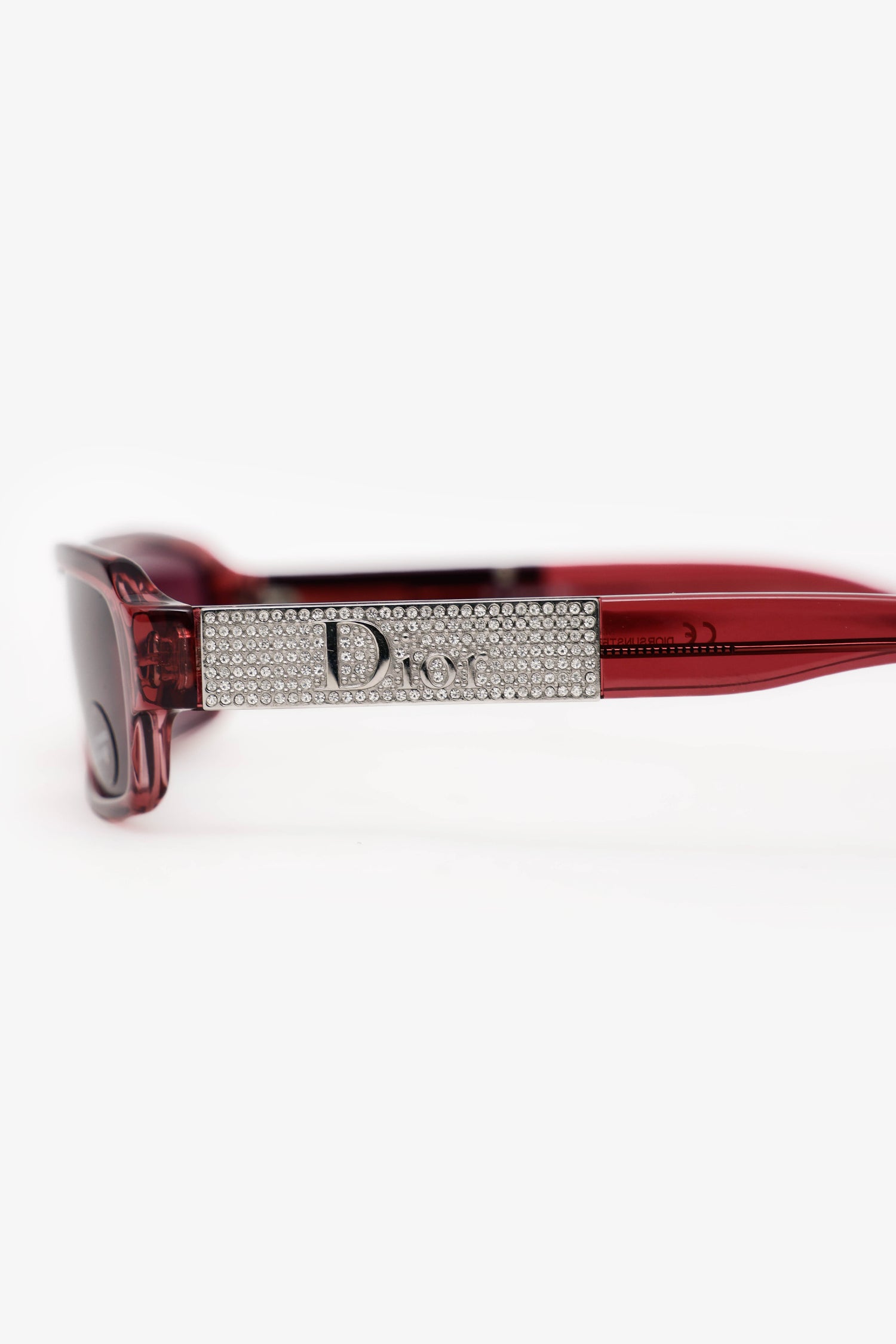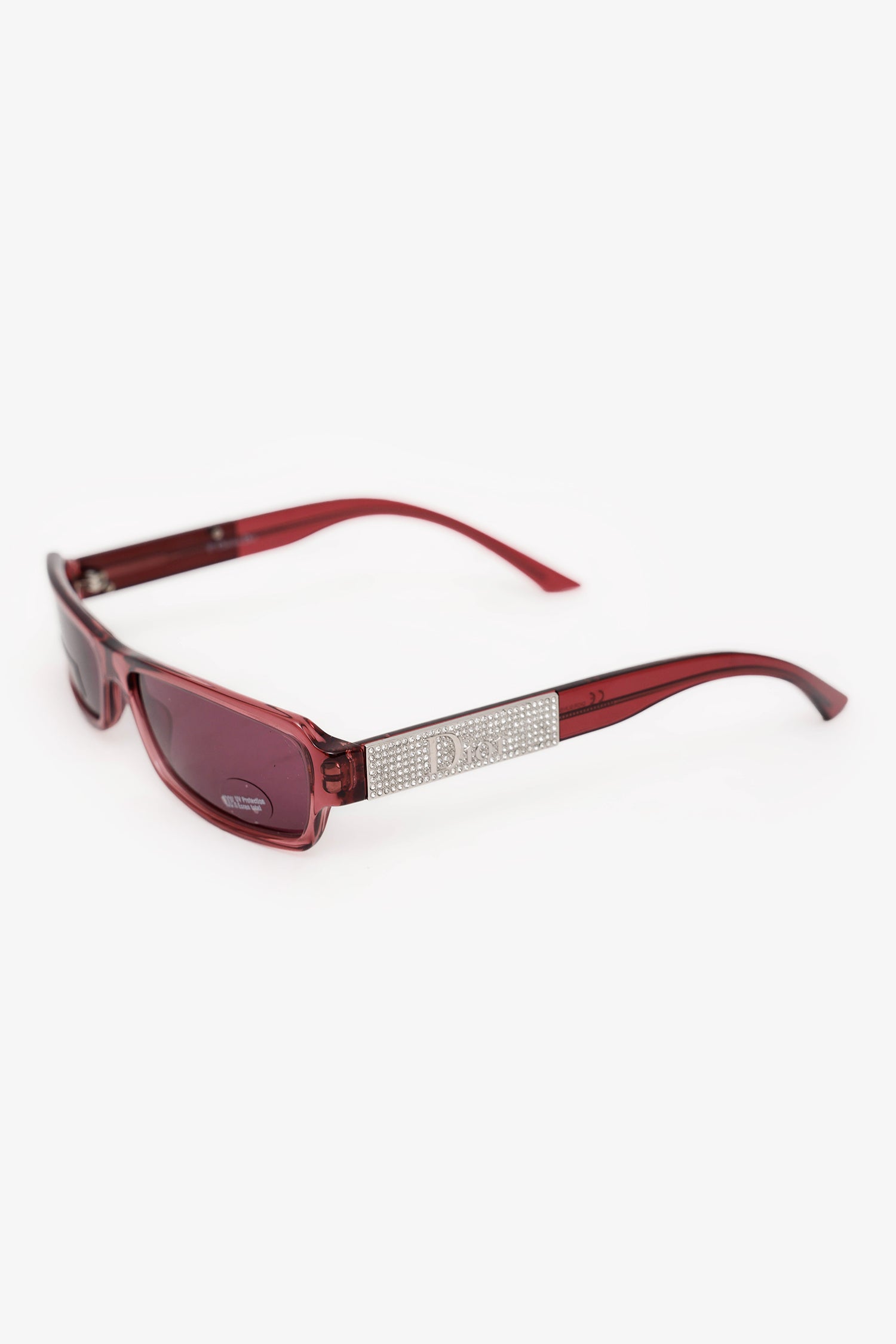 Refresh availabilityChristian Dior Purple Rhinestone Sunglasses. Built-in nose pads. Silver-tone hardware.