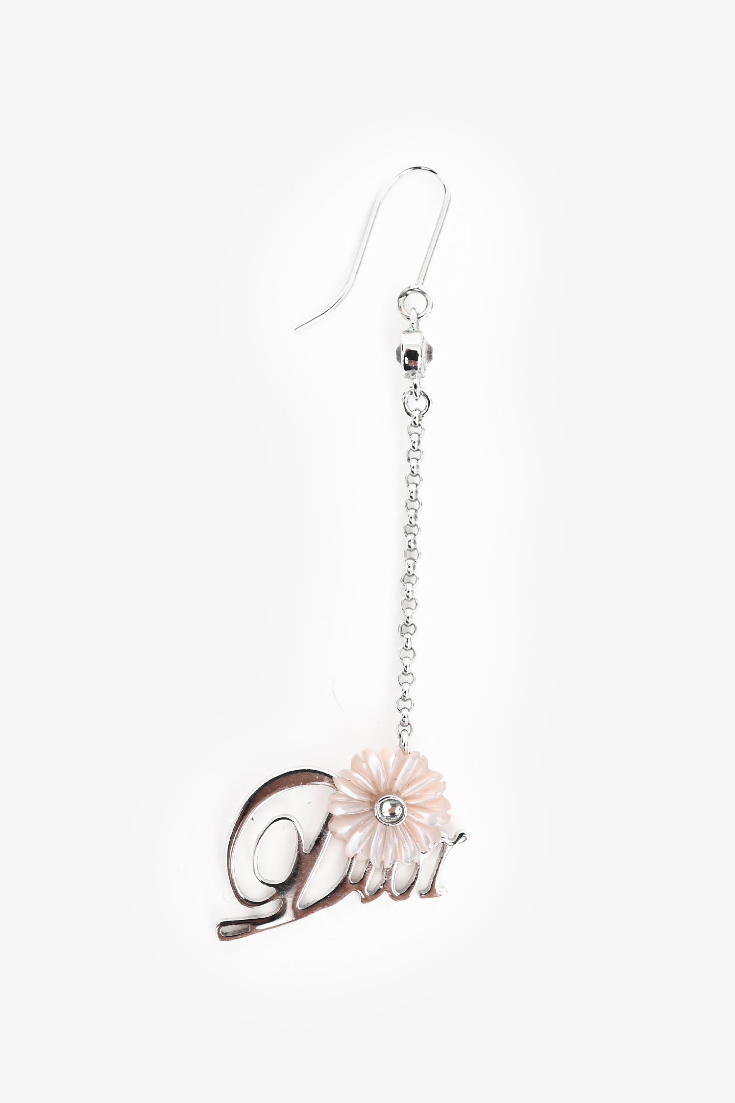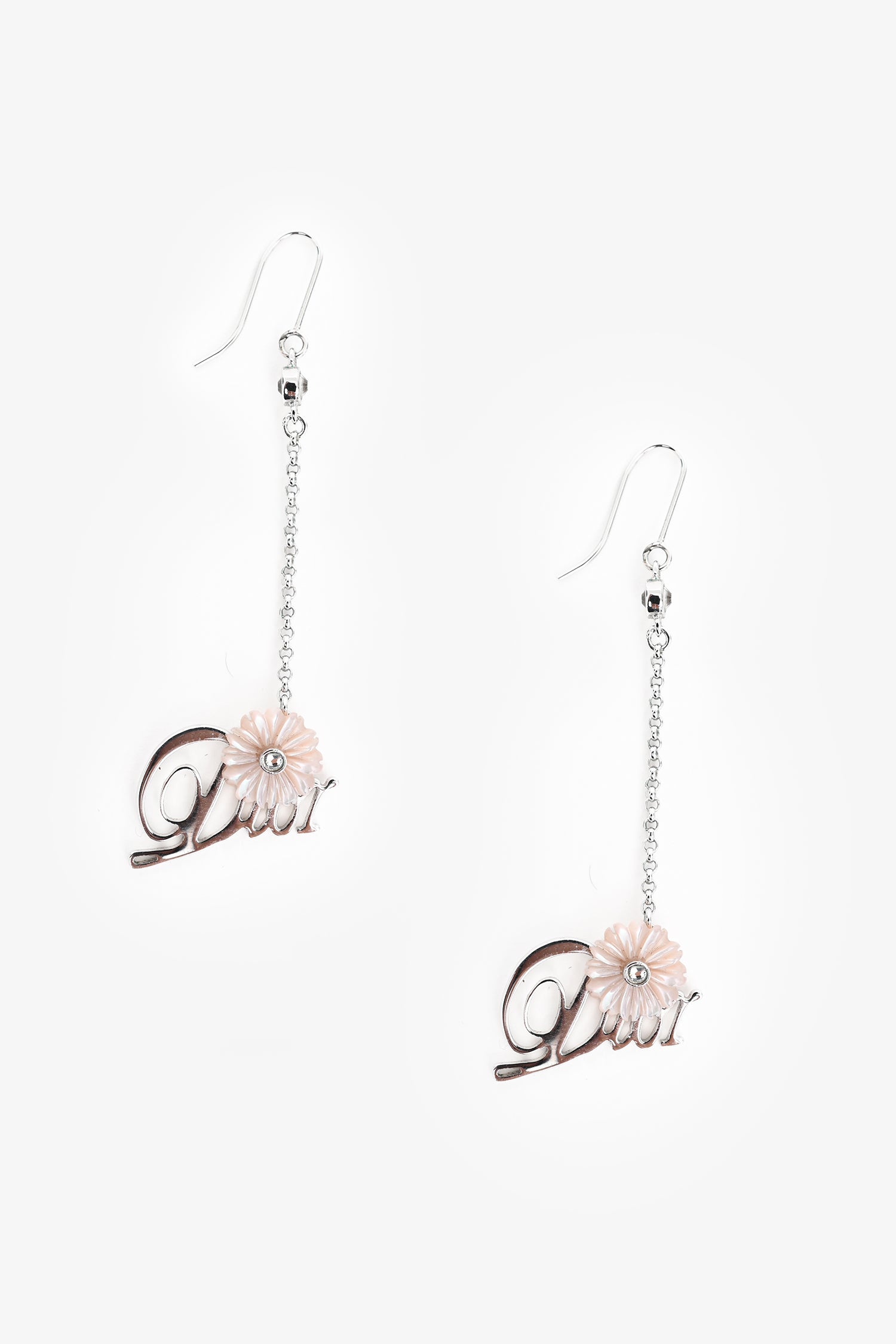 Refresh availabilityChristian Dior Silver Tone Metal Crystal Embellished Floral Logo Ear Pendants. Hook backing.